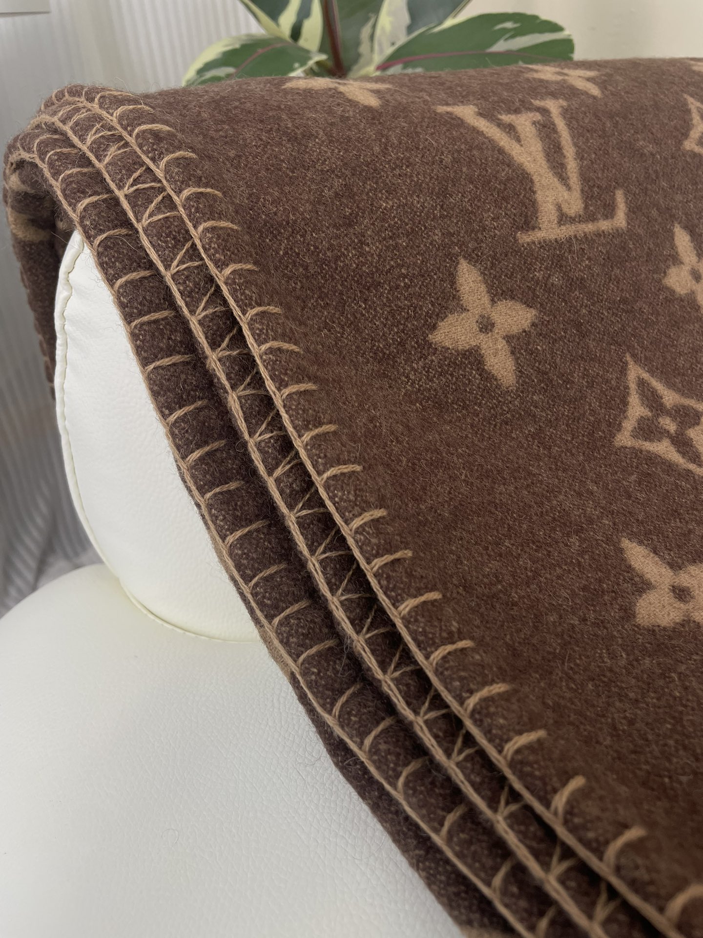 这款毯是AAAAA 1:1 质量 (非常棒). 使用了和原版一模一样的材料. 商标部分也保持了和路易威登/Louis Vuitton一样. 图片拍摄是实物毯拍摄, 您所收到的实物保证和我们图片一模一样.