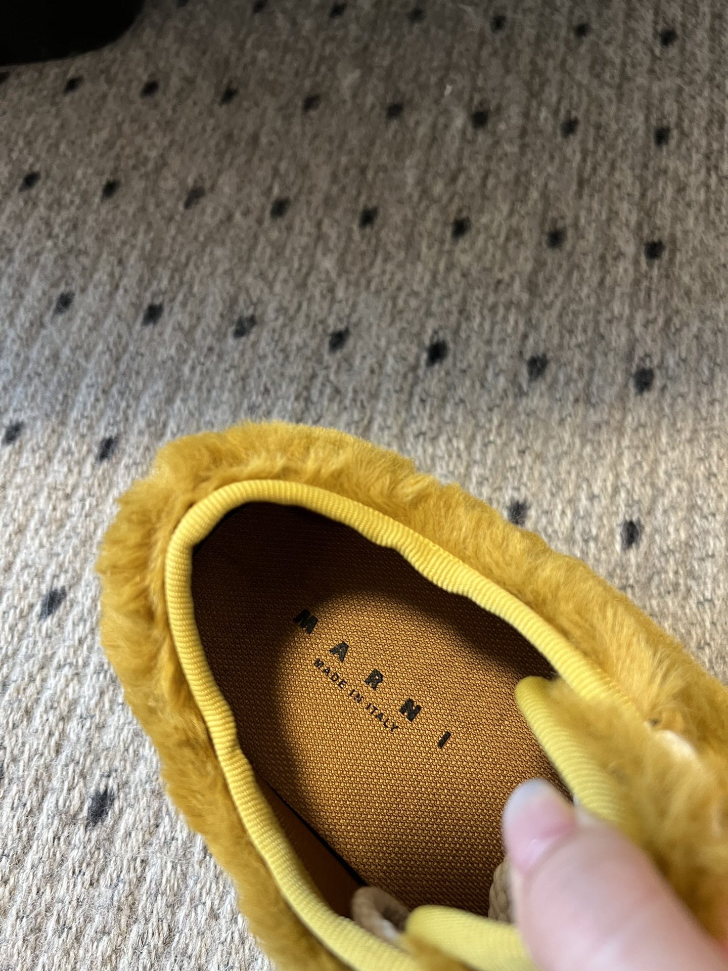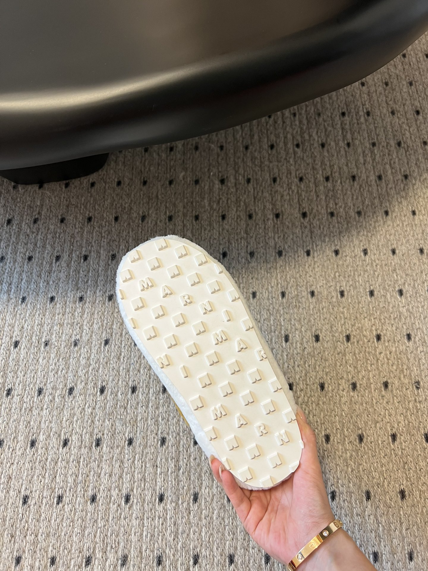 这款鞋子是AAAAA 1:1 质量 (非常棒). 使用了和原版一模一样的材料. 商标部分也保持了和马尔尼/Marni一样. 图片拍摄是实物鞋子拍摄, 您所收到的实物保证和我们图片一模一样.