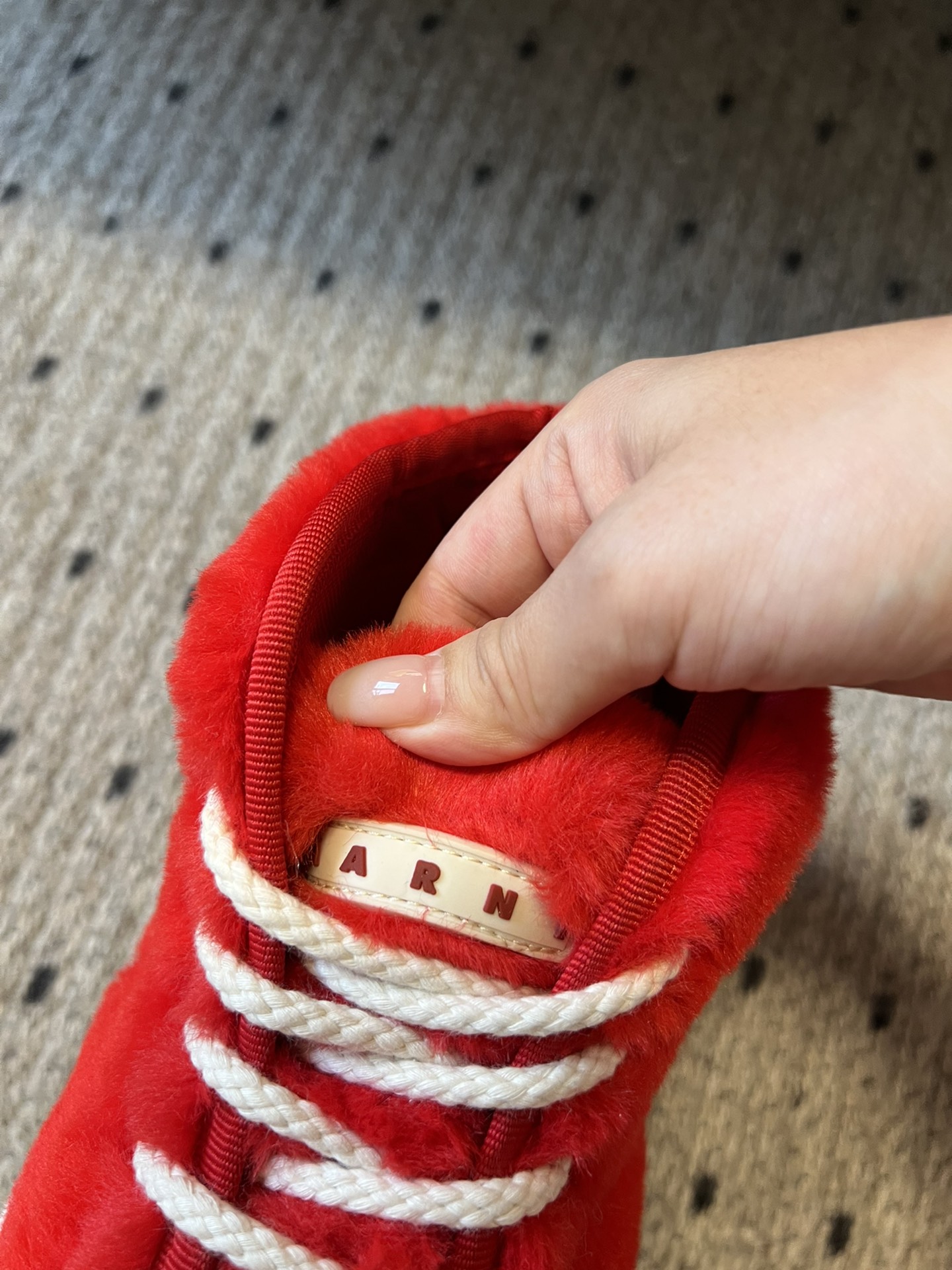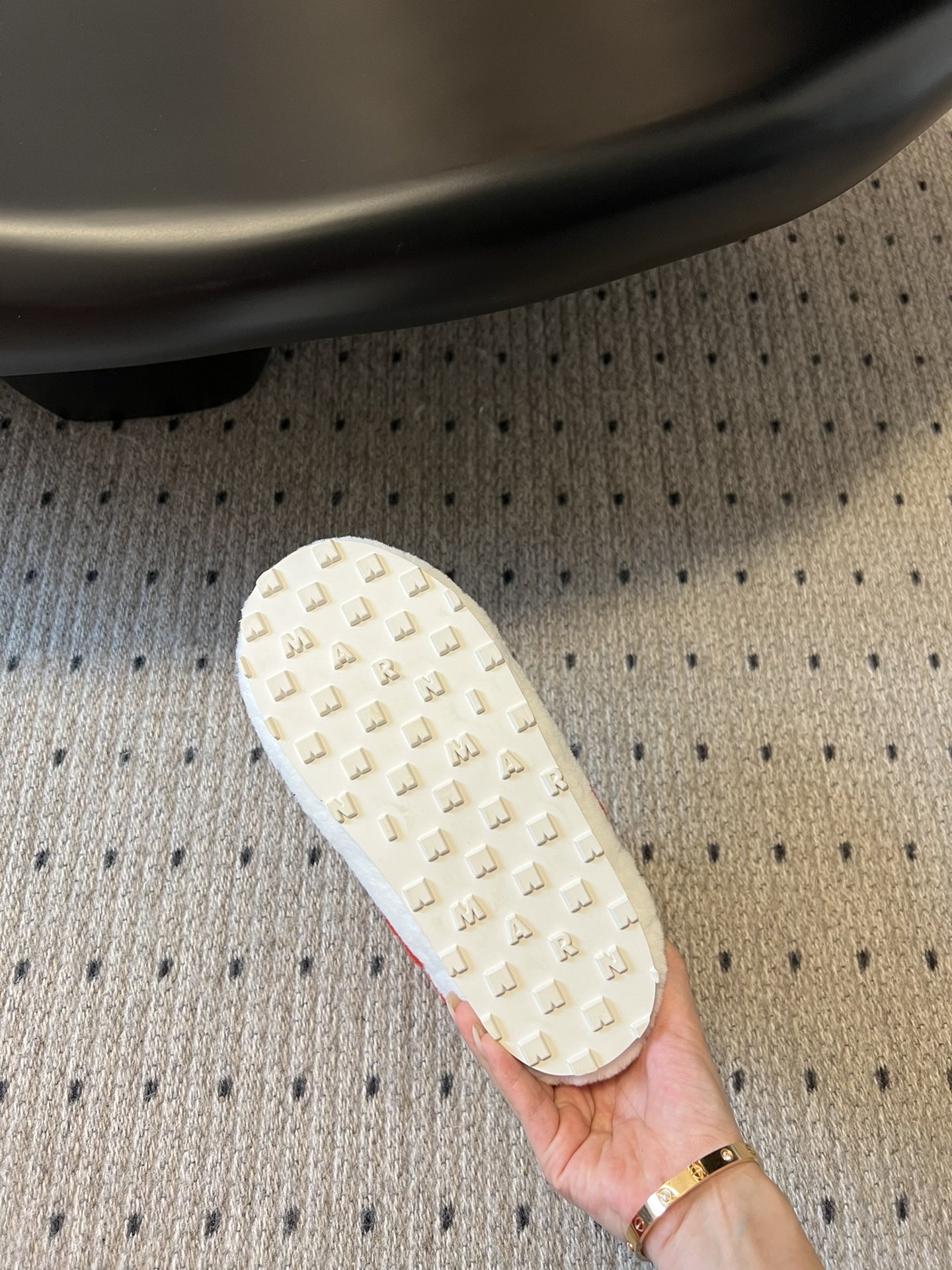 这款鞋子是AAAAA 1:1 质量 (非常棒). 使用了和原版一模一样的材料. 商标部分也保持了和马尔尼/Marni一样. 图片拍摄是实物鞋子拍摄, 您所收到的实物保证和我们图片一模一样.