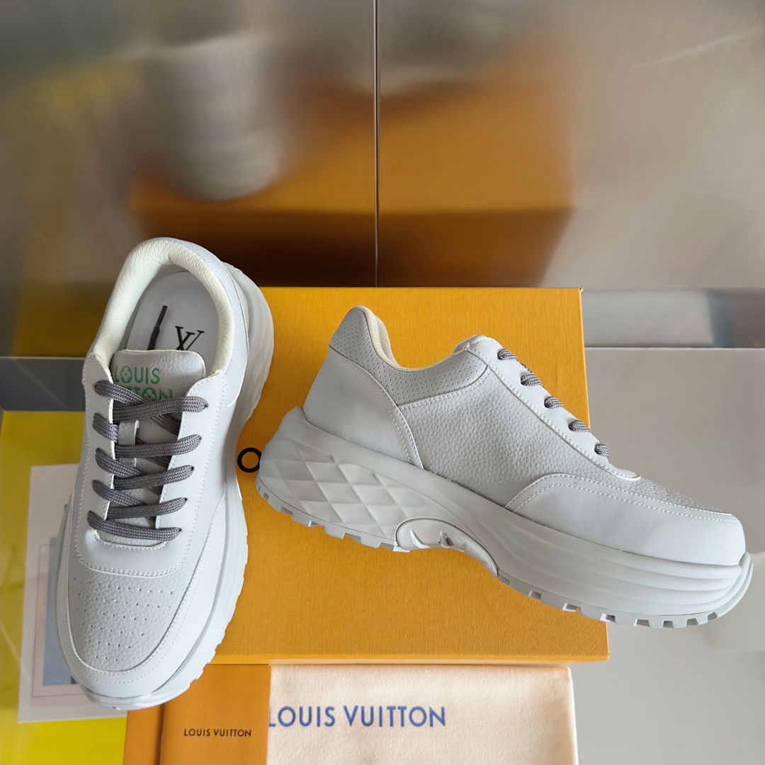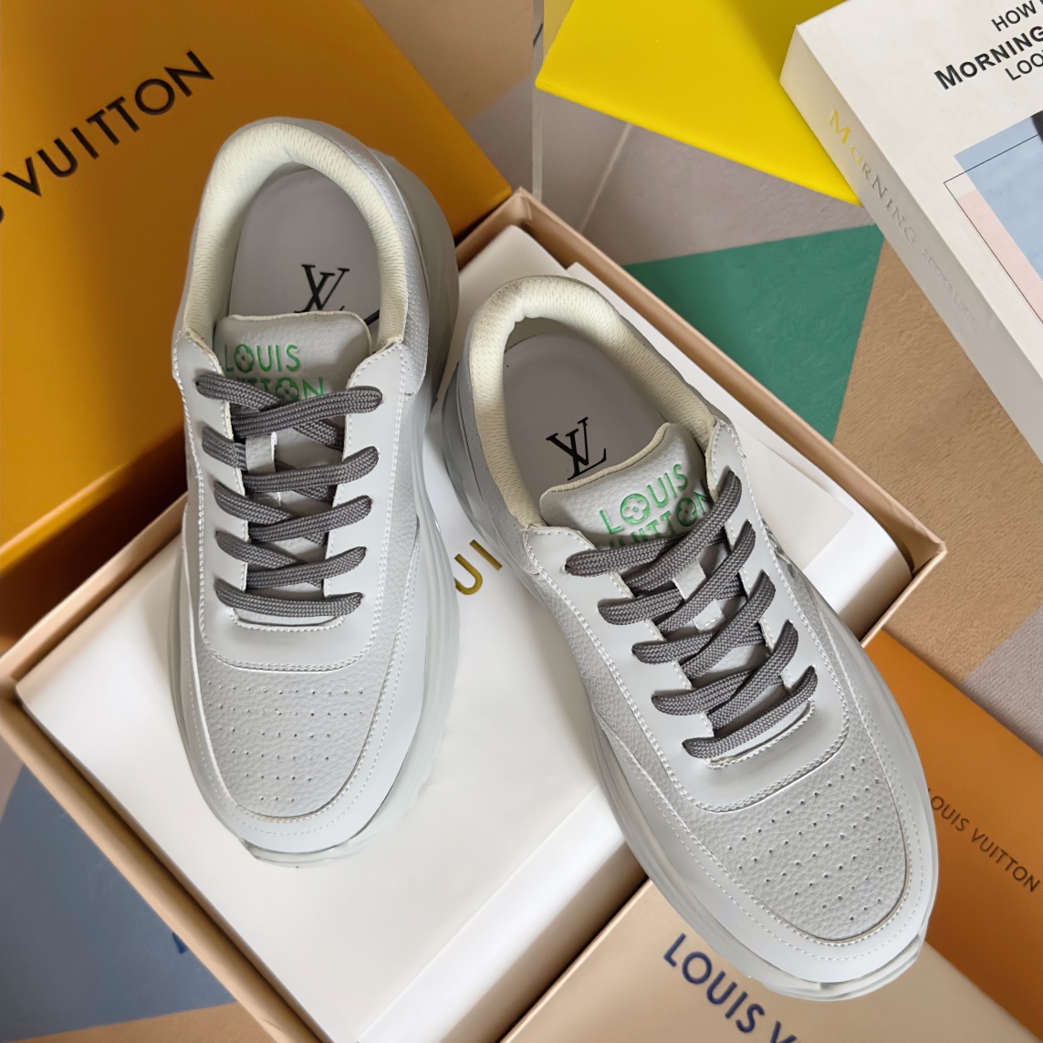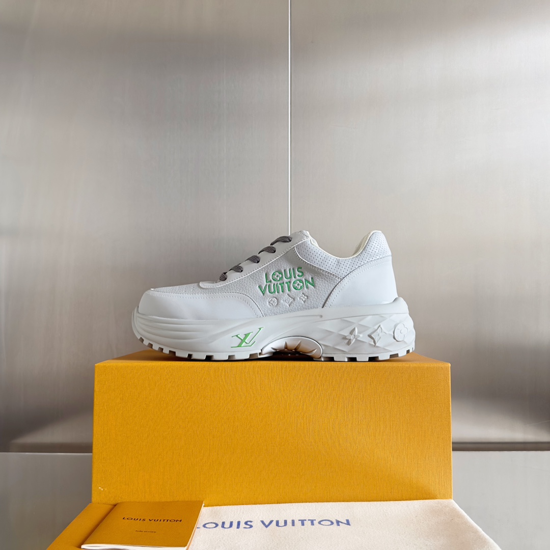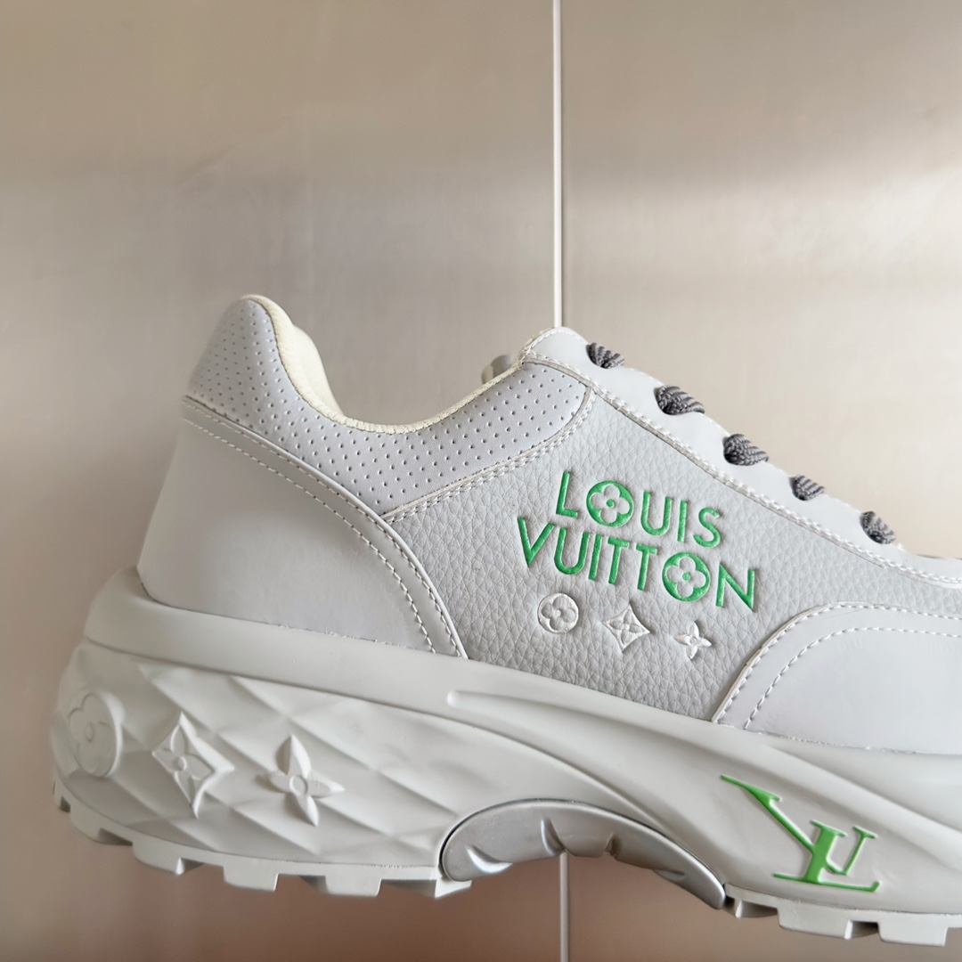 这款鞋子是AAAAA 1:1 质量 (非常棒). 使用了和原版一模一样的材料. 商标部分也保持了和路易威登/Louis Vuitton一样. 图片拍摄是实物鞋子拍摄, 您所收到的实物保证和我们图片一模一样.