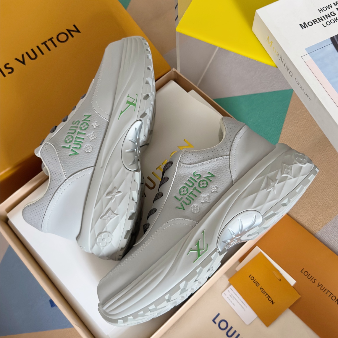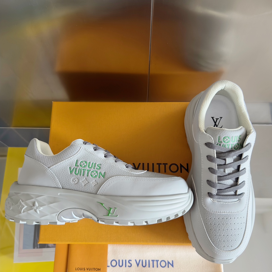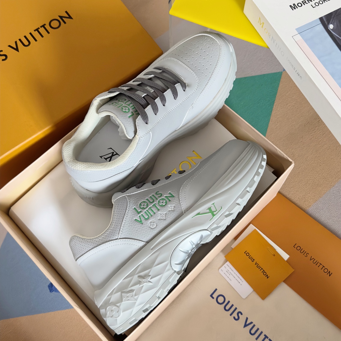 这款鞋子是AAAAA 1:1 质量 (非常棒). 使用了和原版一模一样的材料. 商标部分也保持了和路易威登/Louis Vuitton一样. 图片拍摄是实物鞋子拍摄, 您所收到的实物保证和我们图片一模一样.