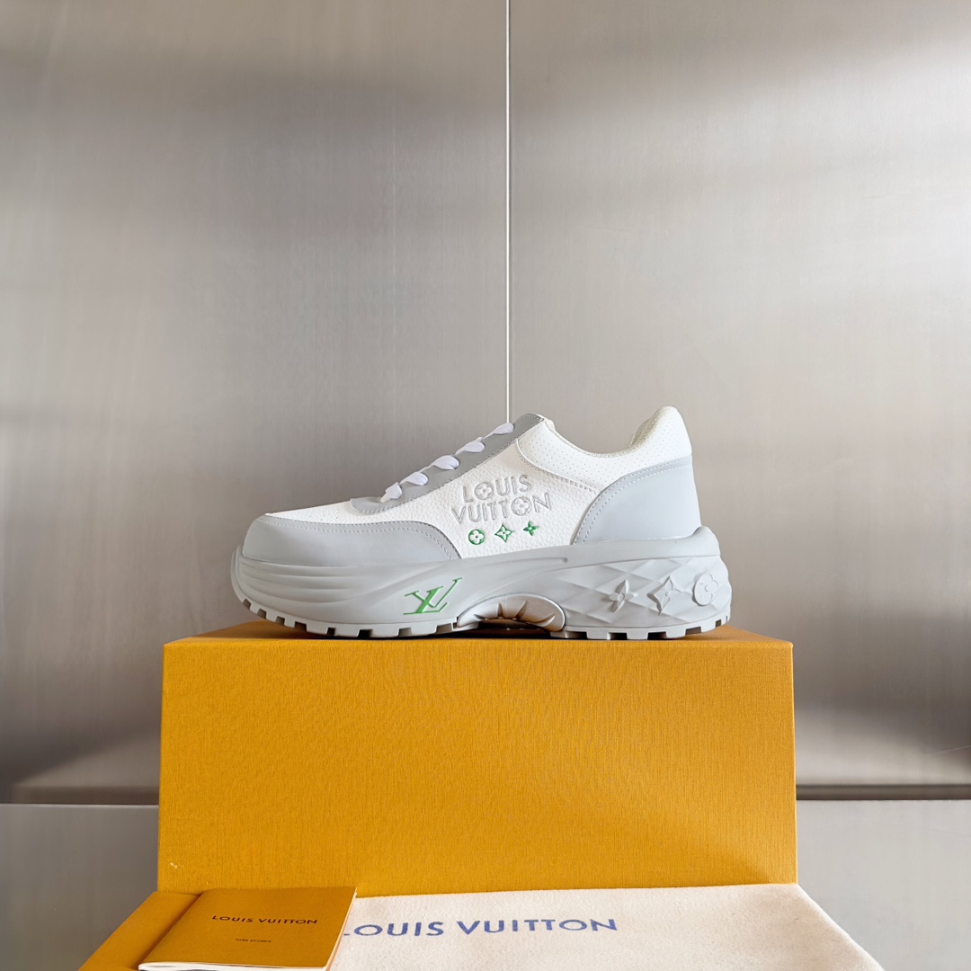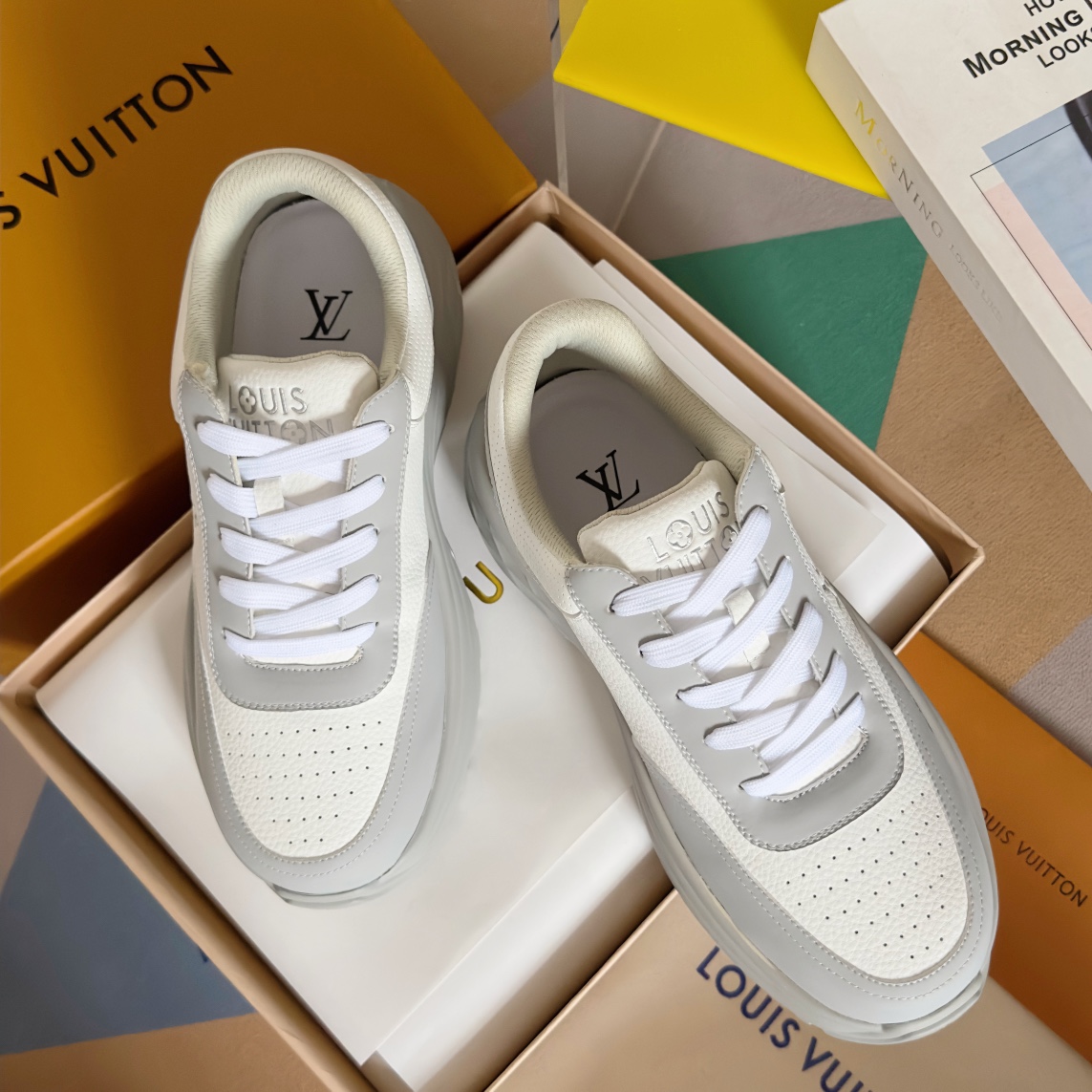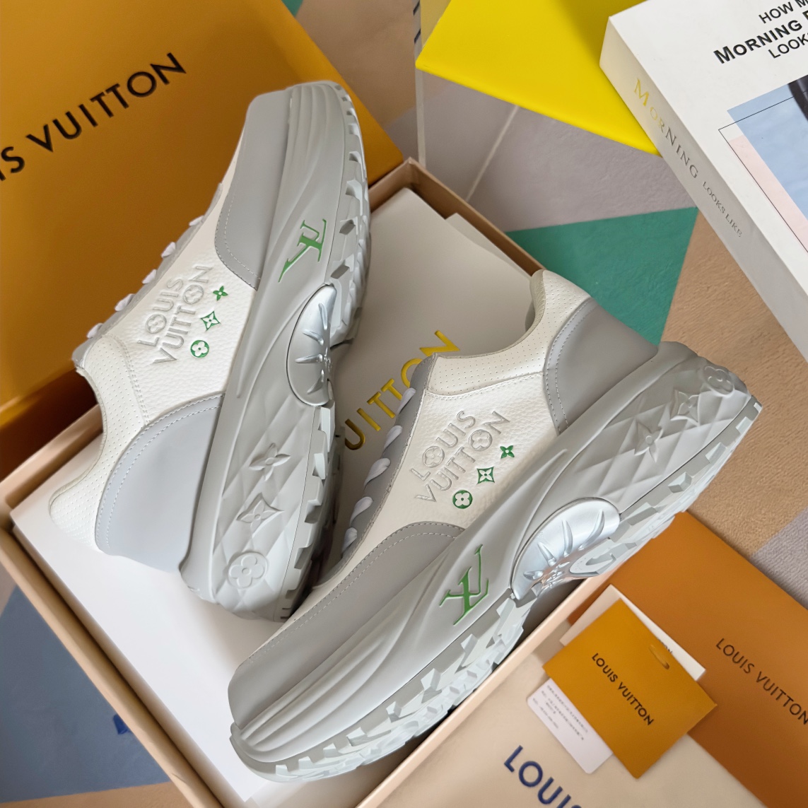 这款鞋子是AAAAA 1:1 质量 (非常棒). 使用了和原版一模一样的材料. 商标部分也保持了和路易威登/Louis Vuitton一样. 图片拍摄是实物鞋子拍摄, 您所收到的实物保证和我们图片一模一样.