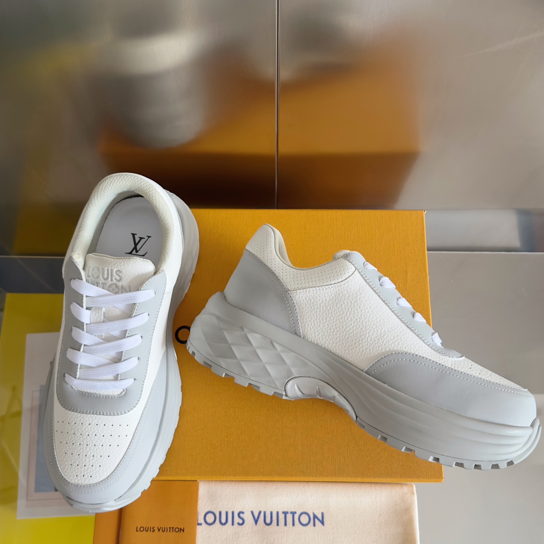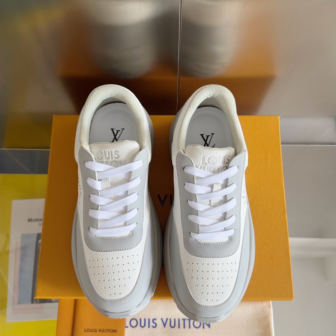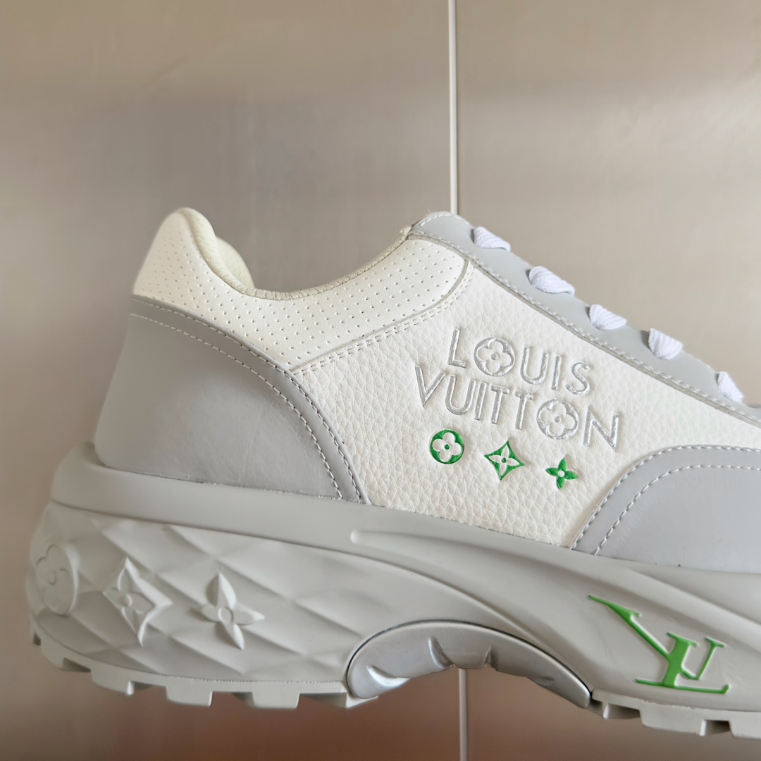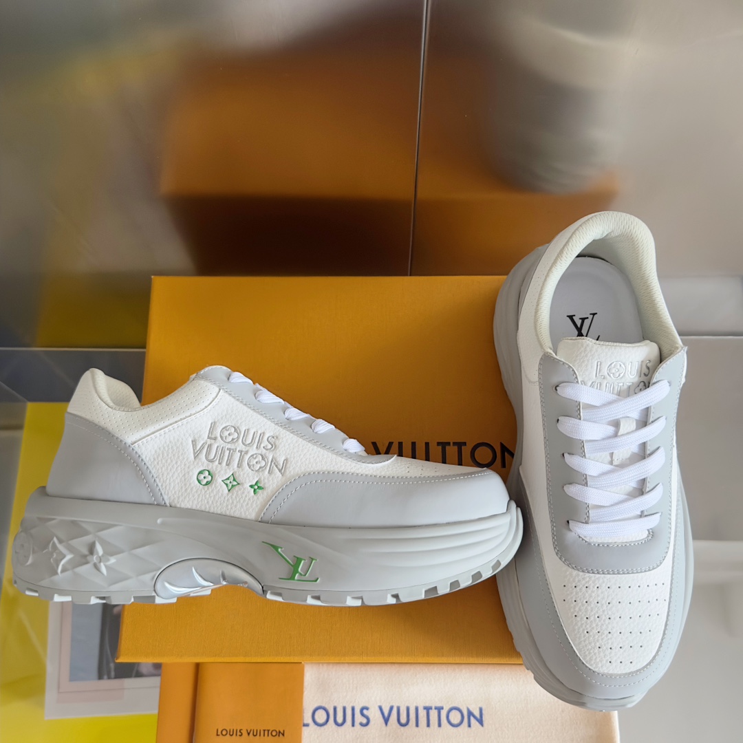 这款鞋子是AAAAA 1:1 质量 (非常棒). 使用了和原版一模一样的材料. 商标部分也保持了和路易威登/Louis Vuitton一样. 图片拍摄是实物鞋子拍摄, 您所收到的实物保证和我们图片一模一样.