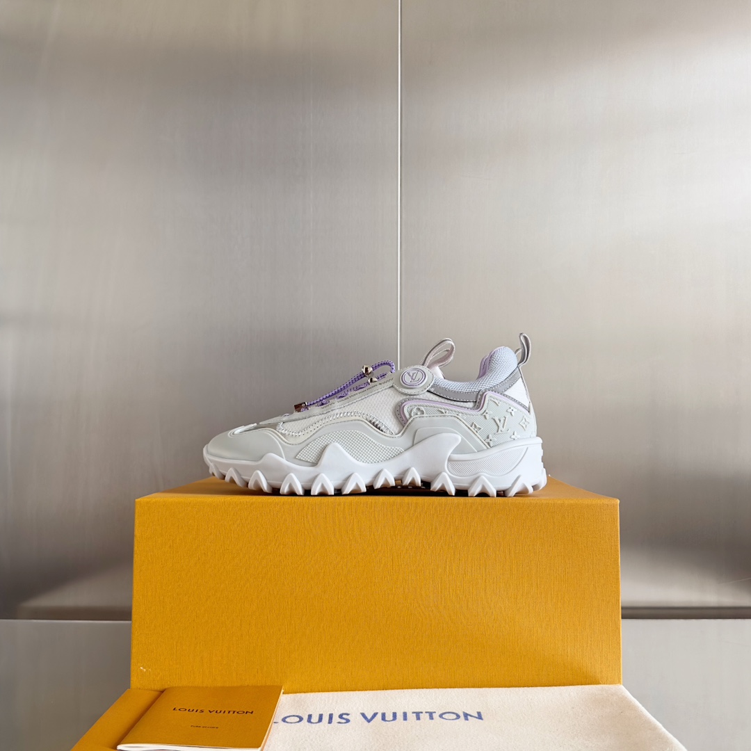 这款鞋子是AAAAA 1:1 质量 (非常棒). 使用了和原版一模一样的材料. 商标部分也保持了和路易威登/Louis Vuitton一样. 图片拍摄是实物鞋子拍摄, 您所收到的实物保证和我们图片一模一样.