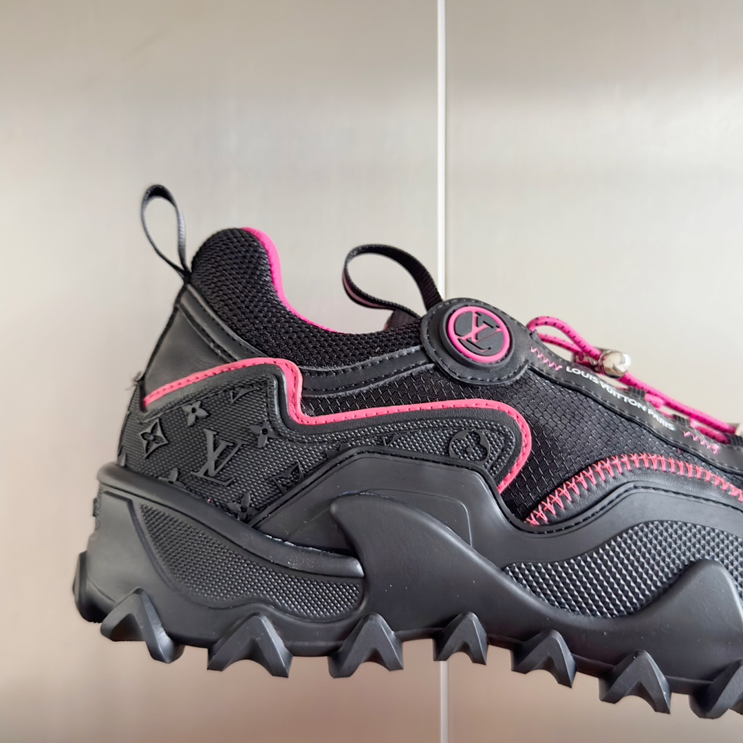 这款鞋子是AAAAA 1:1 质量 (非常棒). 使用了和原版一模一样的材料. 商标部分也保持了和路易威登/Louis Vuitton一样. 图片拍摄是实物鞋子拍摄, 您所收到的实物保证和我们图片一模一样.