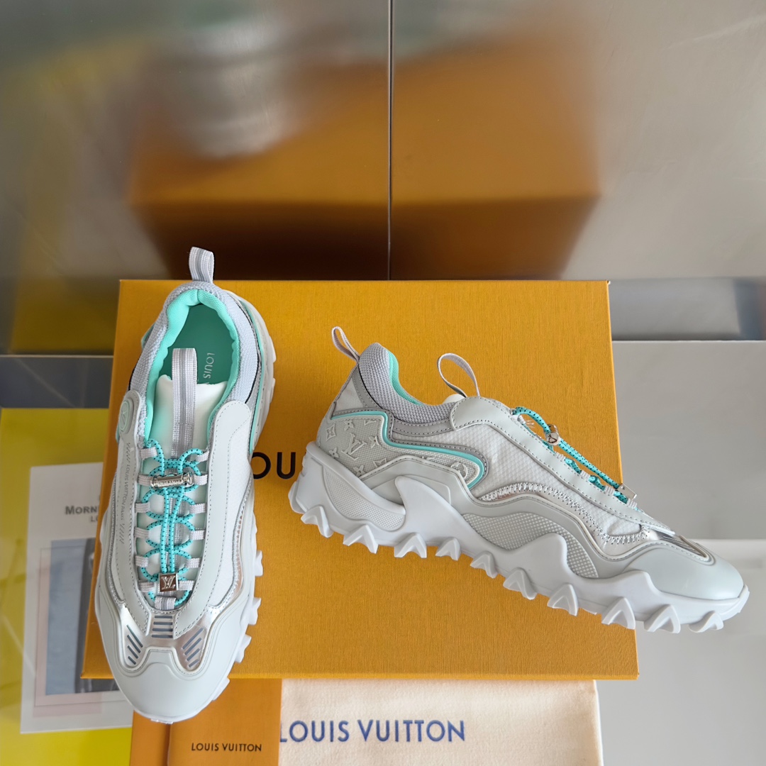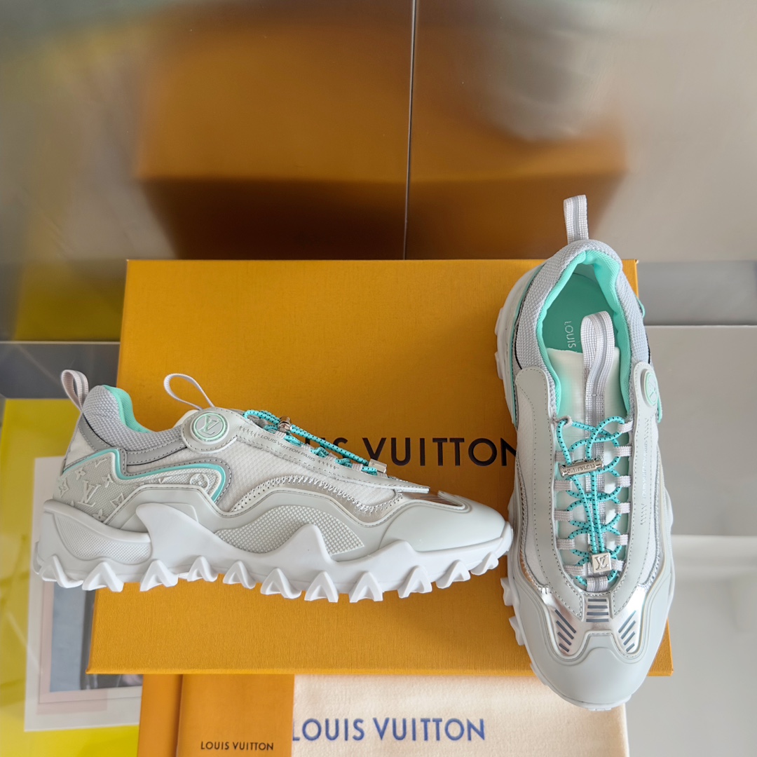 这款鞋子是AAAAA 1:1 质量 (非常棒). 使用了和原版一模一样的材料. 商标部分也保持了和路易威登/Louis Vuitton一样. 图片拍摄是实物鞋子拍摄, 您所收到的实物保证和我们图片一模一样.