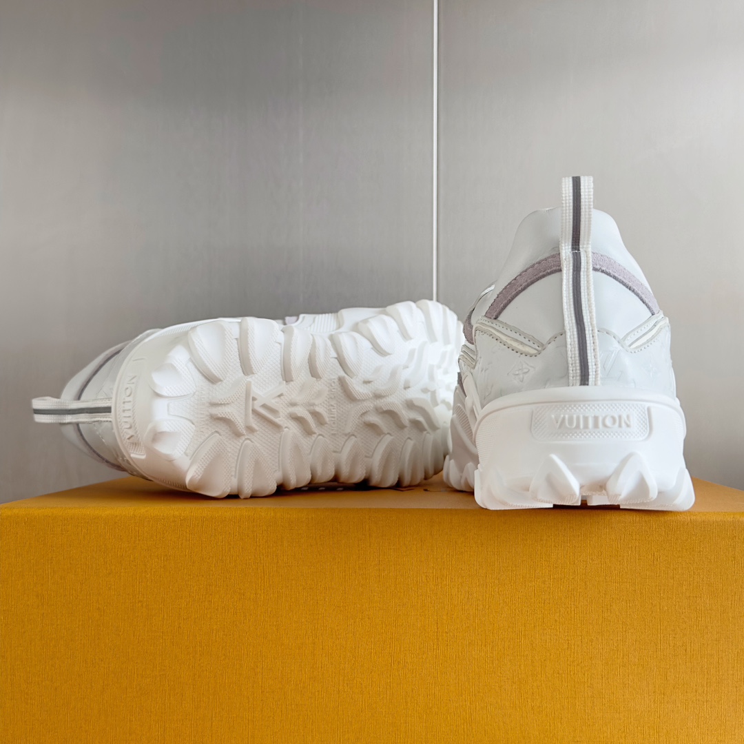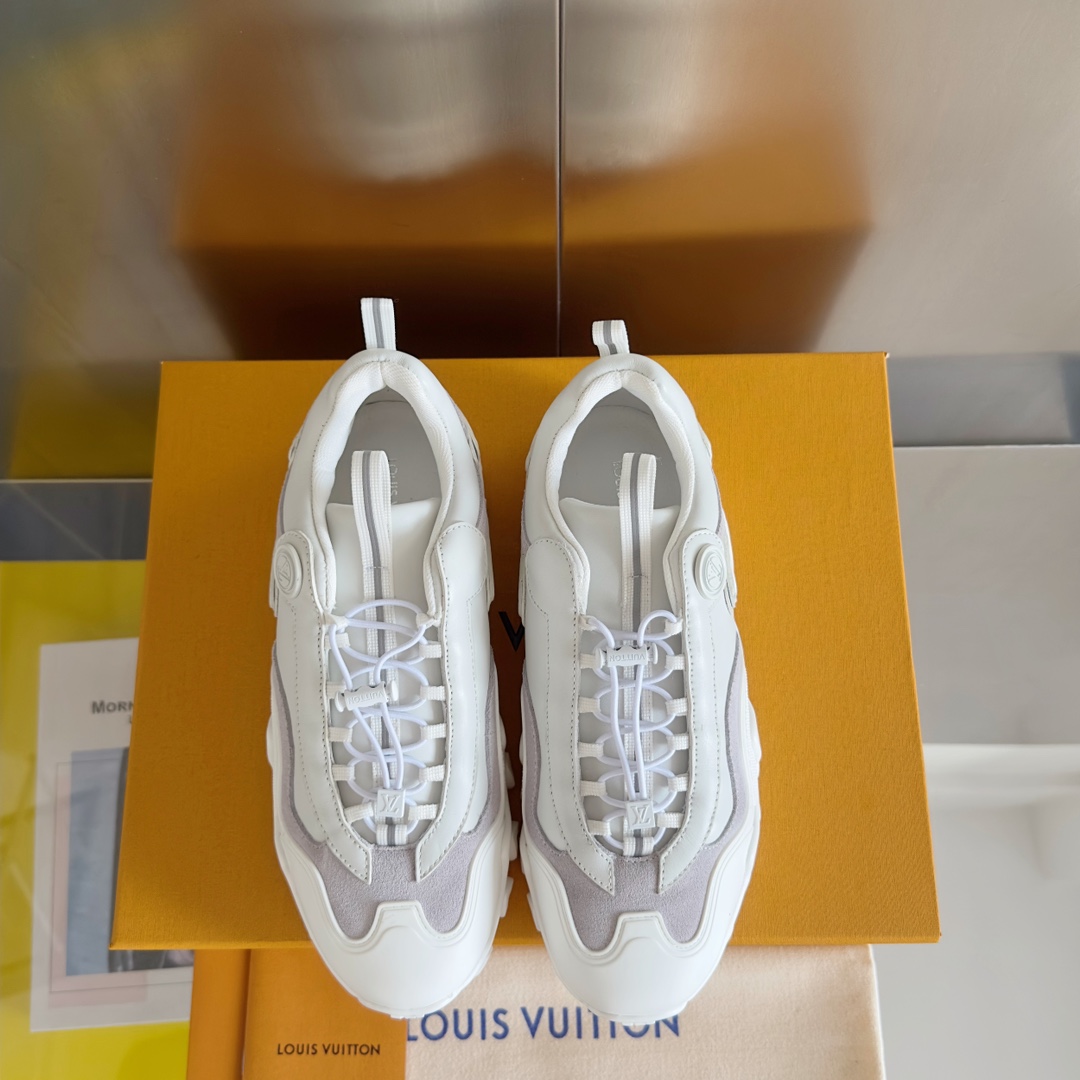 这款鞋子是AAAAA 1:1 质量 (非常棒). 使用了和原版一模一样的材料. 商标部分也保持了和路易威登/Louis Vuitton一样. 图片拍摄是实物鞋子拍摄, 您所收到的实物保证和我们图片一模一样.