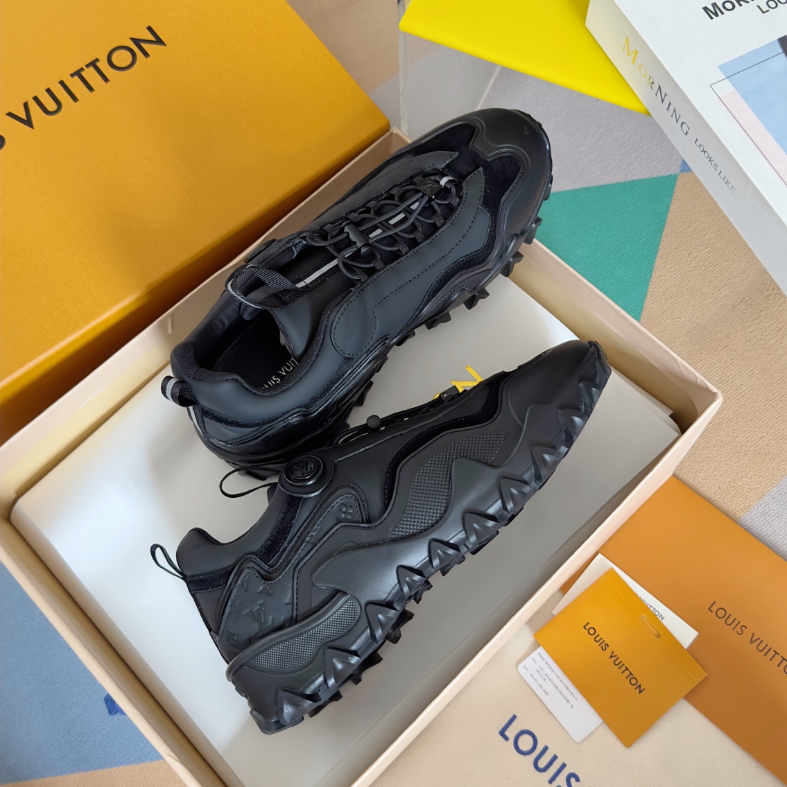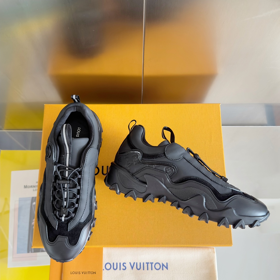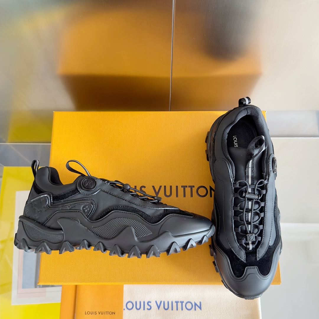 这款鞋子是AAAAA 1:1 质量 (非常棒). 使用了和原版一模一样的材料. 商标部分也保持了和路易威登/Louis Vuitton一样. 图片拍摄是实物鞋子拍摄, 您所收到的实物保证和我们图片一模一样.