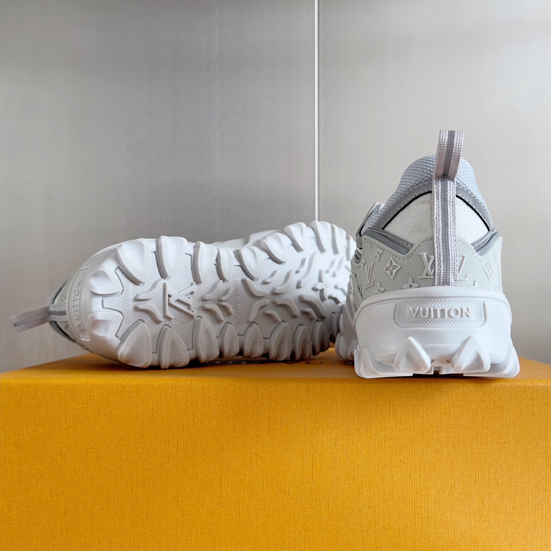 这款鞋子是AAAAA 1:1 质量 (非常棒). 使用了和原版一模一样的材料. 商标部分也保持了和路易威登/Louis Vuitton一样. 图片拍摄是实物鞋子拍摄, 您所收到的实物保证和我们图片一模一样.
