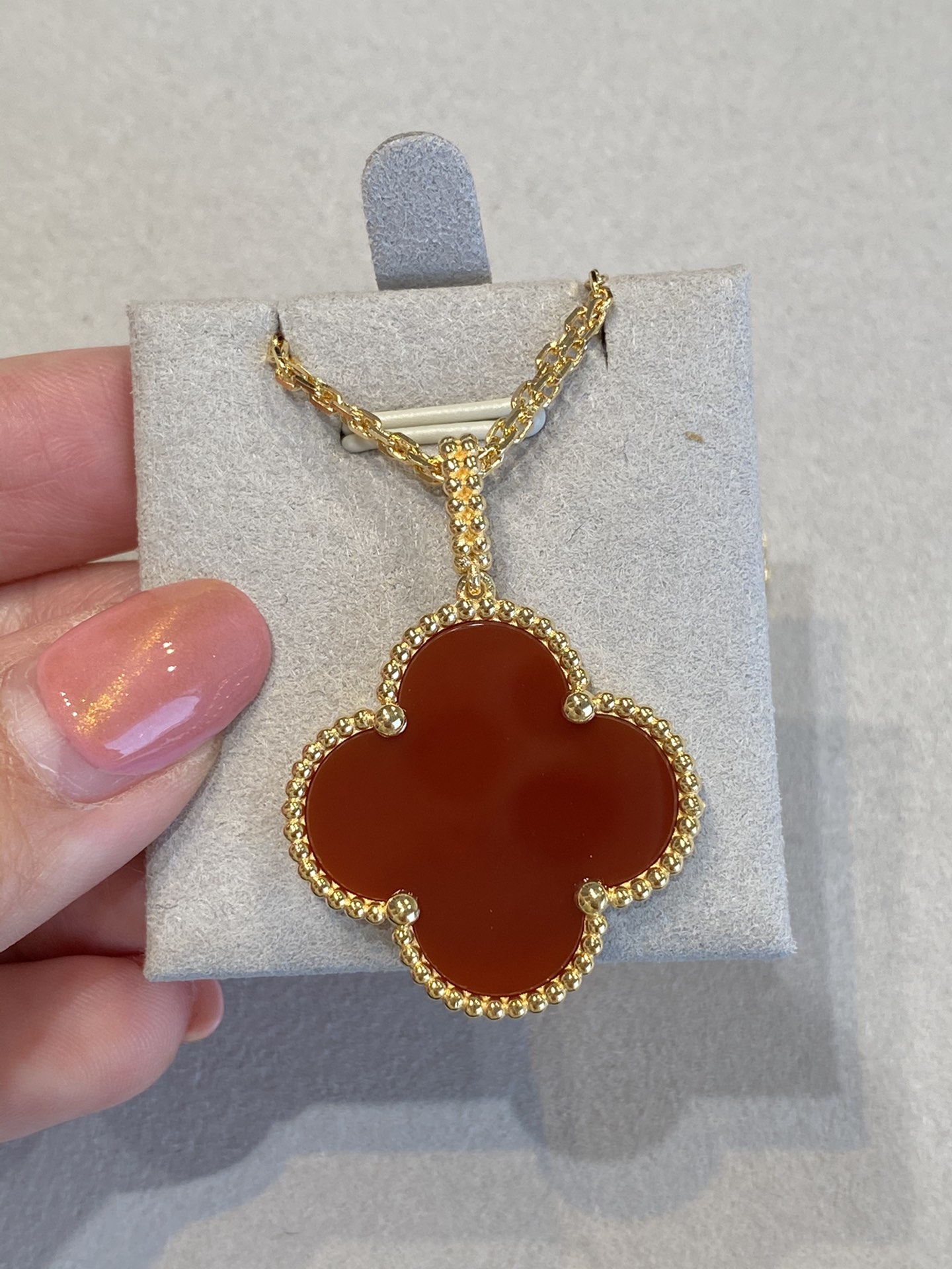 这款首饰是AAAAA 1:1 质量 (非常棒). 使用了和原版一模一样的材料. 商标部分也保持了和梵克雅宝/Van Cleef & Arpels一样. 图片拍摄是实物首饰拍摄, 您所收到的实物保证和我们图片一模一样.