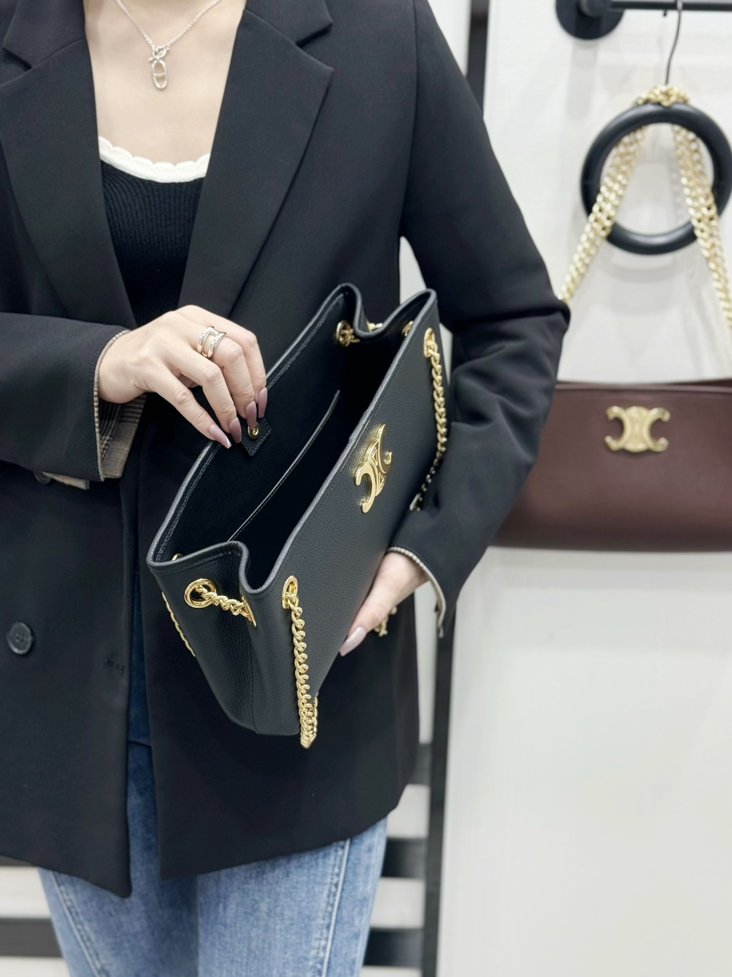 这款包包是AAAAA 1:1 质量 (非常棒). 使用了和原版一模一样的材料. 商标部分也保持了和思琳/Celine一样. 图片拍摄是实物包包拍摄, 您所收到的实物保证和我们图片一模一样.
