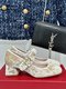 这款鞋子是AAAAA 1:1 质量 (非常棒). 使用了和原版一模一样的材料. 商标部分也保持了和罗杰维维耶/Roger Vivier一样. 图片拍摄是实物鞋子拍摄, 您所收到的实物保证和我们图片一模一样.