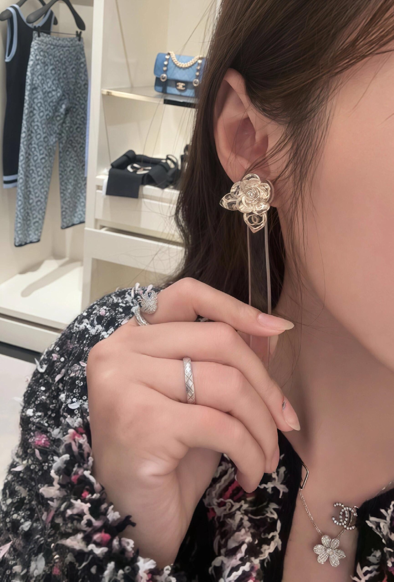 这款首饰是AAAAA 1:1 质量 (非常棒). 使用了和原版一模一样的材料. 商标部分也保持了和香奈儿/Chanel一样. 图片拍摄是实物首饰拍摄, 您所收到的实物保证和我们图片一模一样.