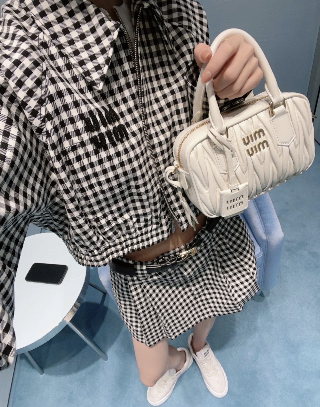 这款包包是AAAAA 1:1 质量 (非常棒). 使用了和原版一模一样的材料. 商标部分也保持了和缪缪/Miu Miu一样. 图片拍摄是实物包包拍摄, 您所收到的实物保证和我们图片一模一样.