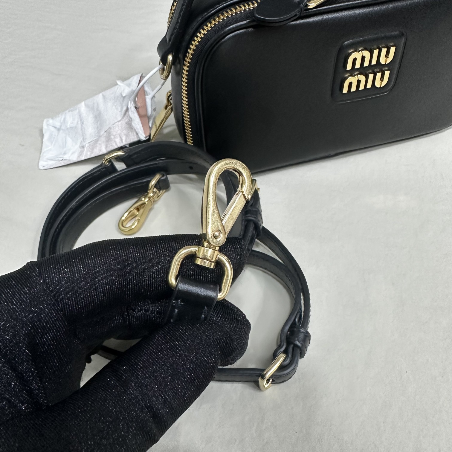 这款包包是AAAAA 1:1 质量 (非常棒). 使用了和原版一模一样的材料. 商标部分也保持了和缪缪/Miu Miu一样. 图片拍摄是实物包包拍摄, 您所收到的实物保证和我们图片一模一样.