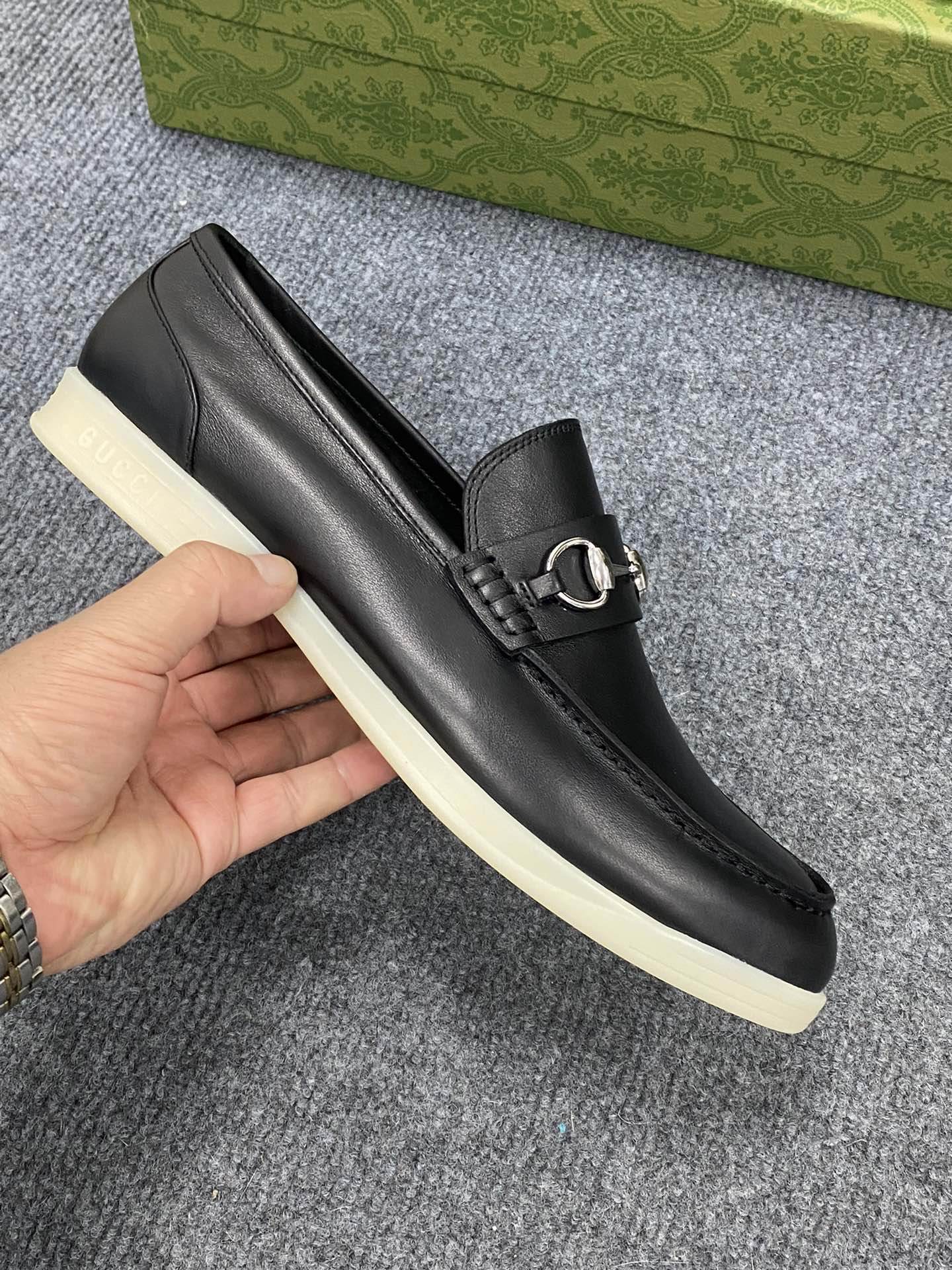 这款鞋子是AAAAA 1:1 质量 (非常棒). 使用了和原版一模一样的材料. 商标部分也保持了和古奇/Gucci一样. 图片拍摄是实物鞋子拍摄, 您所收到的实物保证和我们图片一模一样.