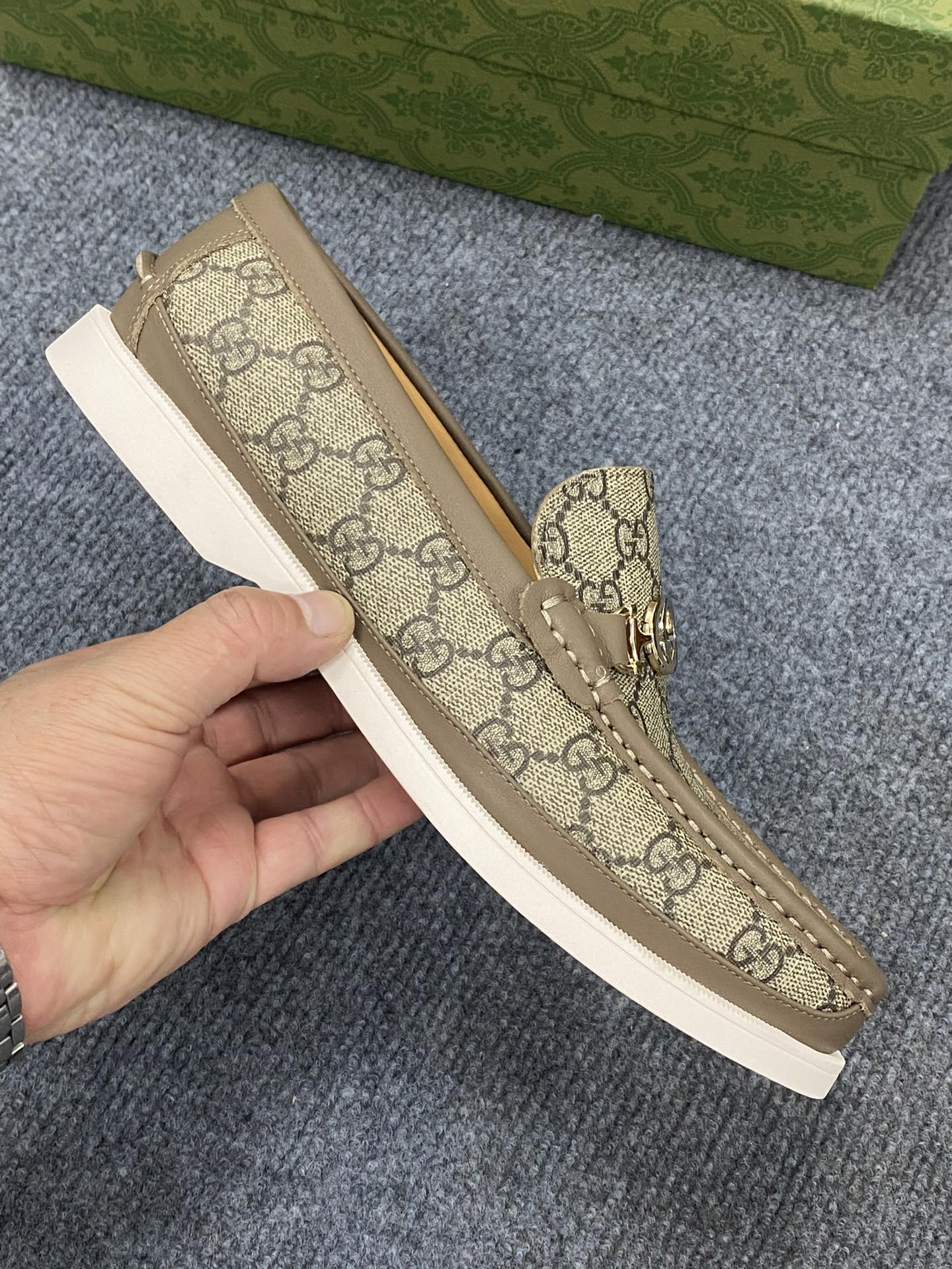 这款鞋子是AAAAA 1:1 质量 (非常棒). 使用了和原版一模一样的材料. 商标部分也保持了和古奇/Gucci一样. 图片拍摄是实物鞋子拍摄, 您所收到的实物保证和我们图片一模一样.