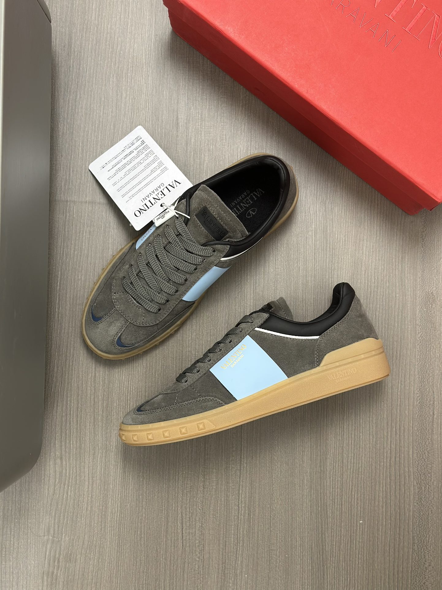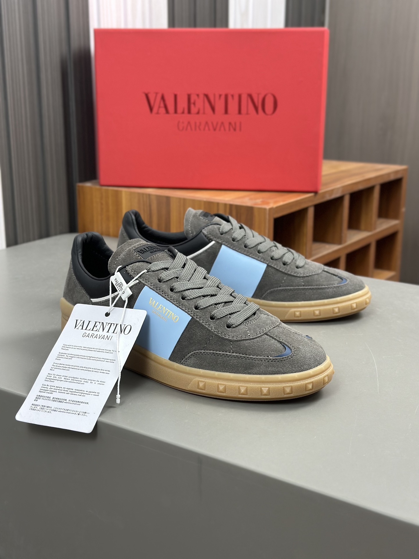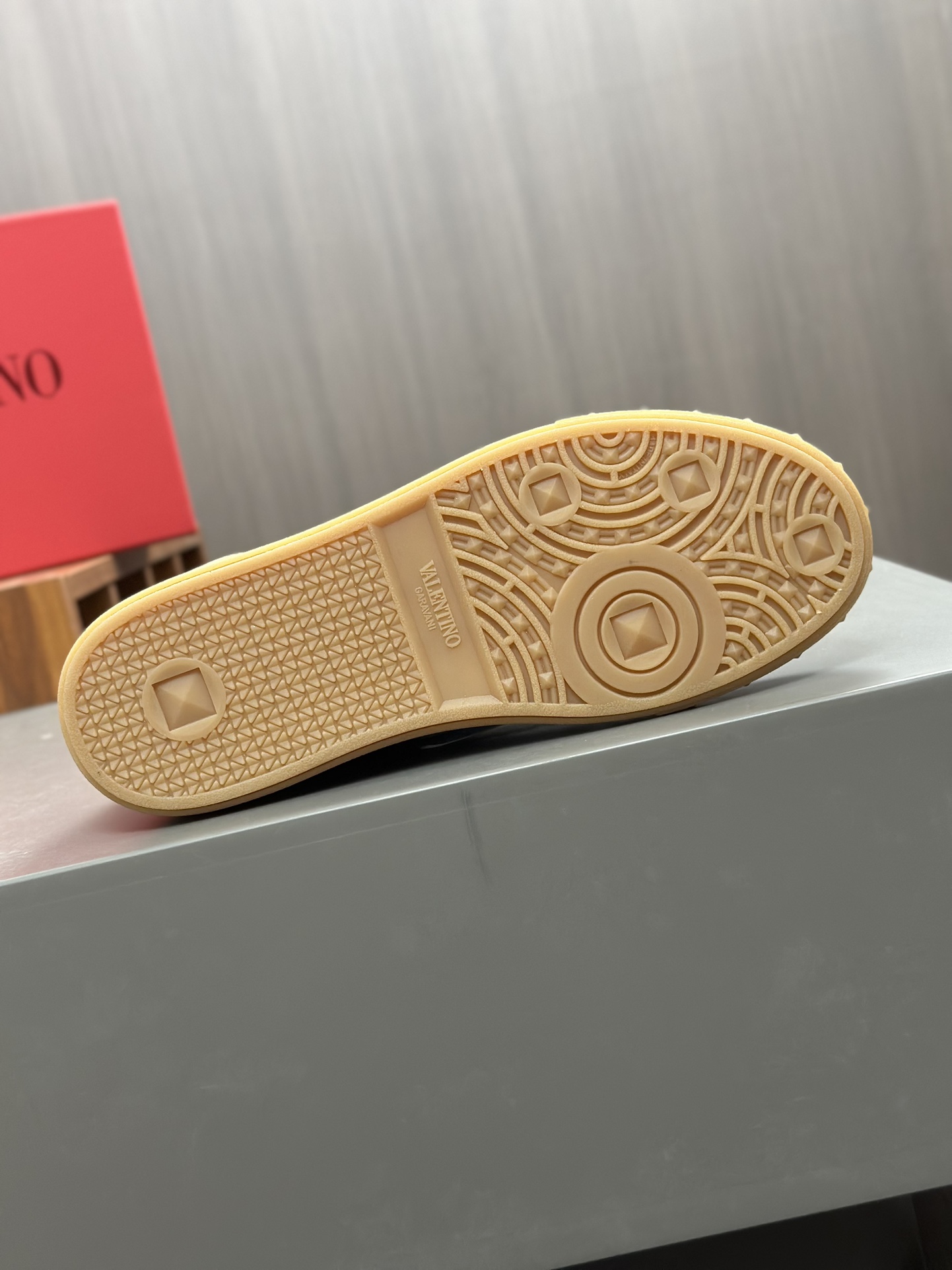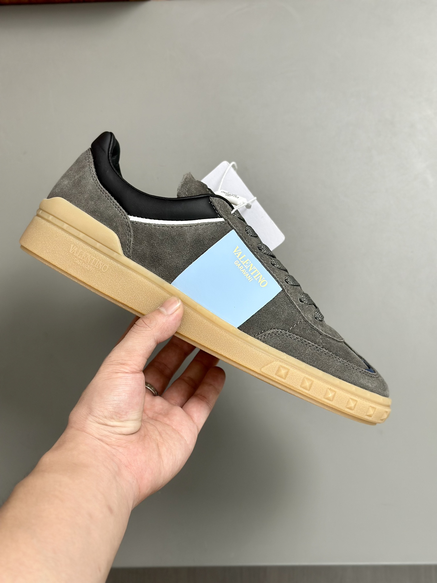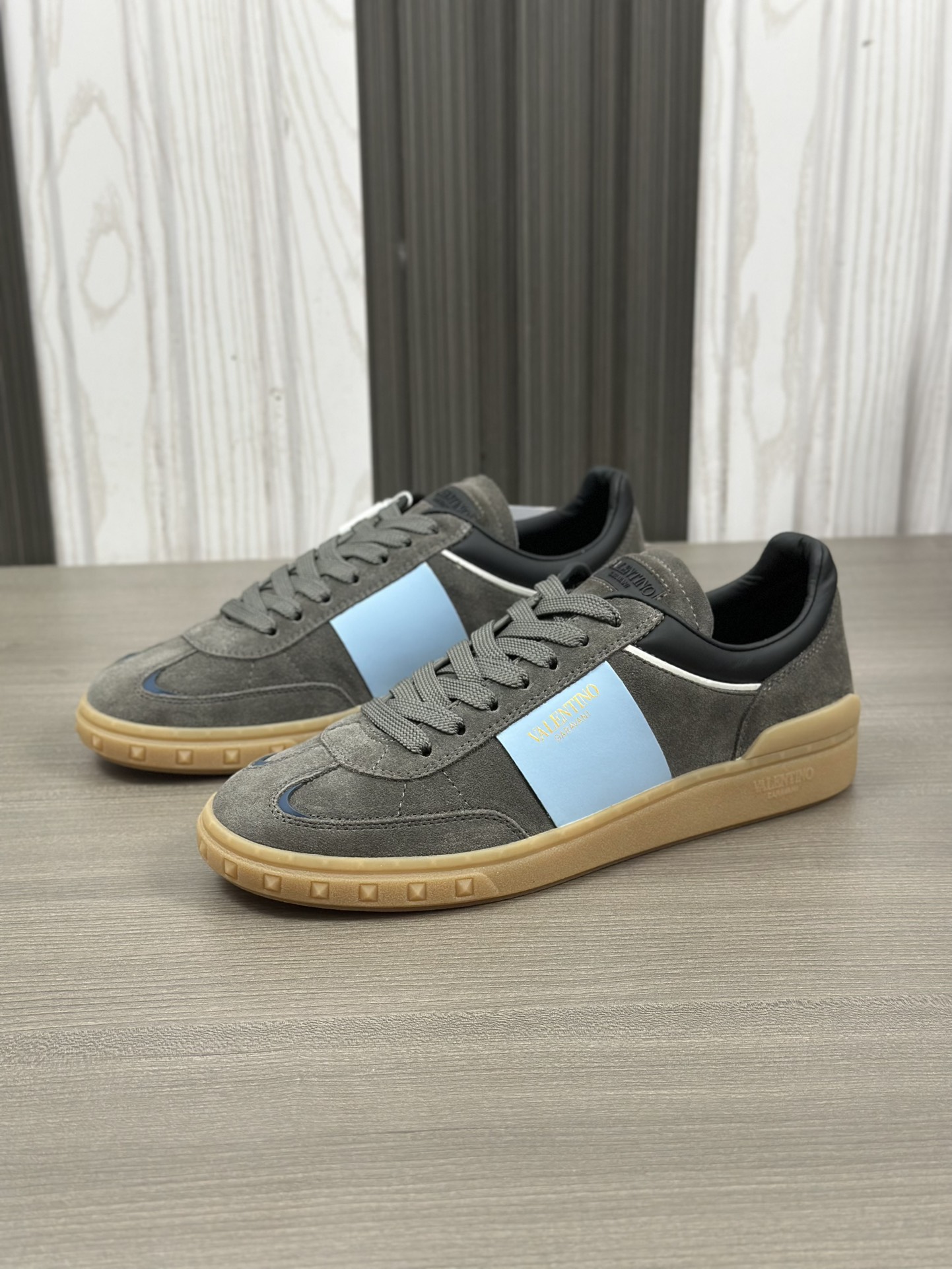 这款鞋子是AAAAA 1:1 质量 (非常棒). 使用了和原版一模一样的材料. 商标部分也保持了和华伦天奴/Valentino一样. 图片拍摄是实物鞋子拍摄, 您所收到的实物保证和我们图片一模一样.