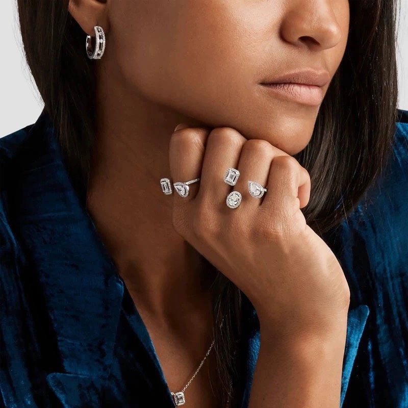 这款首饰是AAAAA 1:1 质量 (非常棒). 使用了和原版一模一样的材料. 商标部分也保持了和梅西卡/Messika一样. 图片拍摄是实物首饰拍摄, 您所收到的实物保证和我们图片一模一样.