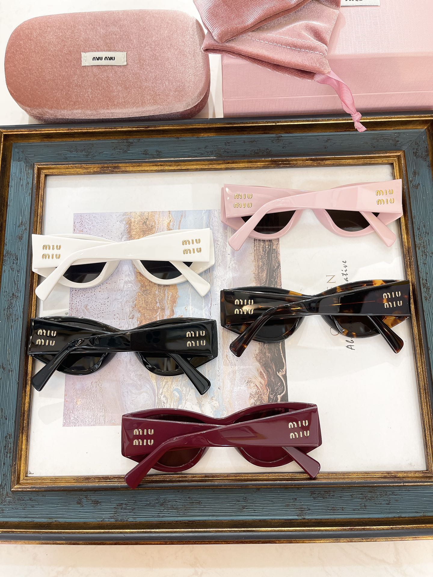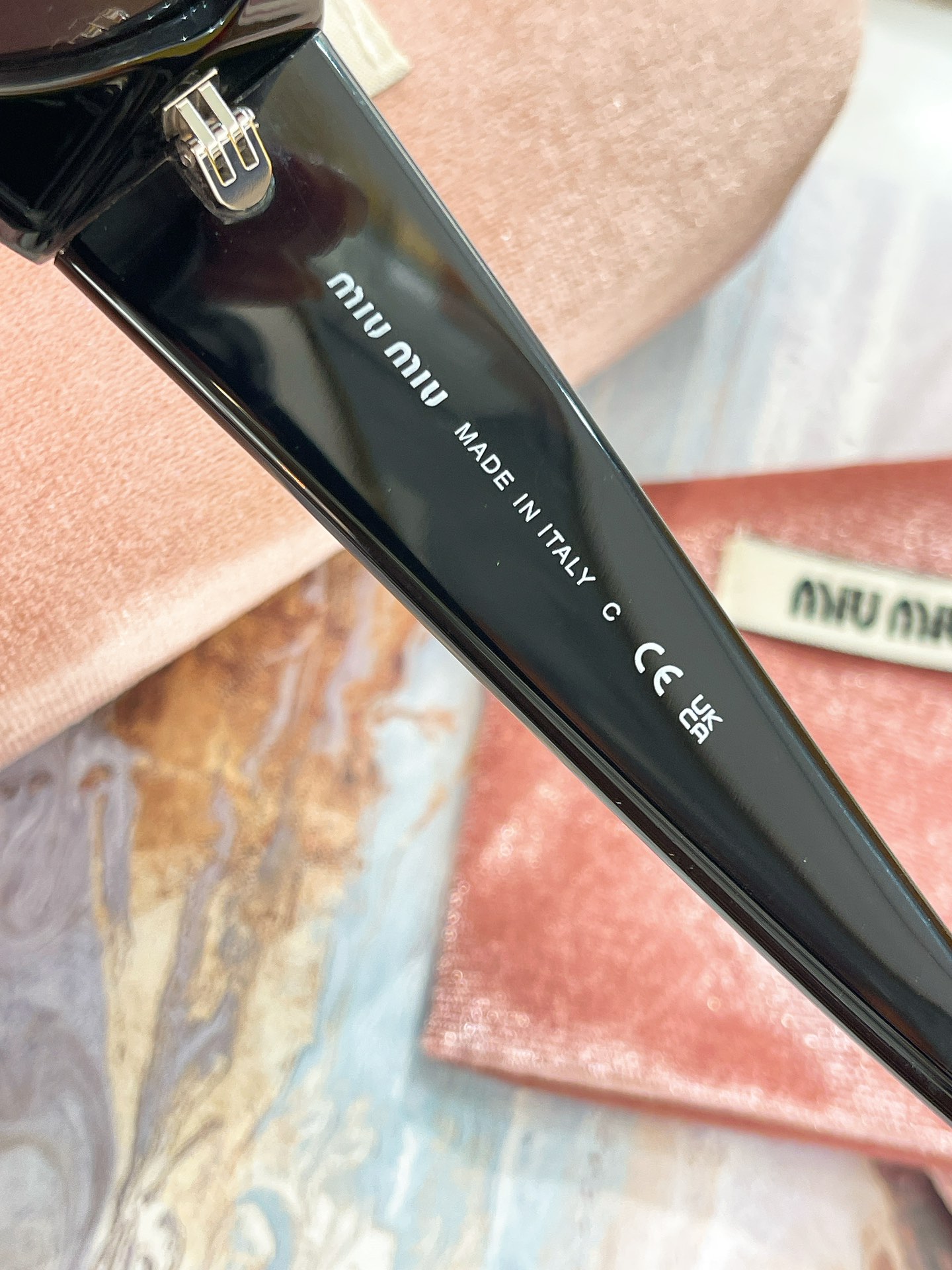 这款太阳眼镜是AAAAA 1:1 质量 (非常棒). 使用了和原版一模一样的材料. 商标部分也保持了和缪缪/Miu Miu一样. 图片拍摄是实物太阳眼镜拍摄, 您所收到的实物保证和我们图片一模一样.
