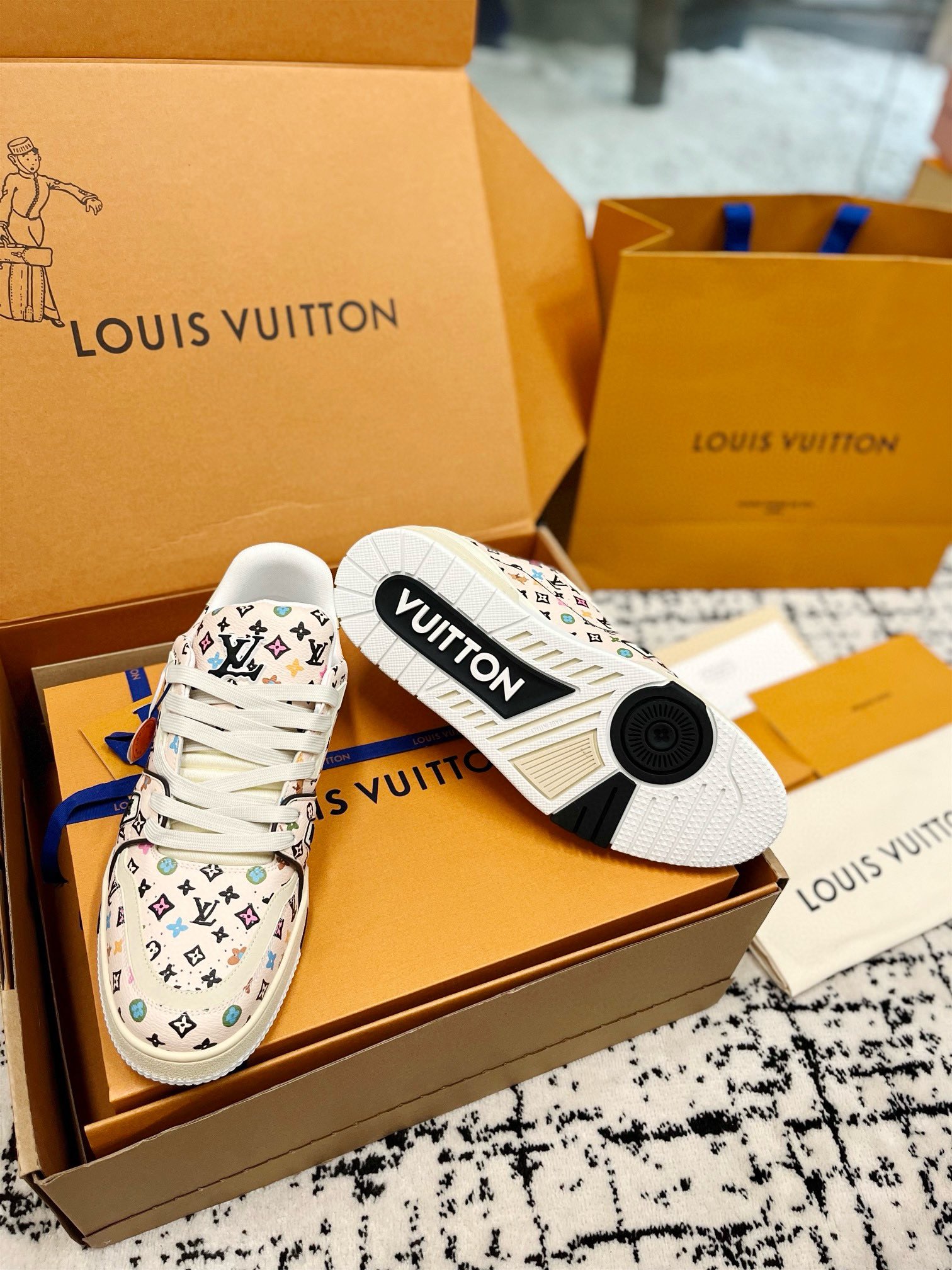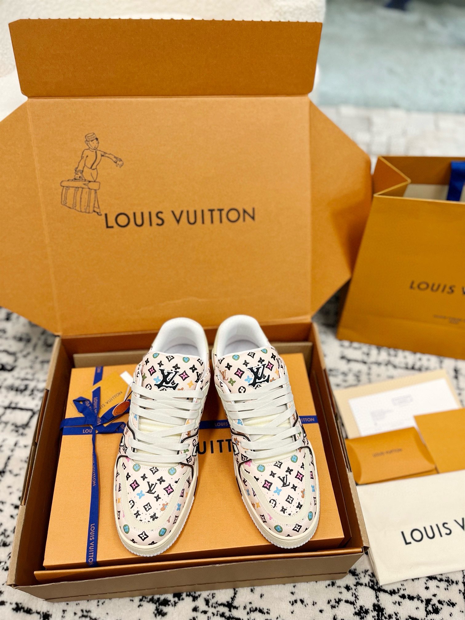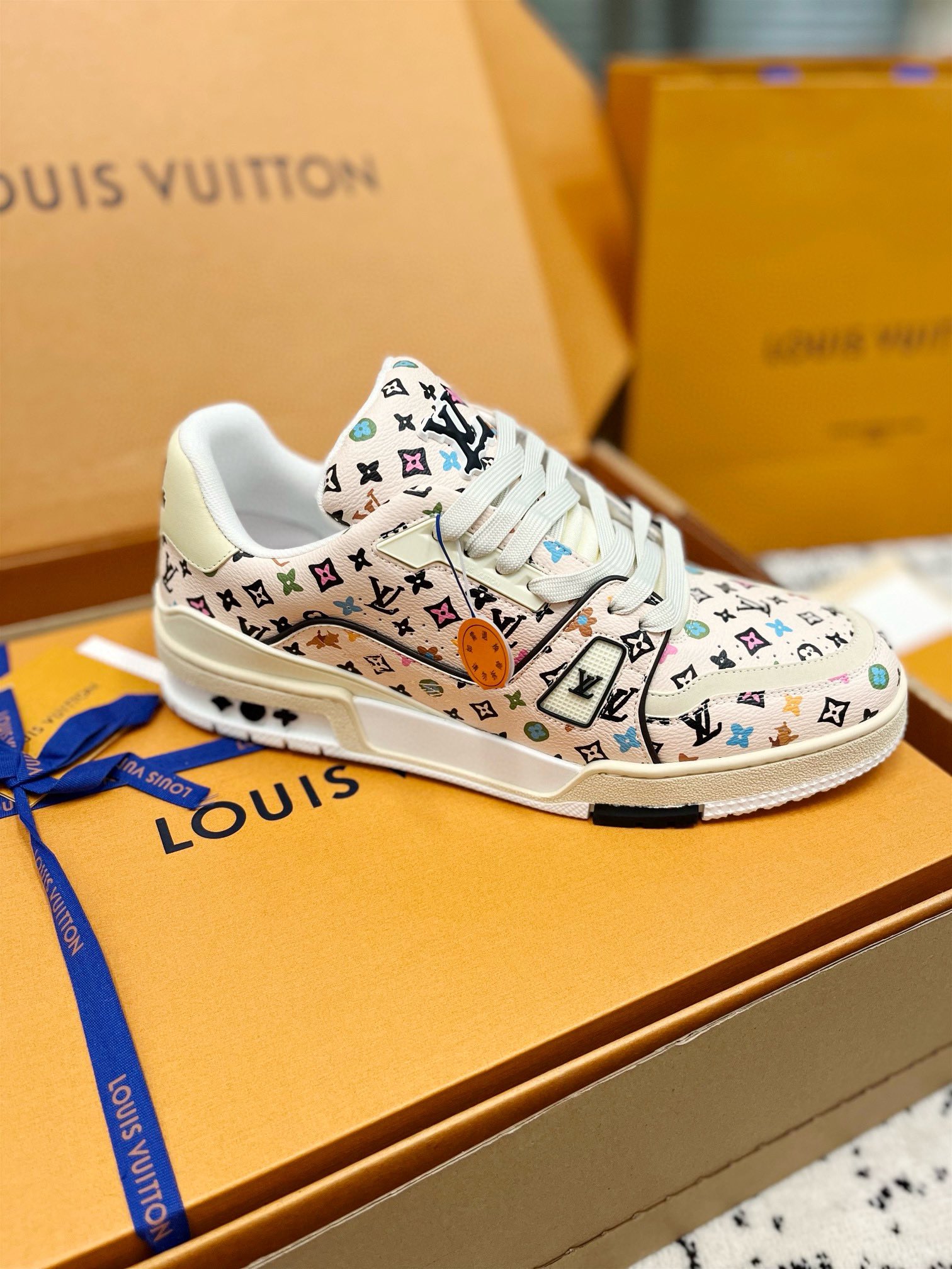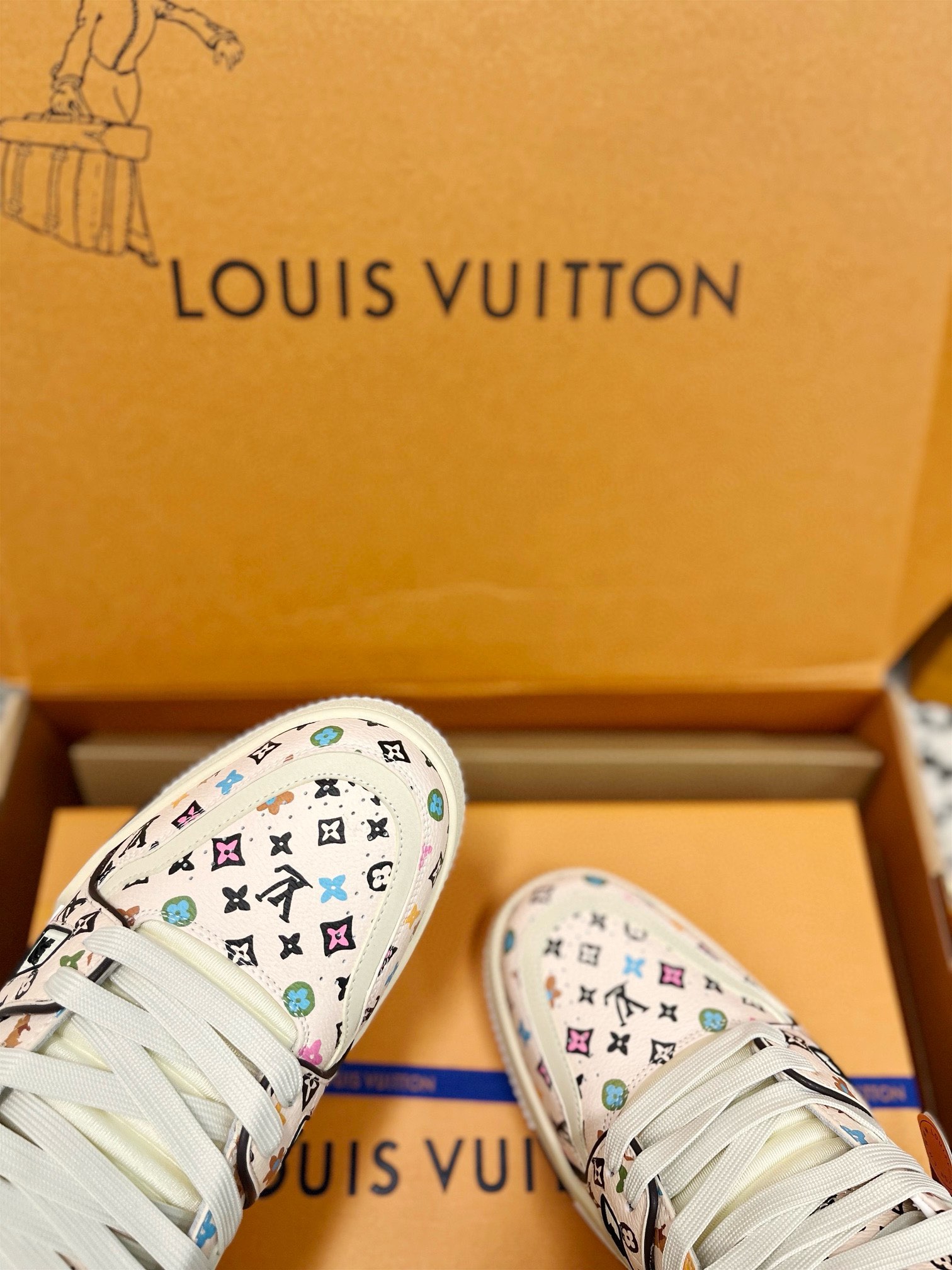 这款鞋子是AAAAA 1:1 质量 (非常棒). 使用了和原版一模一样的材料. 商标部分也保持了和路易威登/Louis Vuitton一样. 图片拍摄是实物鞋子拍摄, 您所收到的实物保证和我们图片一模一样.