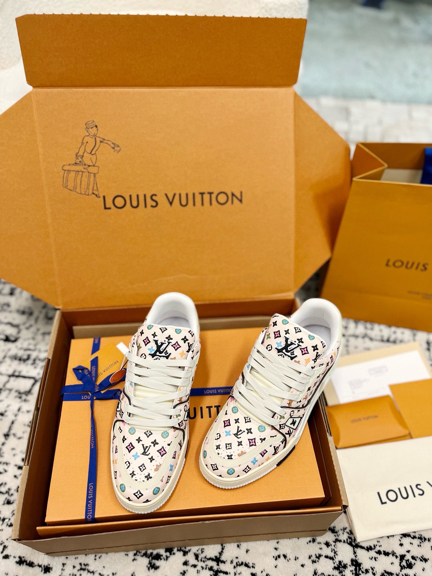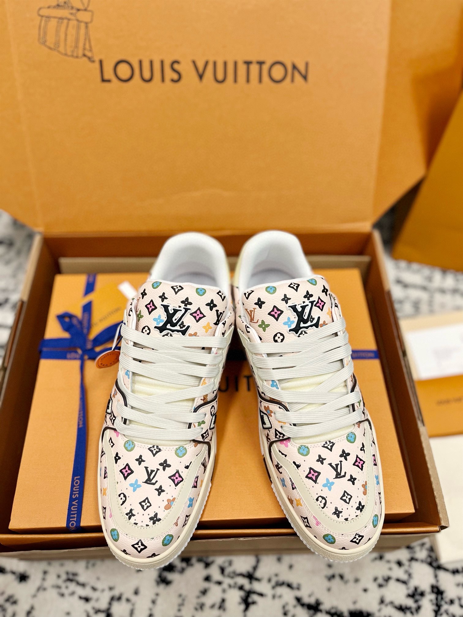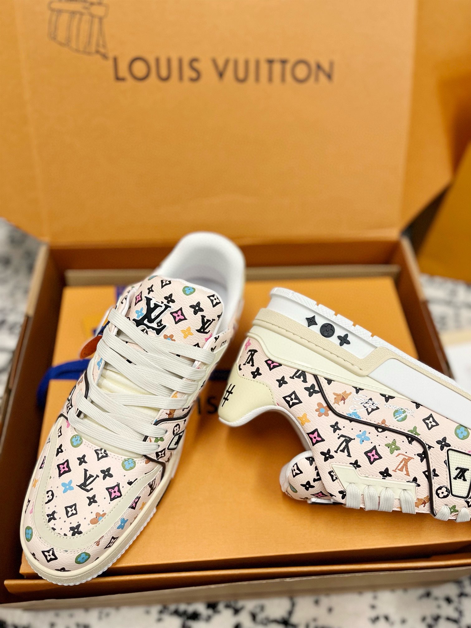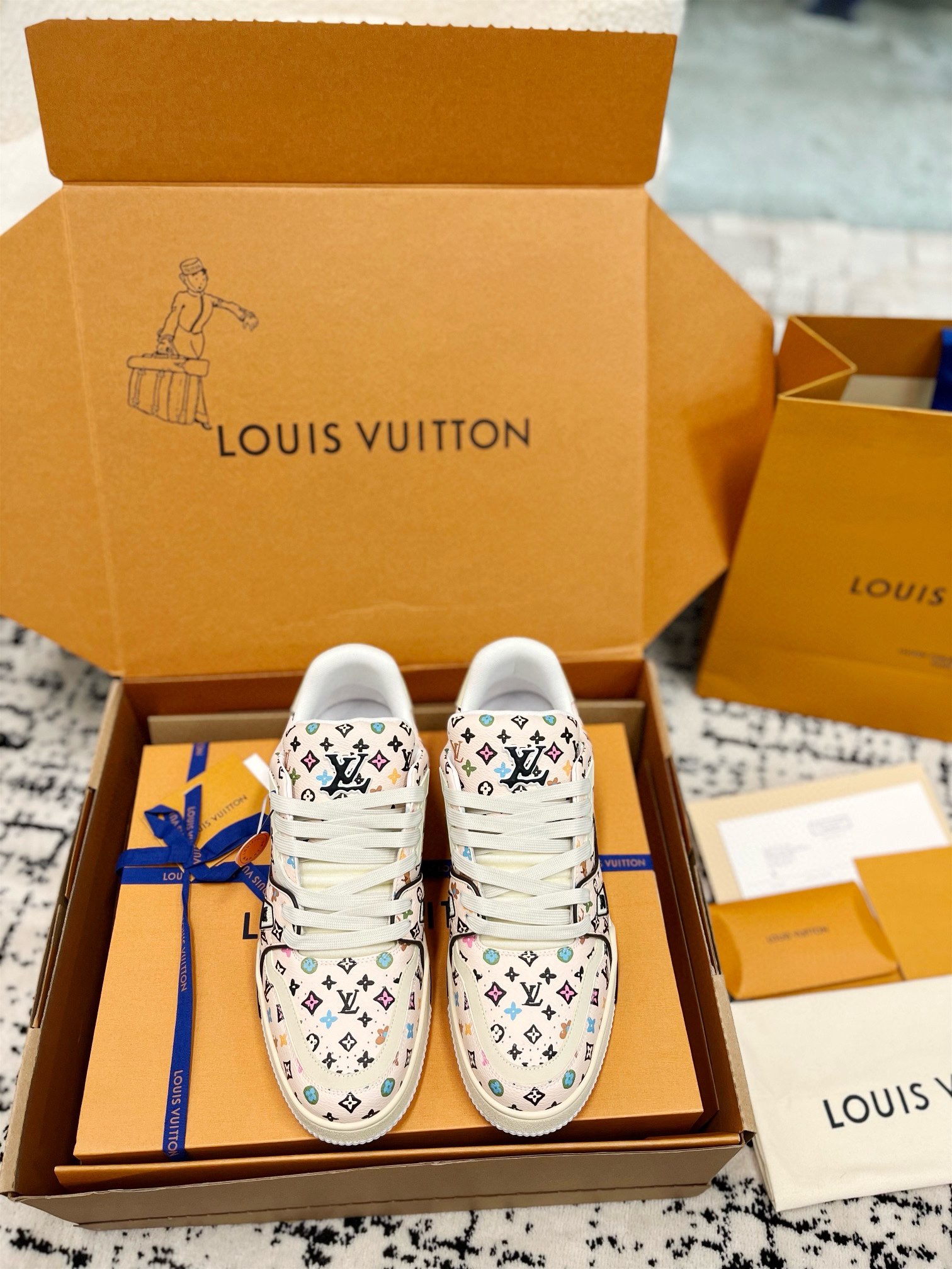 这款鞋子是AAAAA 1:1 质量 (非常棒). 使用了和原版一模一样的材料. 商标部分也保持了和路易威登/Louis Vuitton一样. 图片拍摄是实物鞋子拍摄, 您所收到的实物保证和我们图片一模一样.