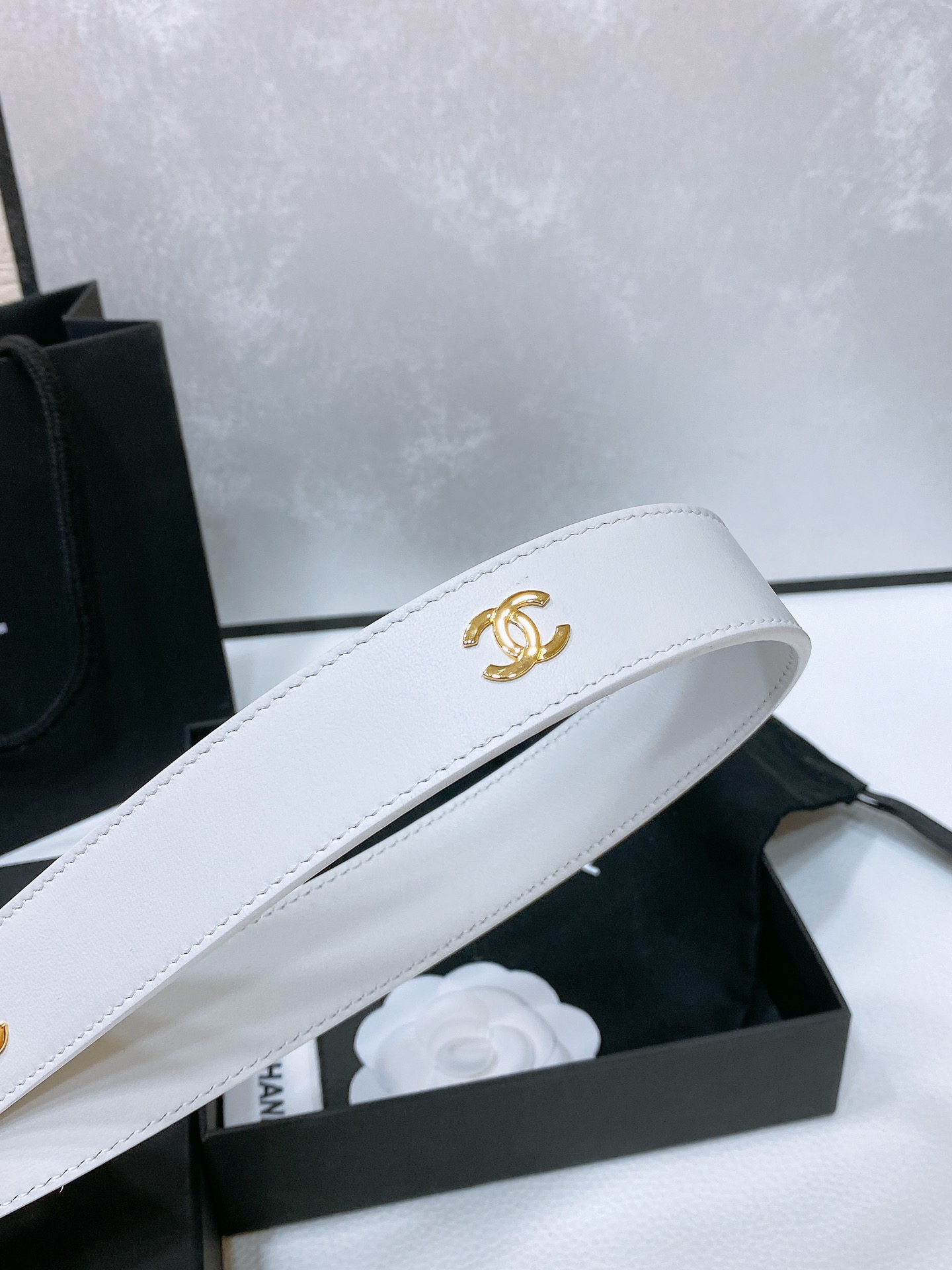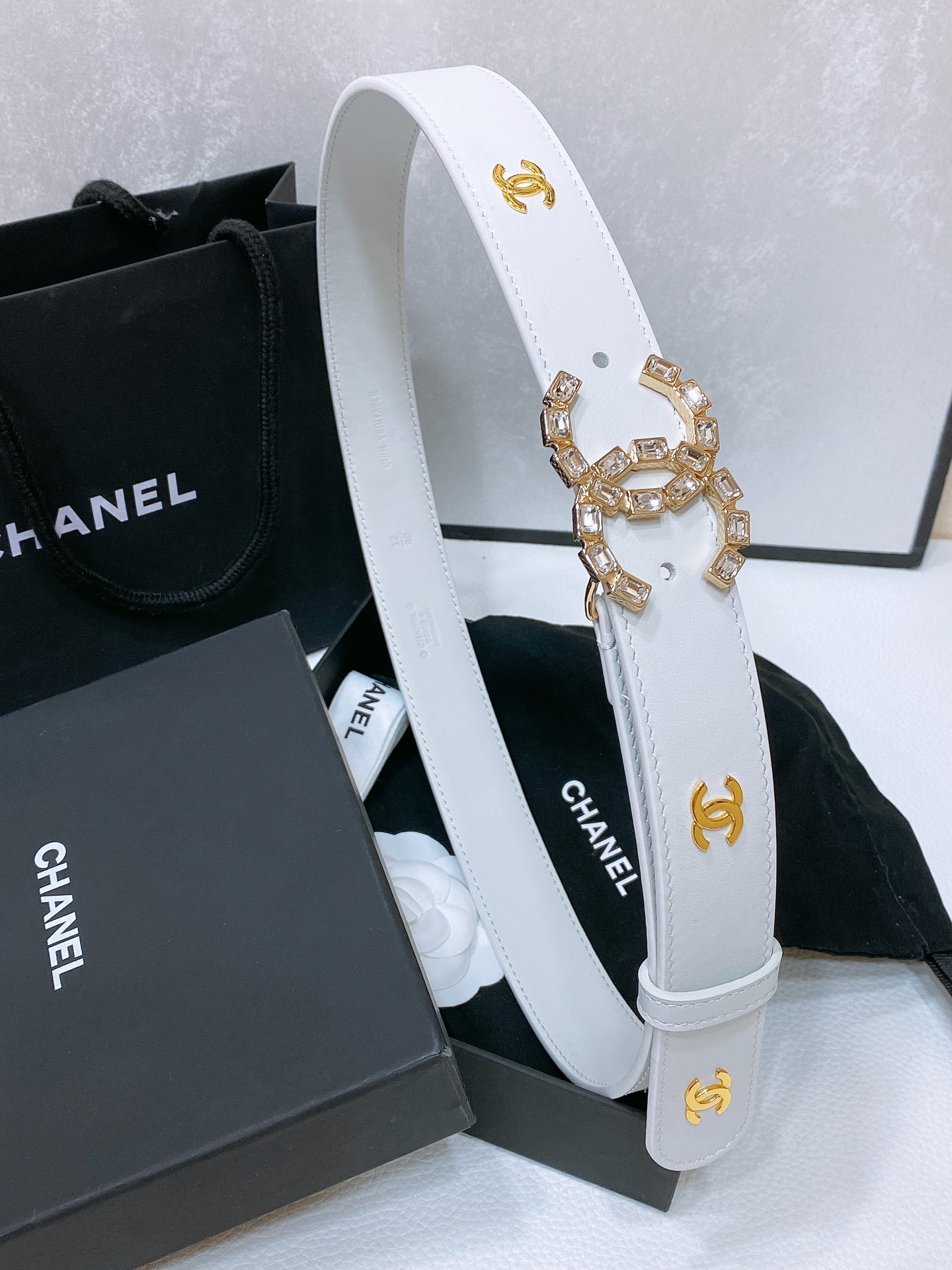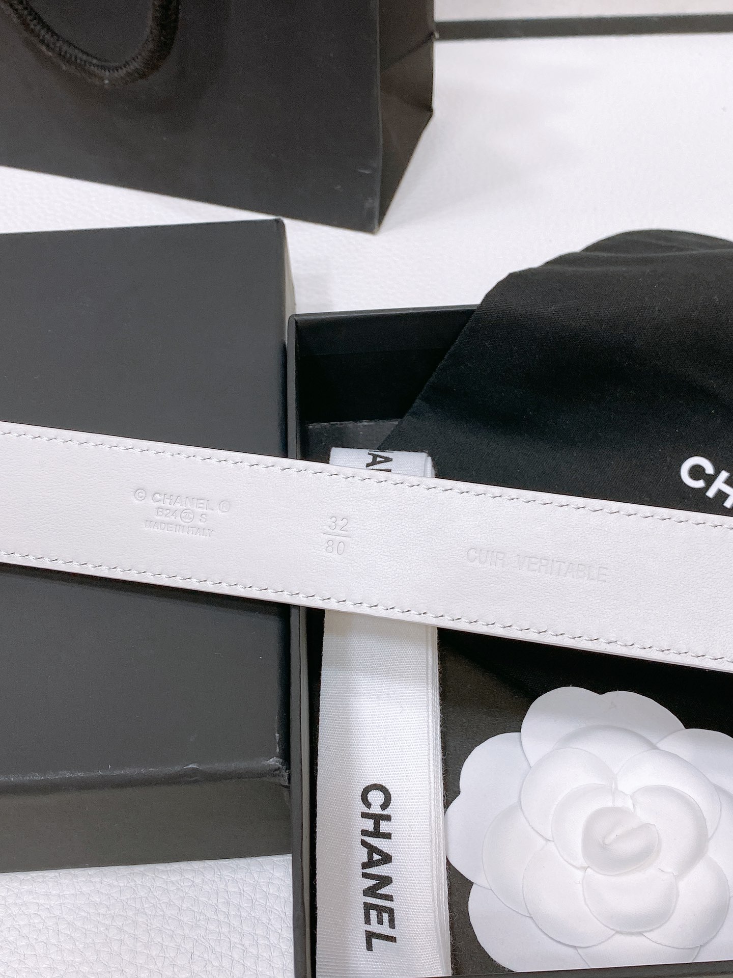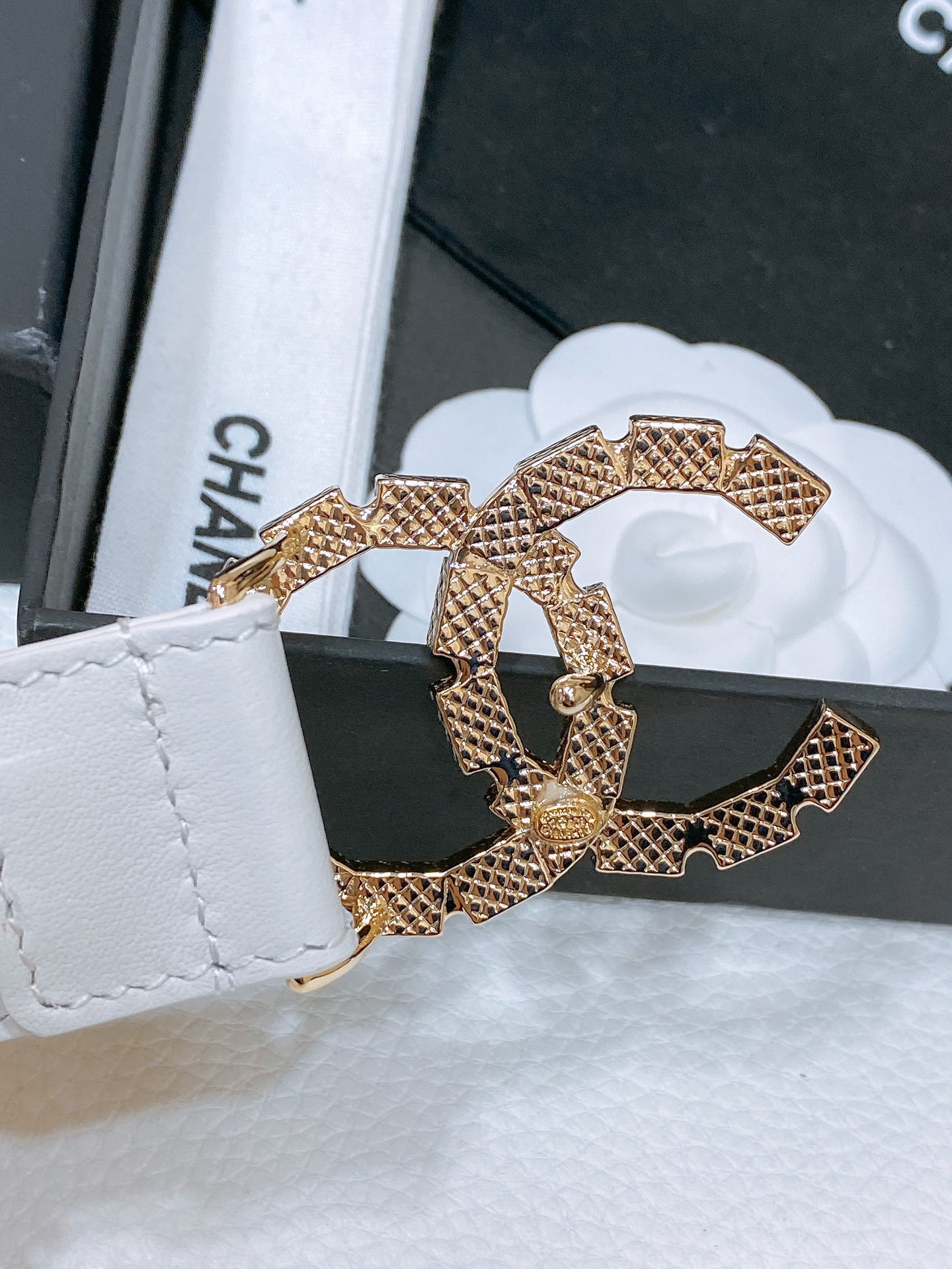 这款皮带是AAAAA 1:1 质量 (非常棒). 使用了和原版一模一样的材料. 商标部分也保持了和香奈儿/Chanel一样. 图片拍摄是实物皮带拍摄, 您所收到的实物保证和我们图片一模一样.