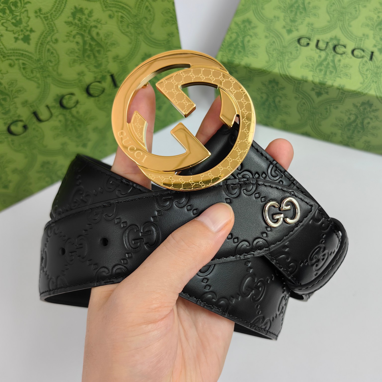 这款皮带是AAAAA 1:1 质量 (非常棒). 使用了和原版一模一样的材料. 商标部分也保持了和古奇/Gucci一样. 图片拍摄是实物皮带拍摄, 您所收到的实物保证和我们图片一模一样.