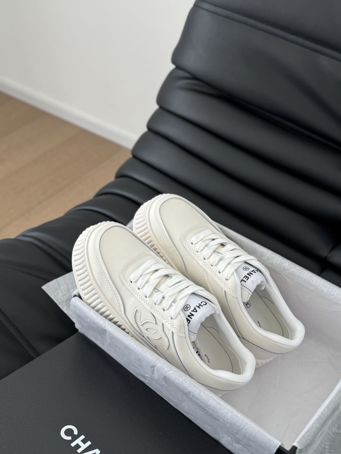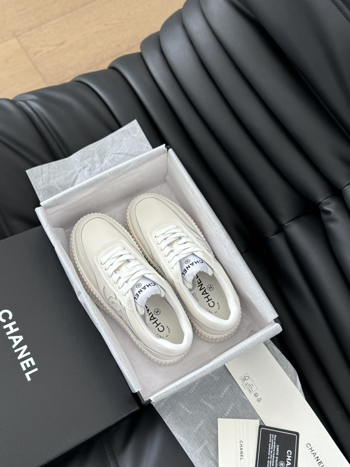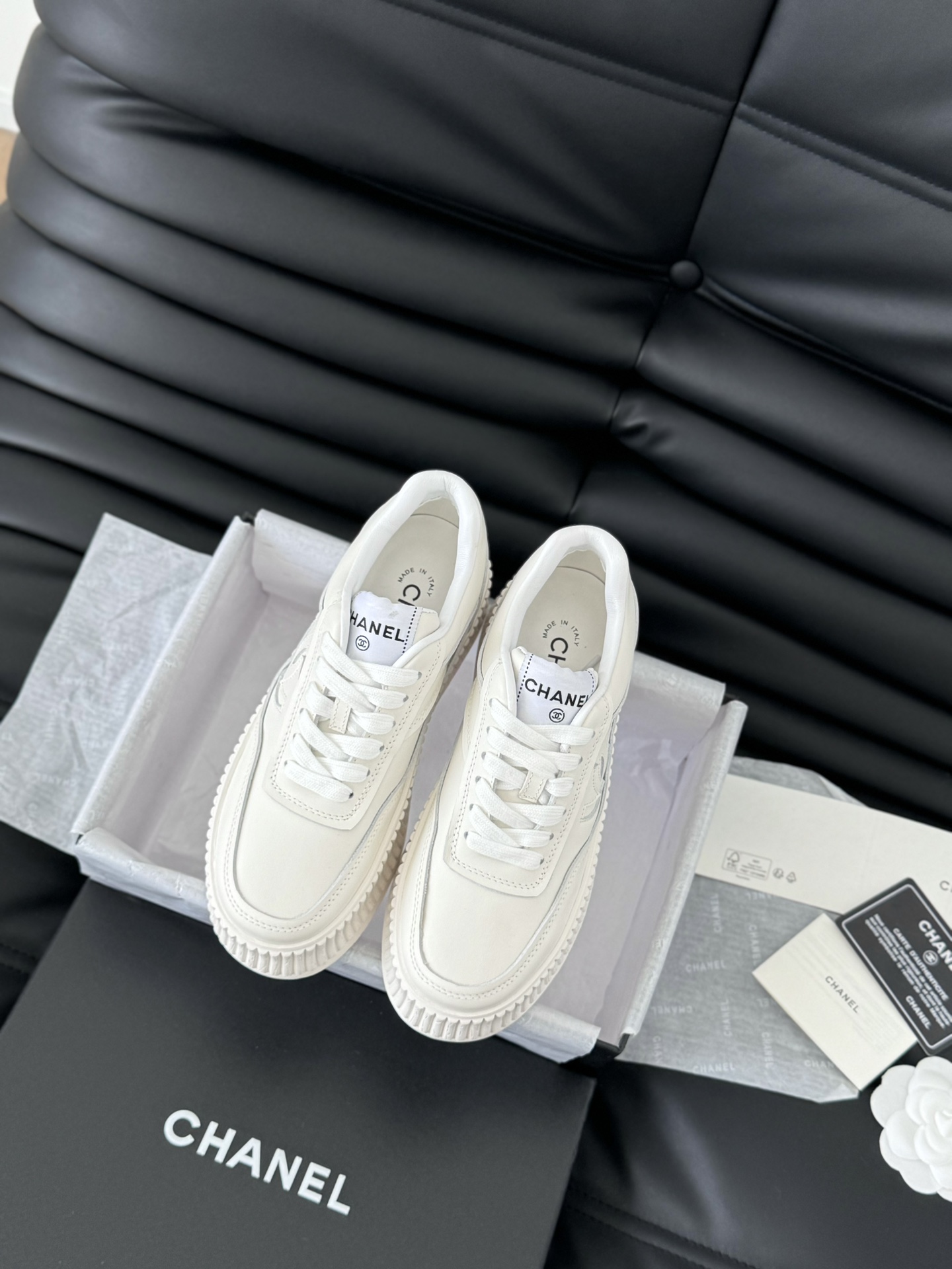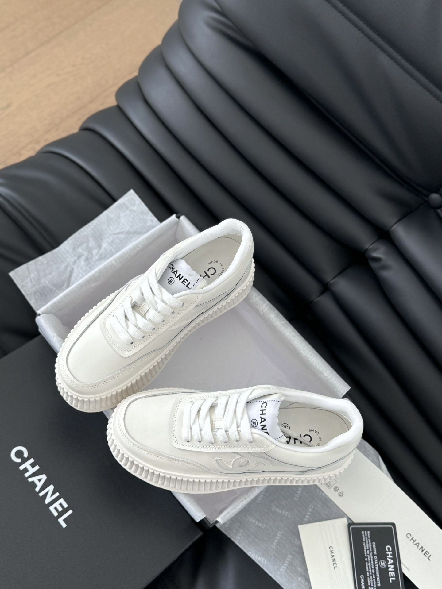 这款鞋子是AAAAA 1:1 质量 (非常棒). 使用了和原版一模一样的材料. 商标部分也保持了和香奈儿/Chanel一样. 图片拍摄是实物鞋子拍摄, 您所收到的实物保证和我们图片一模一样.