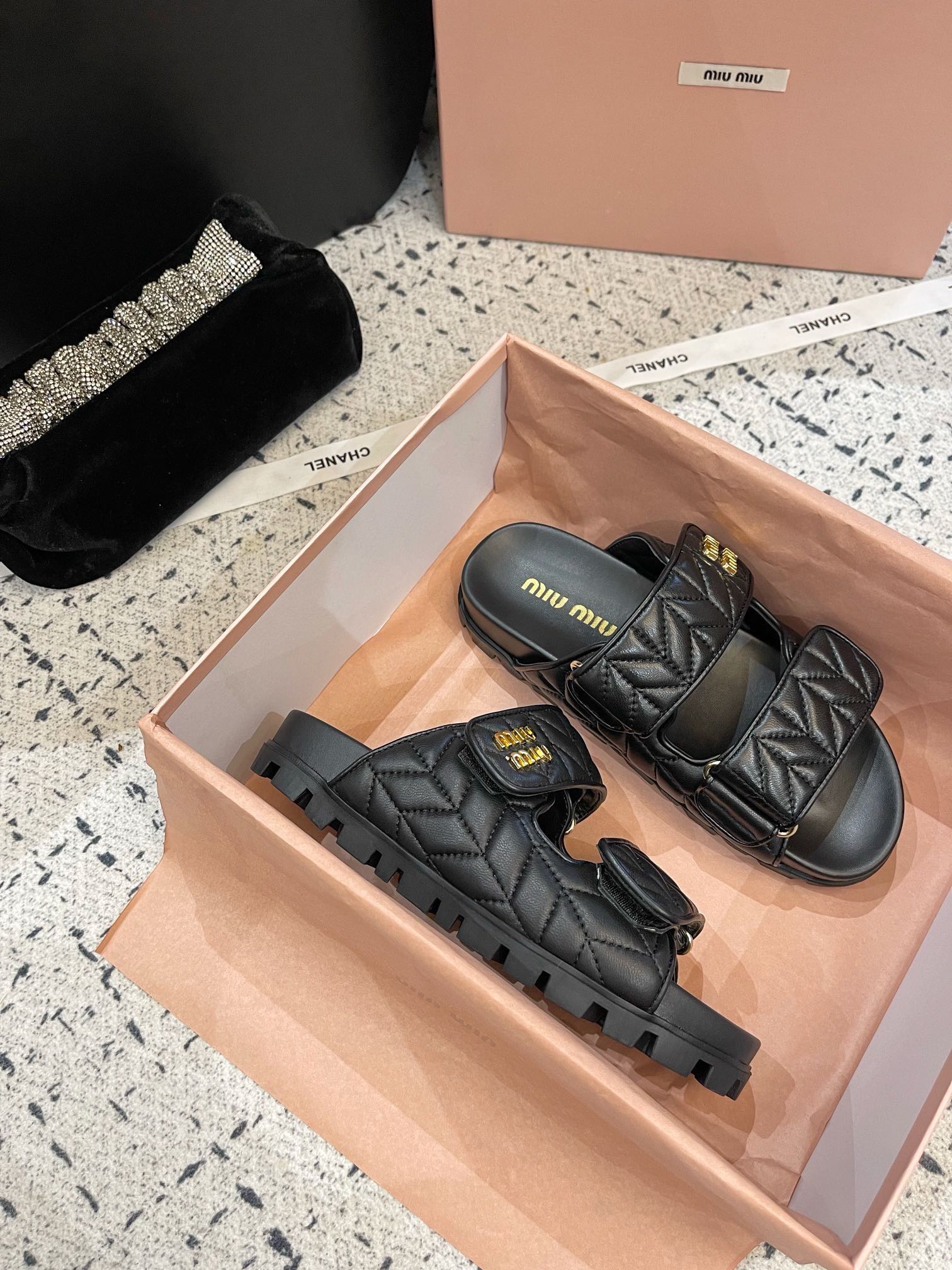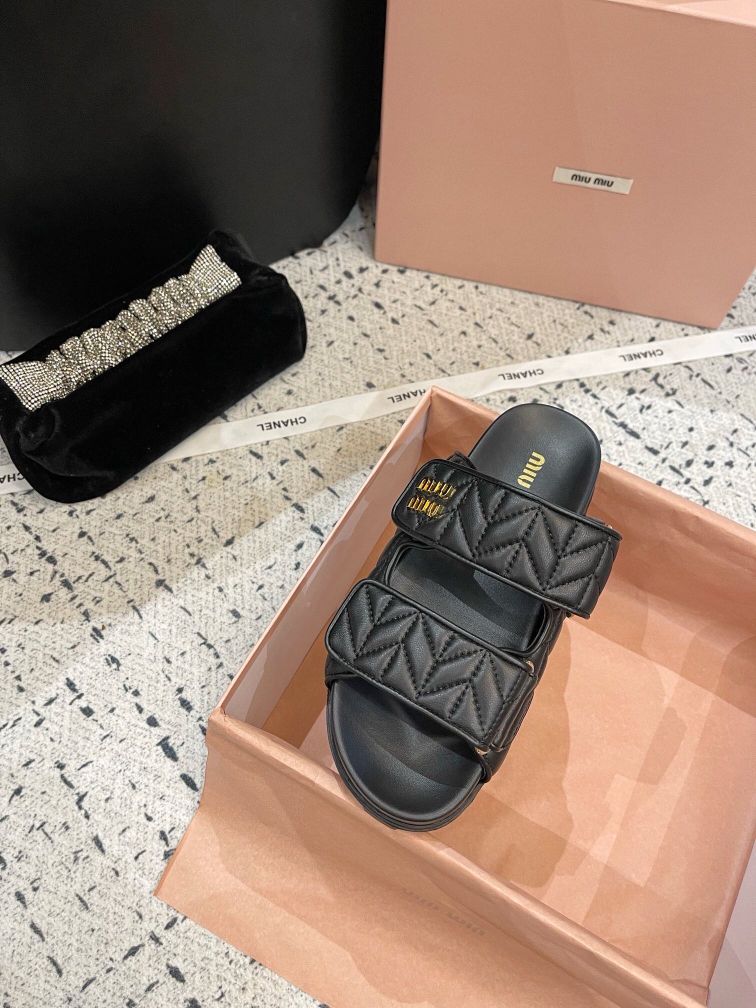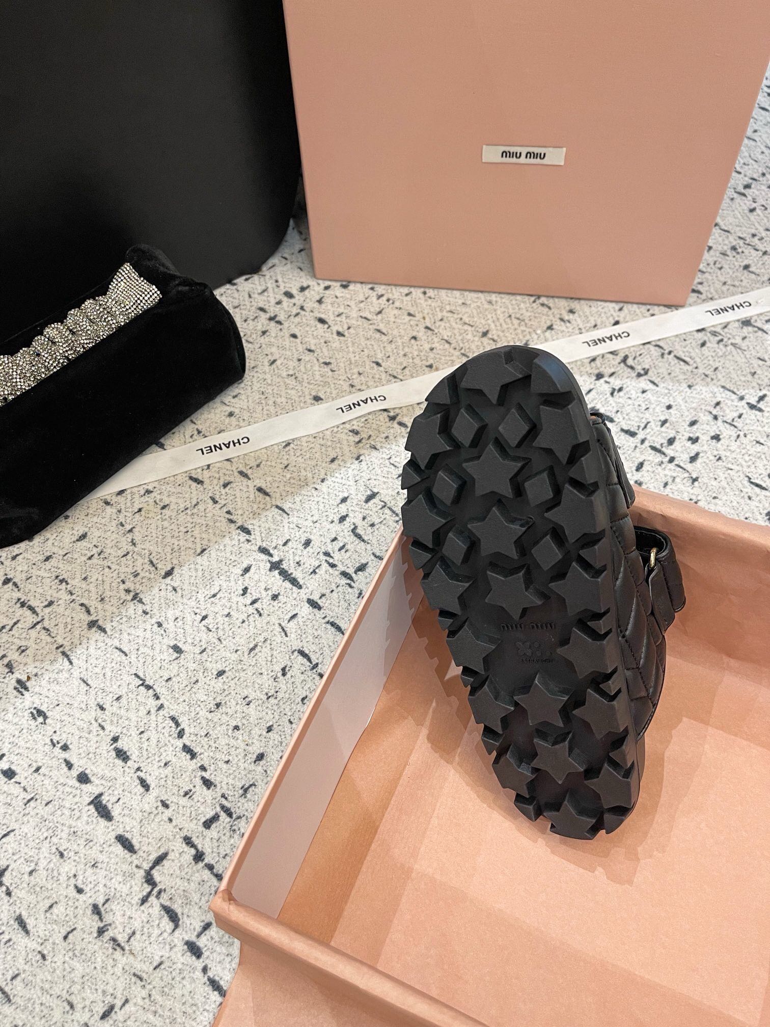 这款鞋子是AAAAA 1:1 质量 (非常棒). 使用了和原版一模一样的材料. 商标部分也保持了和缪缪/Miu Miu一样. 图片拍摄是实物鞋子拍摄, 您所收到的实物保证和我们图片一模一样.