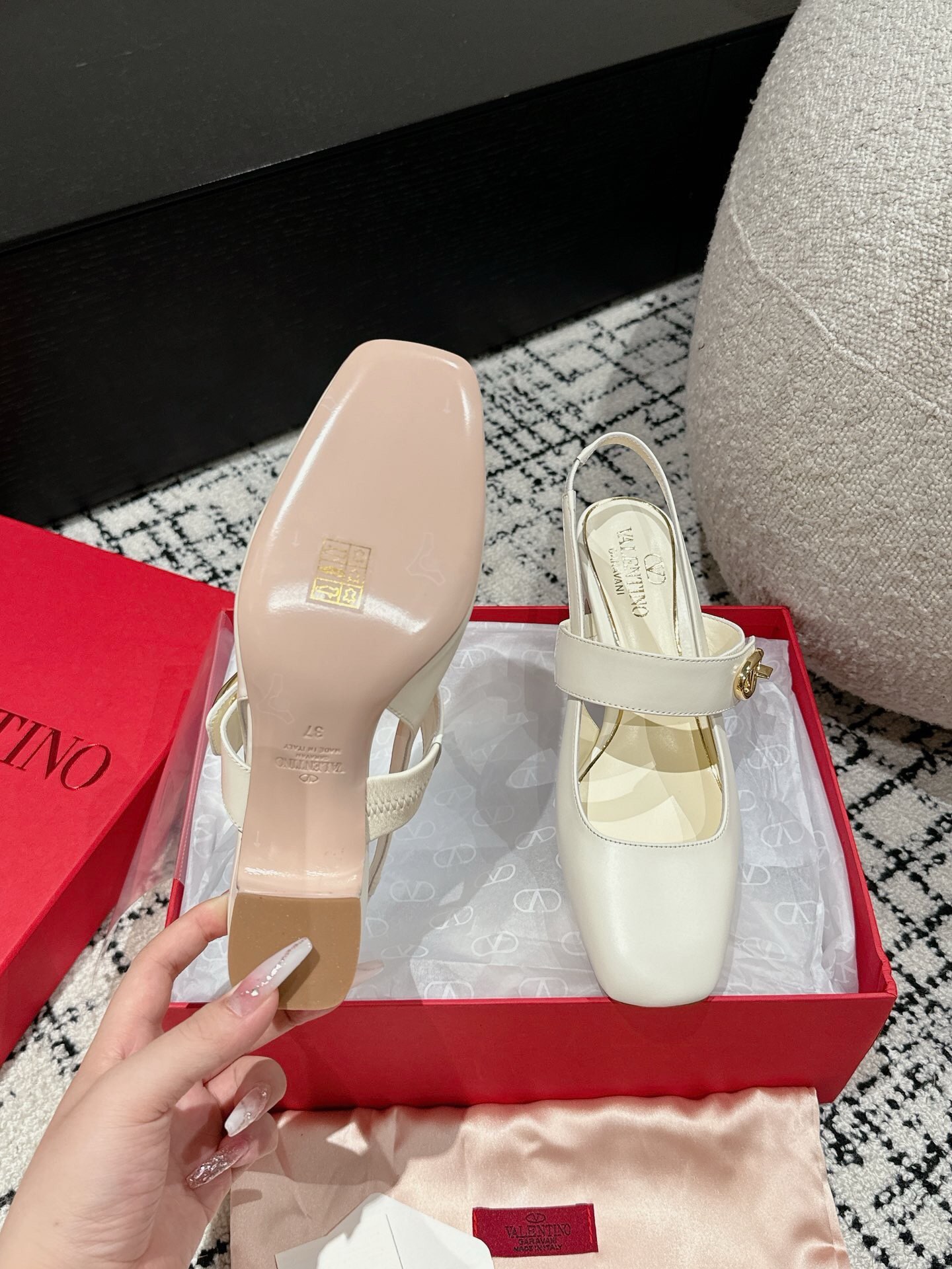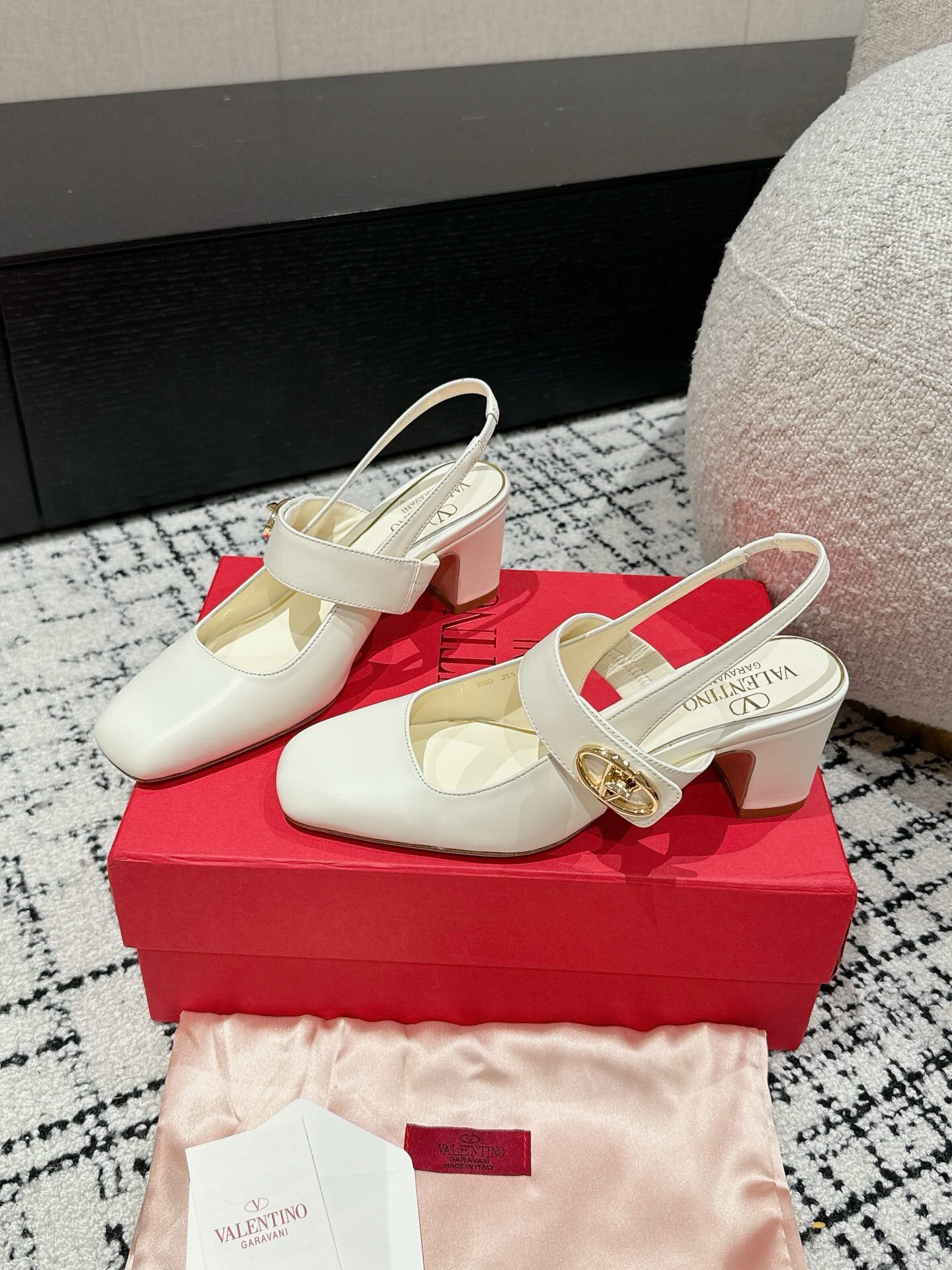 这款鞋子是AAAAA 1:1 质量 (非常棒). 使用了和原版一模一样的材料. 商标部分也保持了和华伦天奴/Valentino一样. 图片拍摄是实物鞋子拍摄, 您所收到的实物保证和我们图片一模一样.