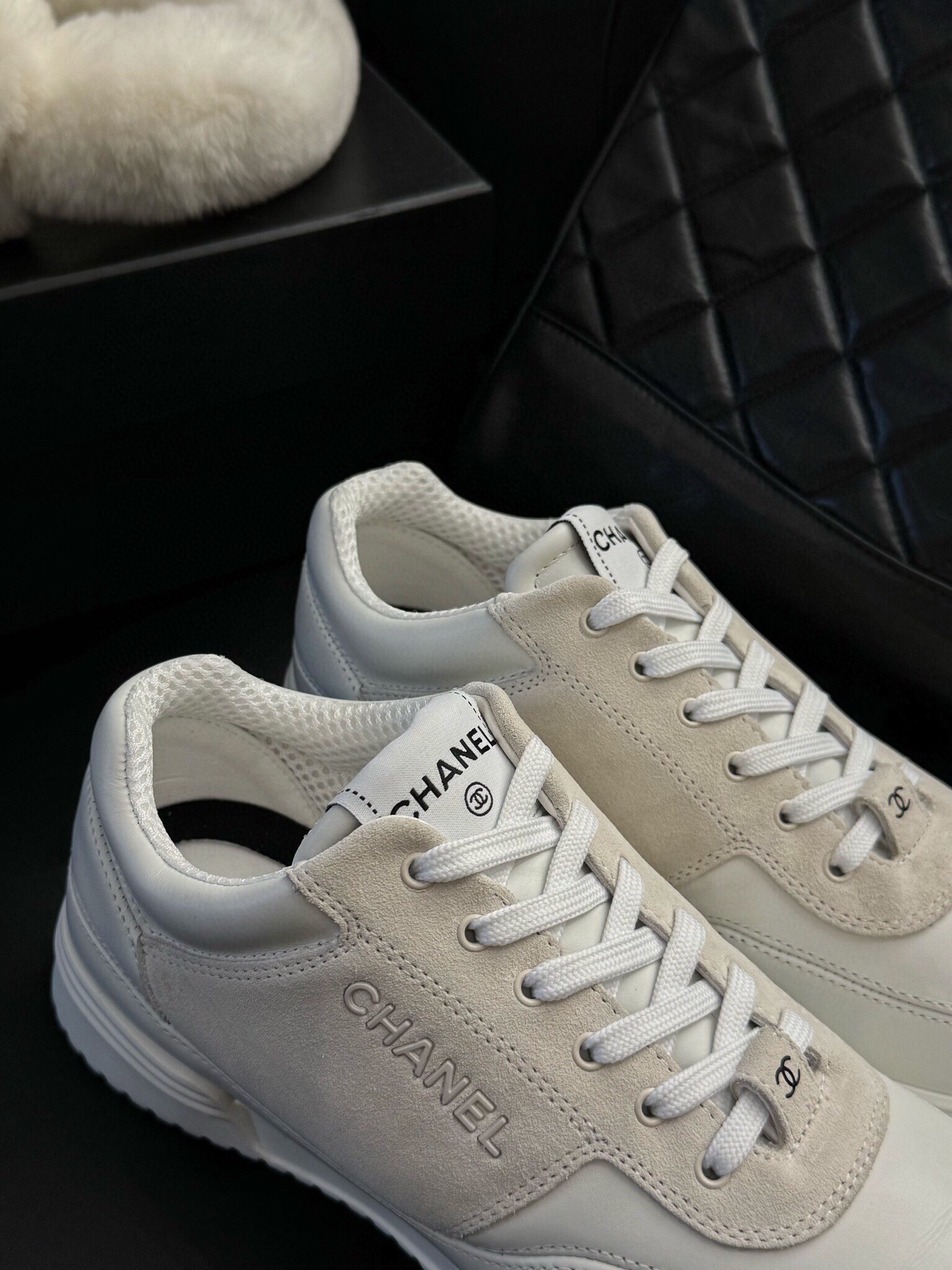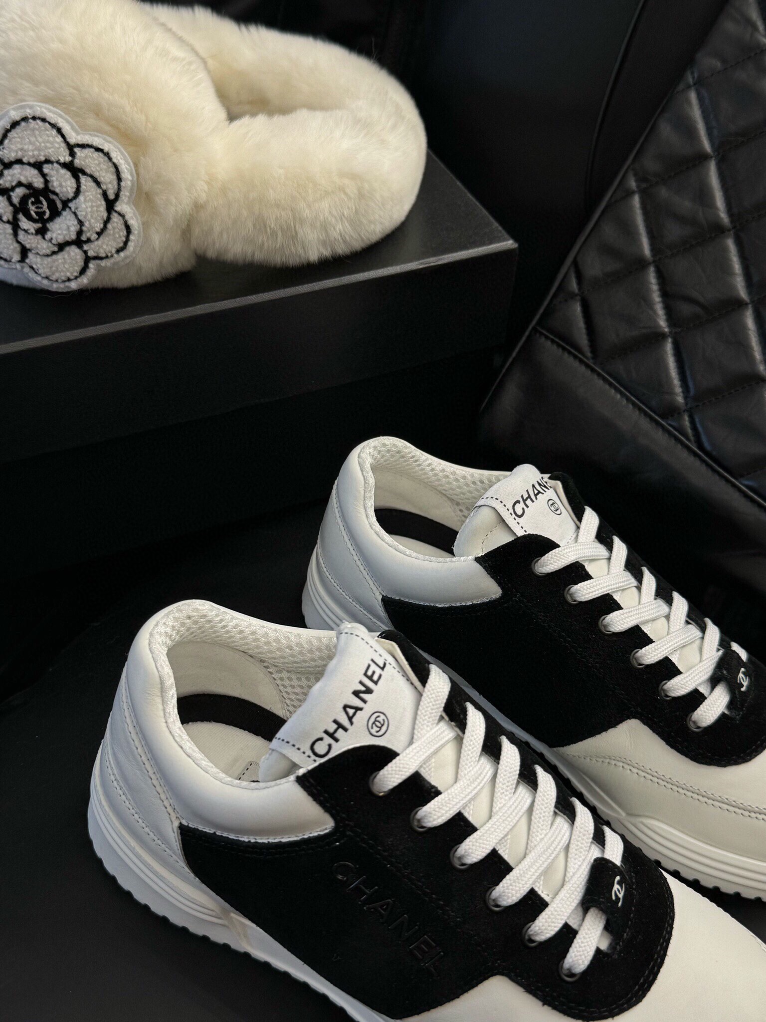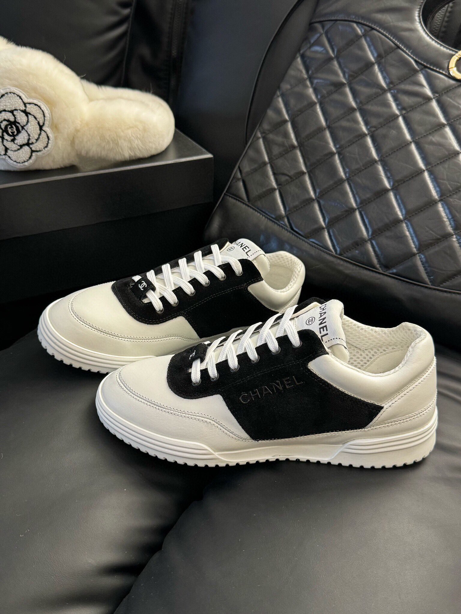 这款鞋子是AAAAA 1:1 质量 (非常棒). 使用了和原版一模一样的材料. 商标部分也保持了和香奈儿/Chanel一样. 图片拍摄是实物鞋子拍摄, 您所收到的实物保证和我们图片一模一样.