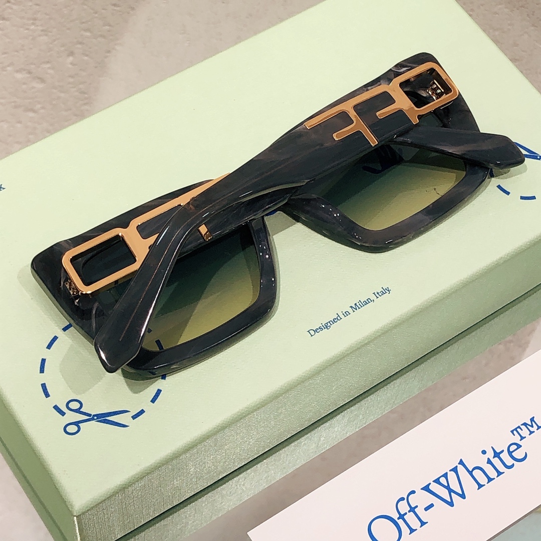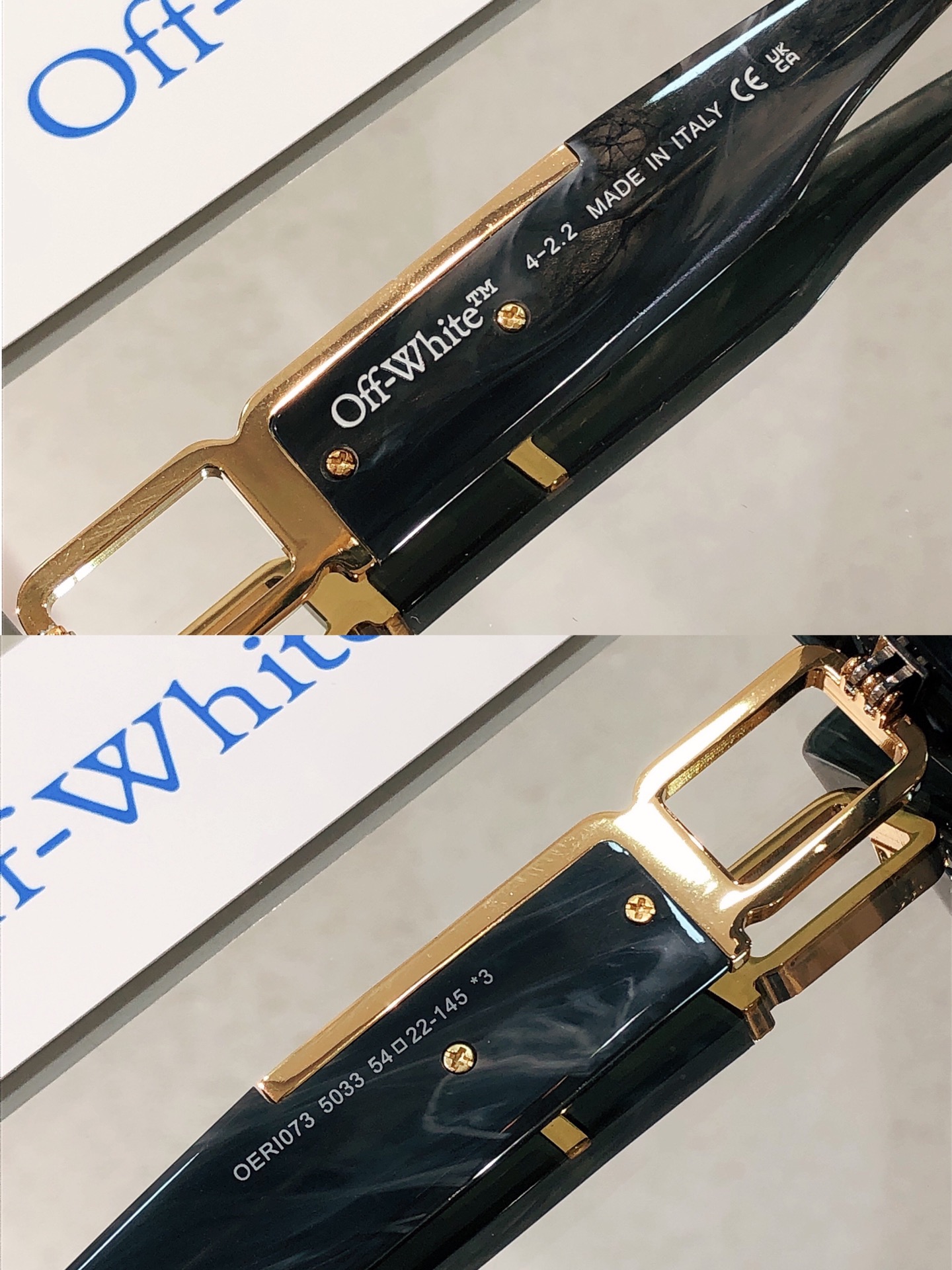 这款太阳眼镜是AAAAA 1:1 质量 (非常棒). 使用了和原版一模一样的材料. 商标部分也保持了和OFF WHITE一样. 图片拍摄是实物太阳眼镜拍摄, 您所收到的实物保证和我们图片一模一样.