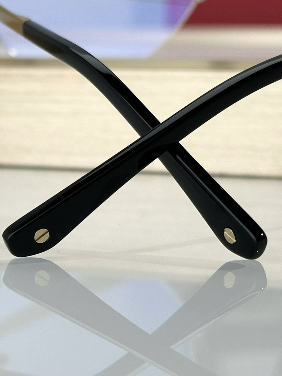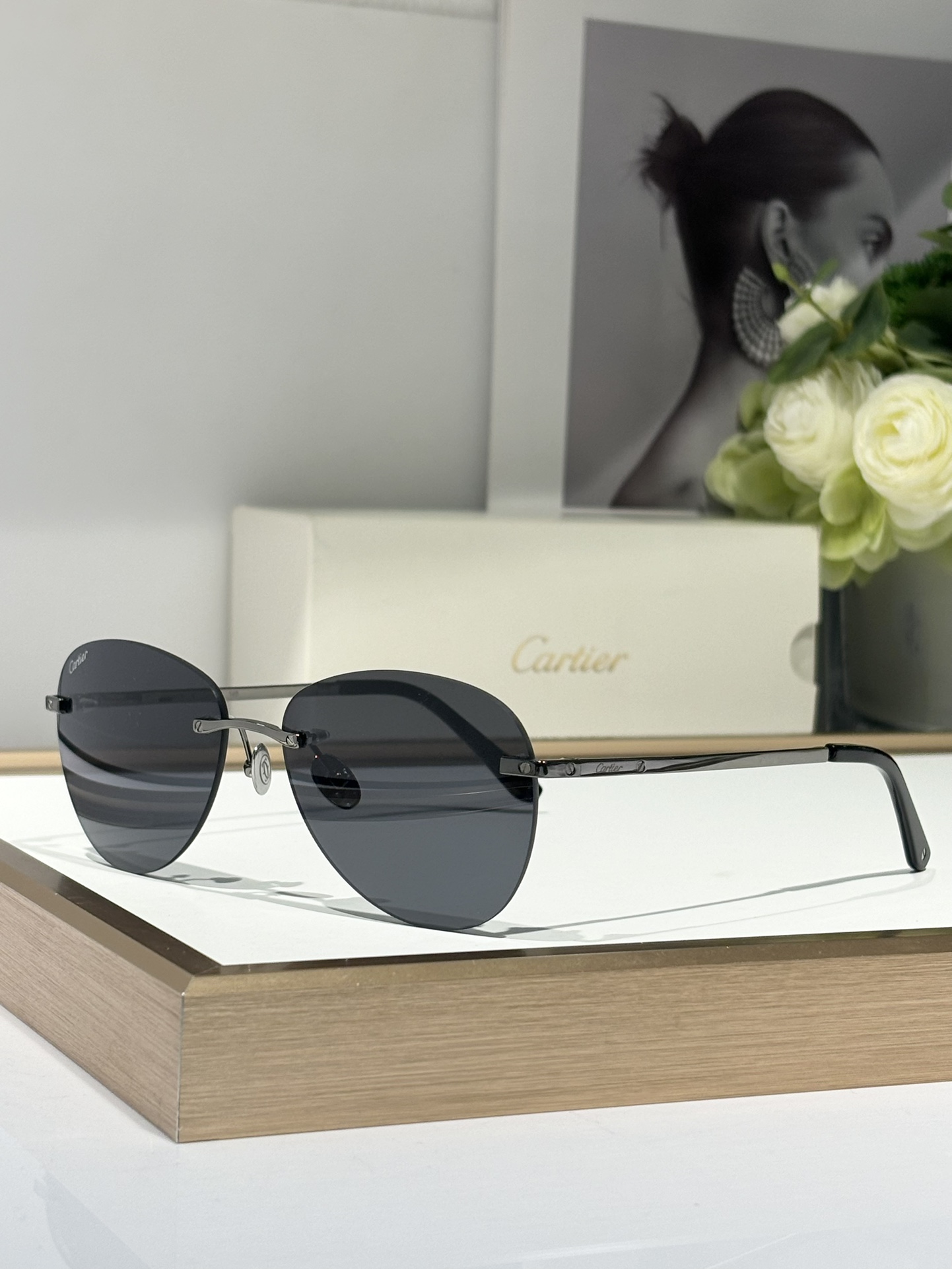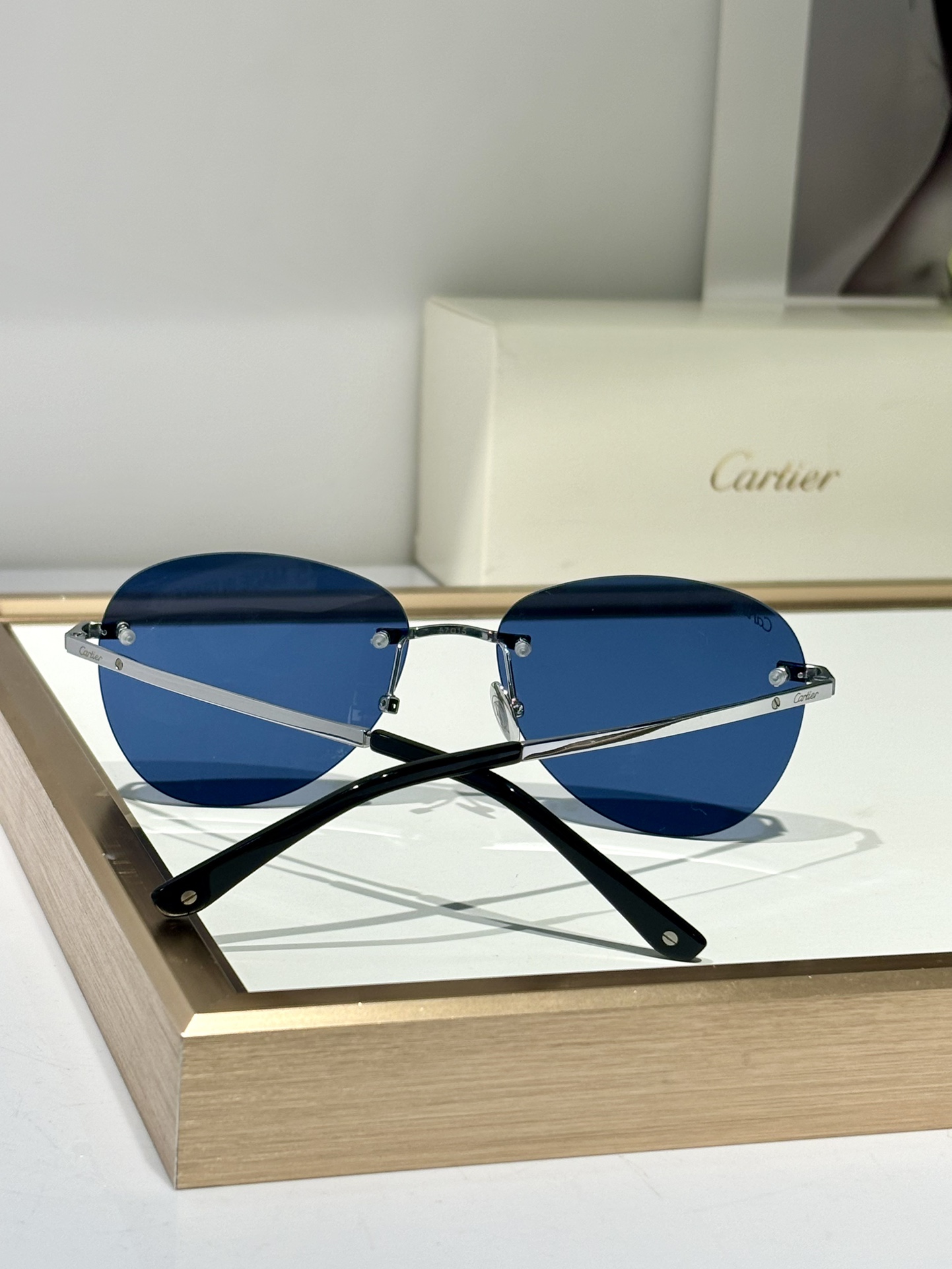 这款太阳眼镜是AAAAA 1:1 质量 (非常棒). 使用了和原版一模一样的材料. 商标部分也保持了和卡地亚/Cartier一样. 图片拍摄是实物太阳眼镜拍摄, 您所收到的实物保证和我们图片一模一样.