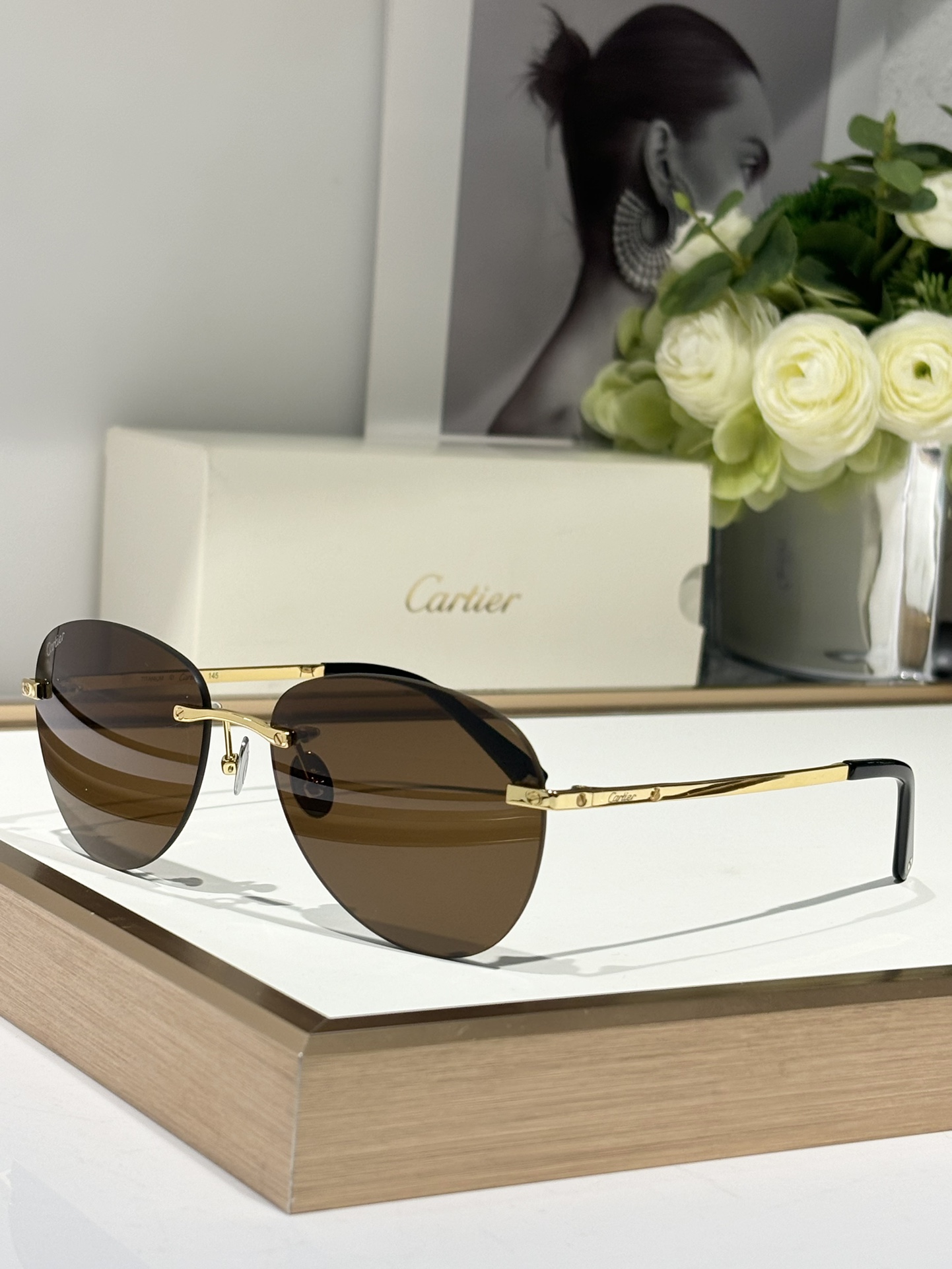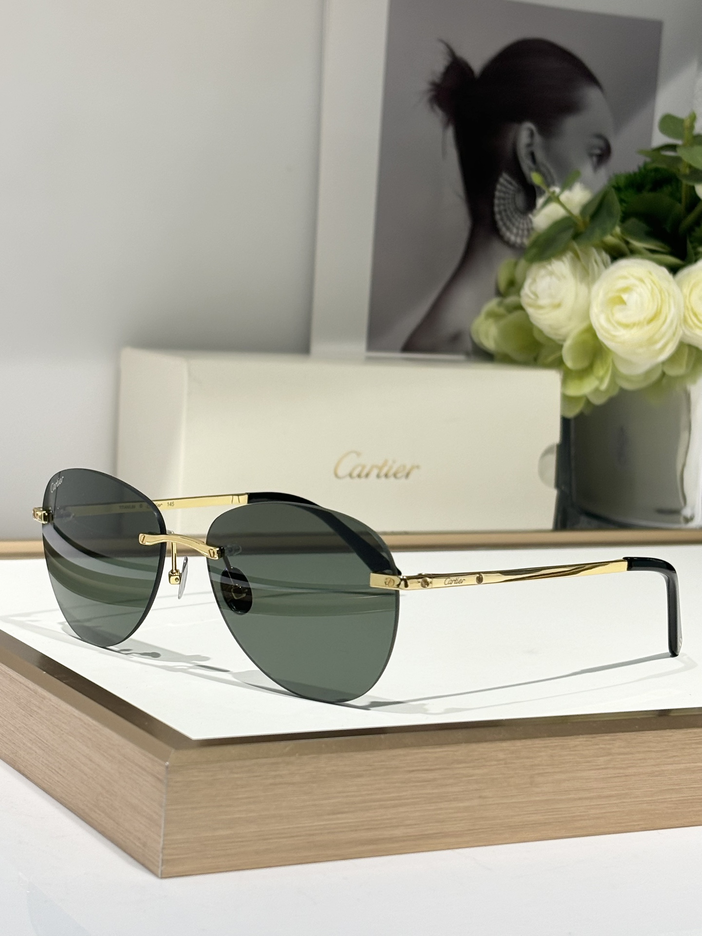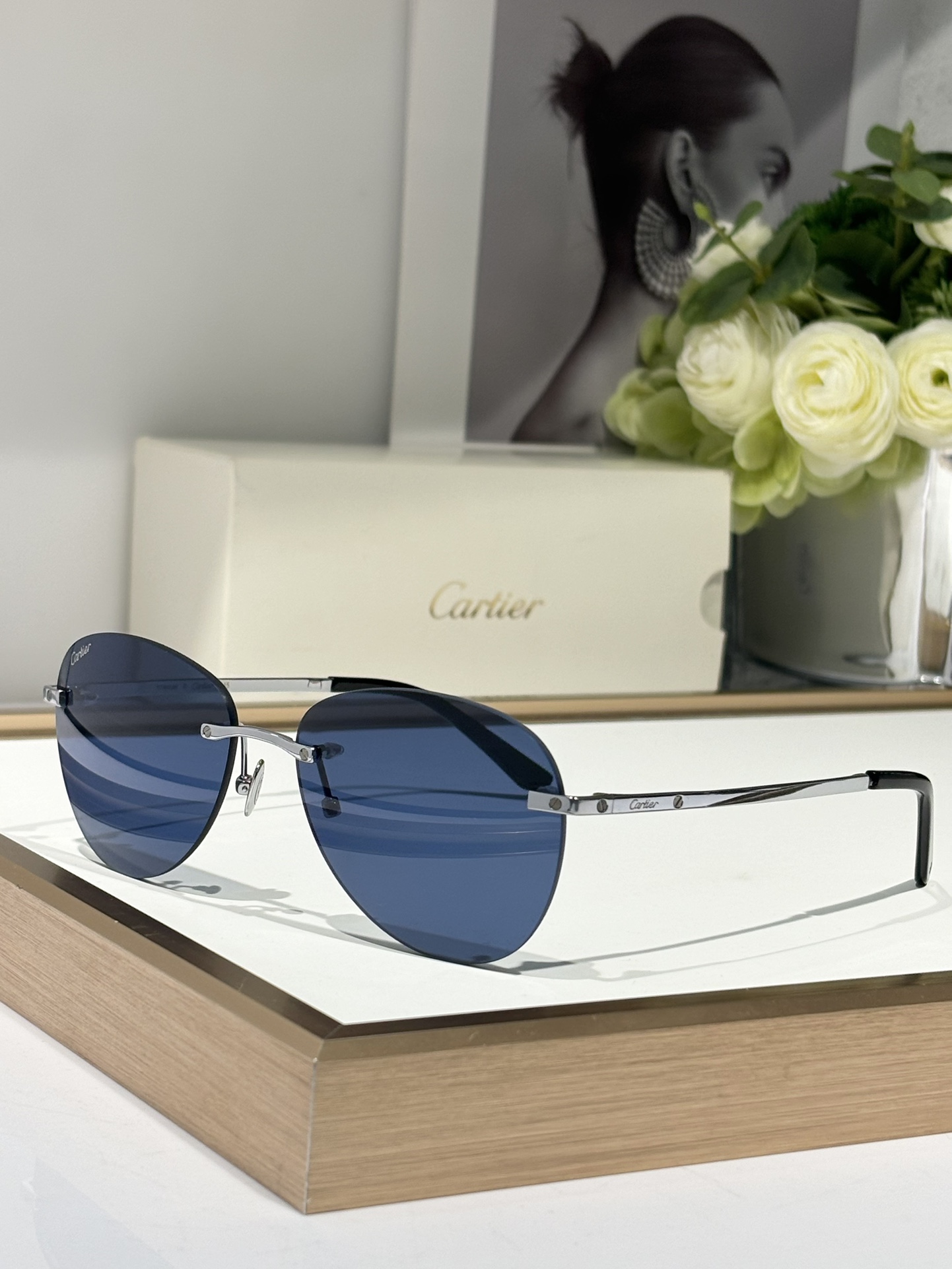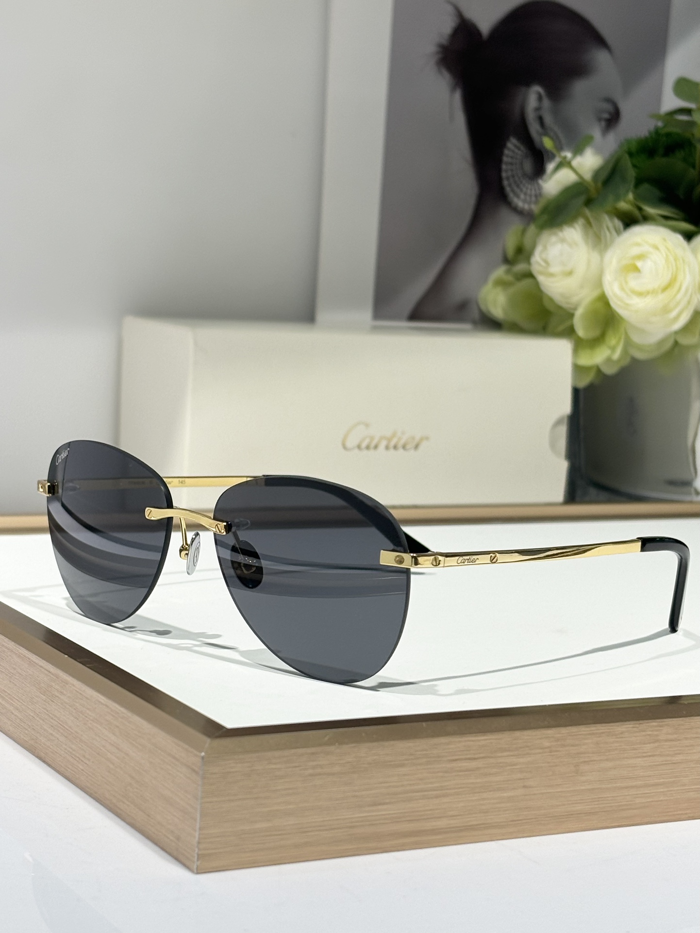 这款太阳眼镜是AAAAA 1:1 质量 (非常棒). 使用了和原版一模一样的材料. 商标部分也保持了和卡地亚/Cartier一样. 图片拍摄是实物太阳眼镜拍摄, 您所收到的实物保证和我们图片一模一样.