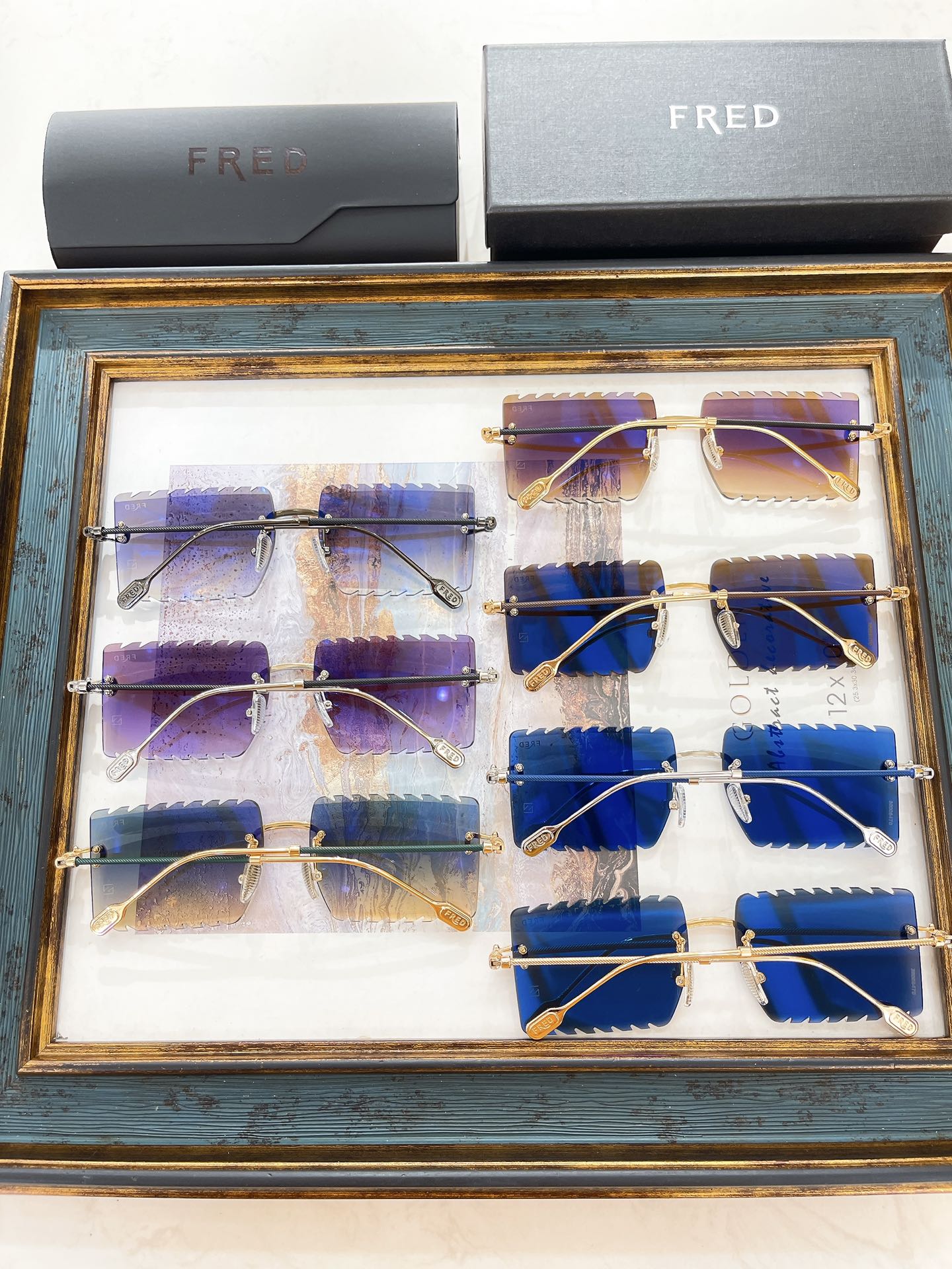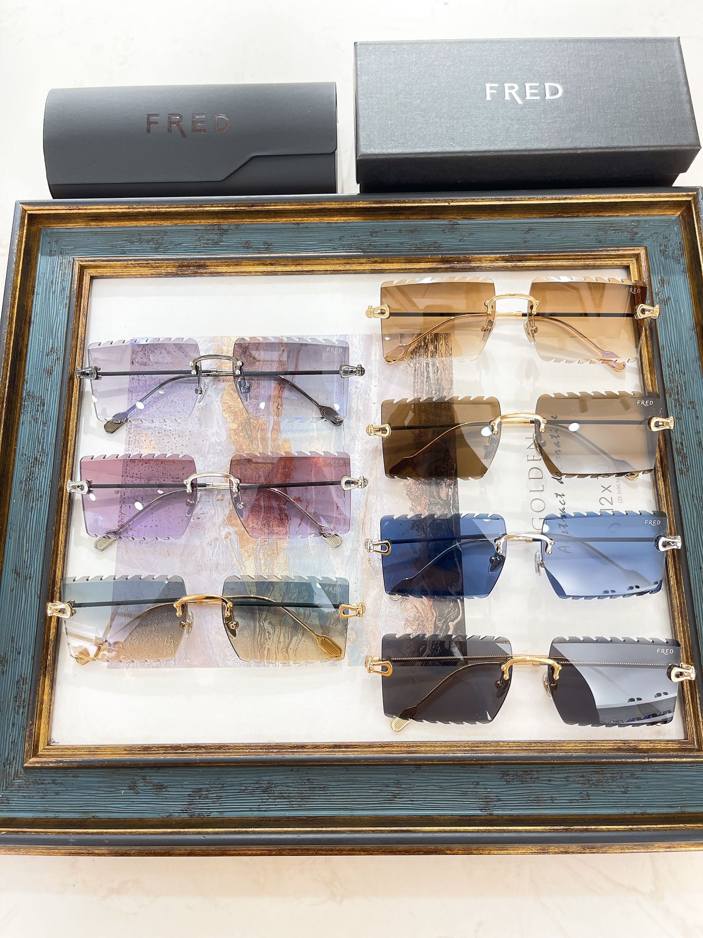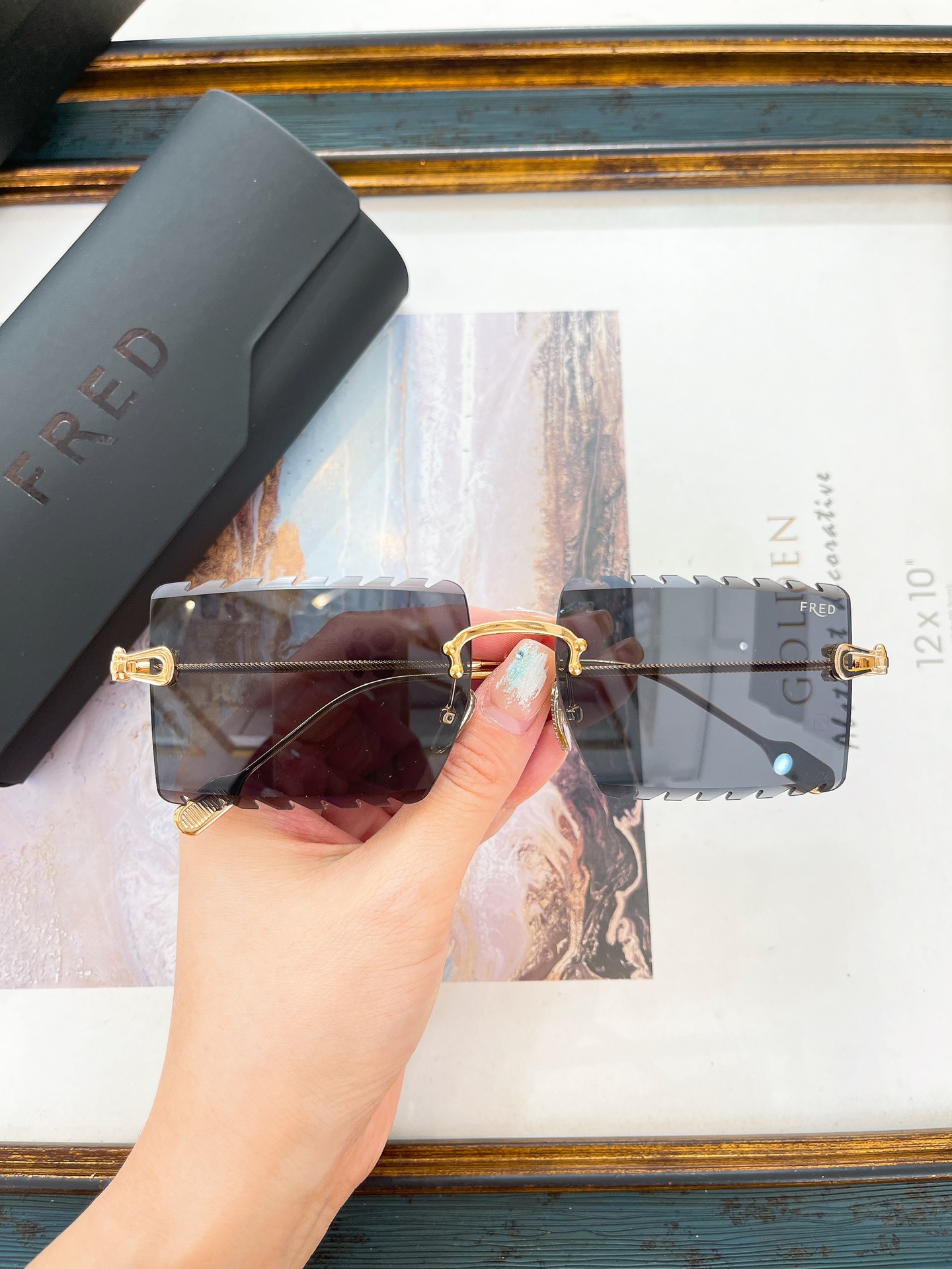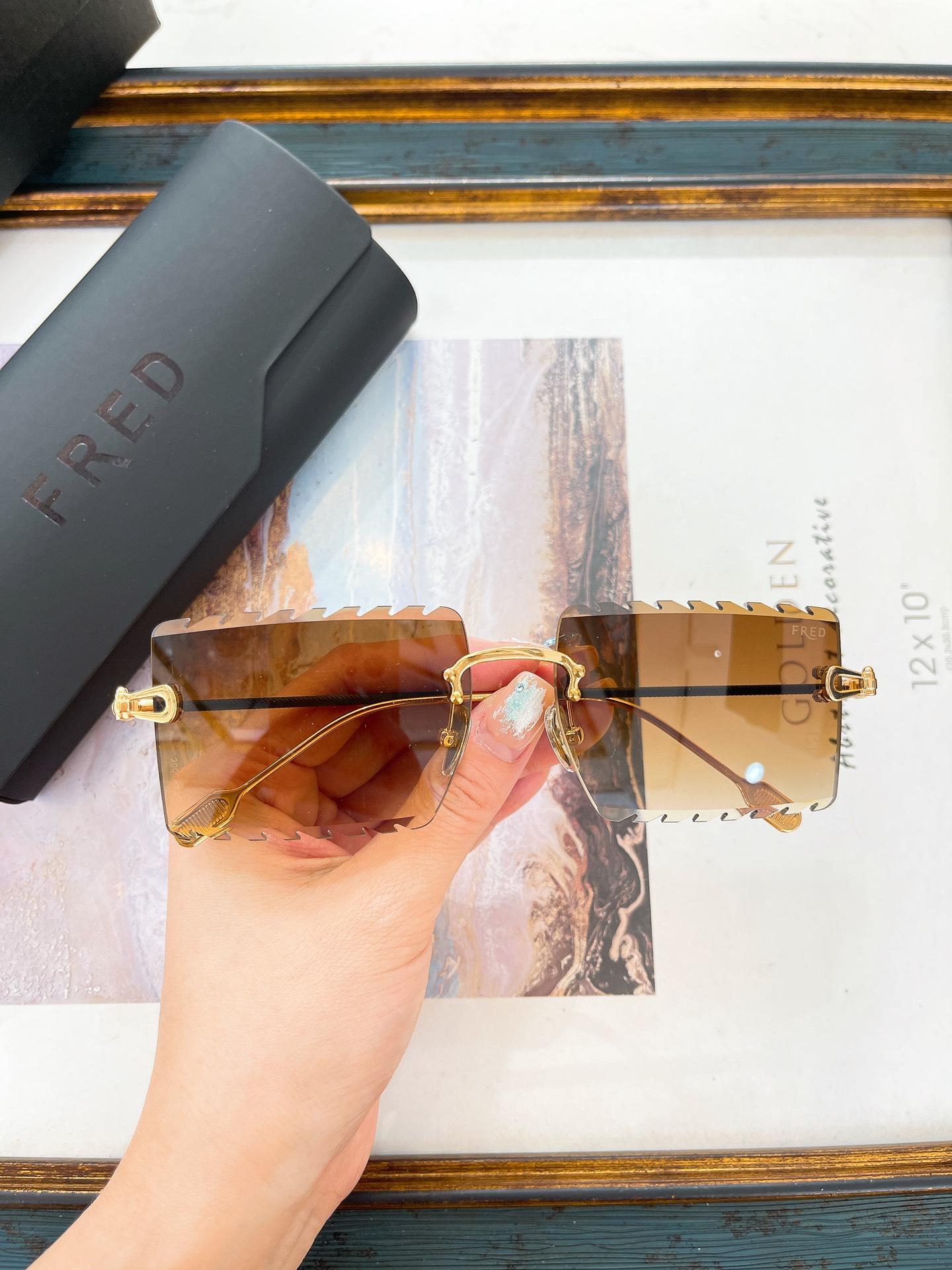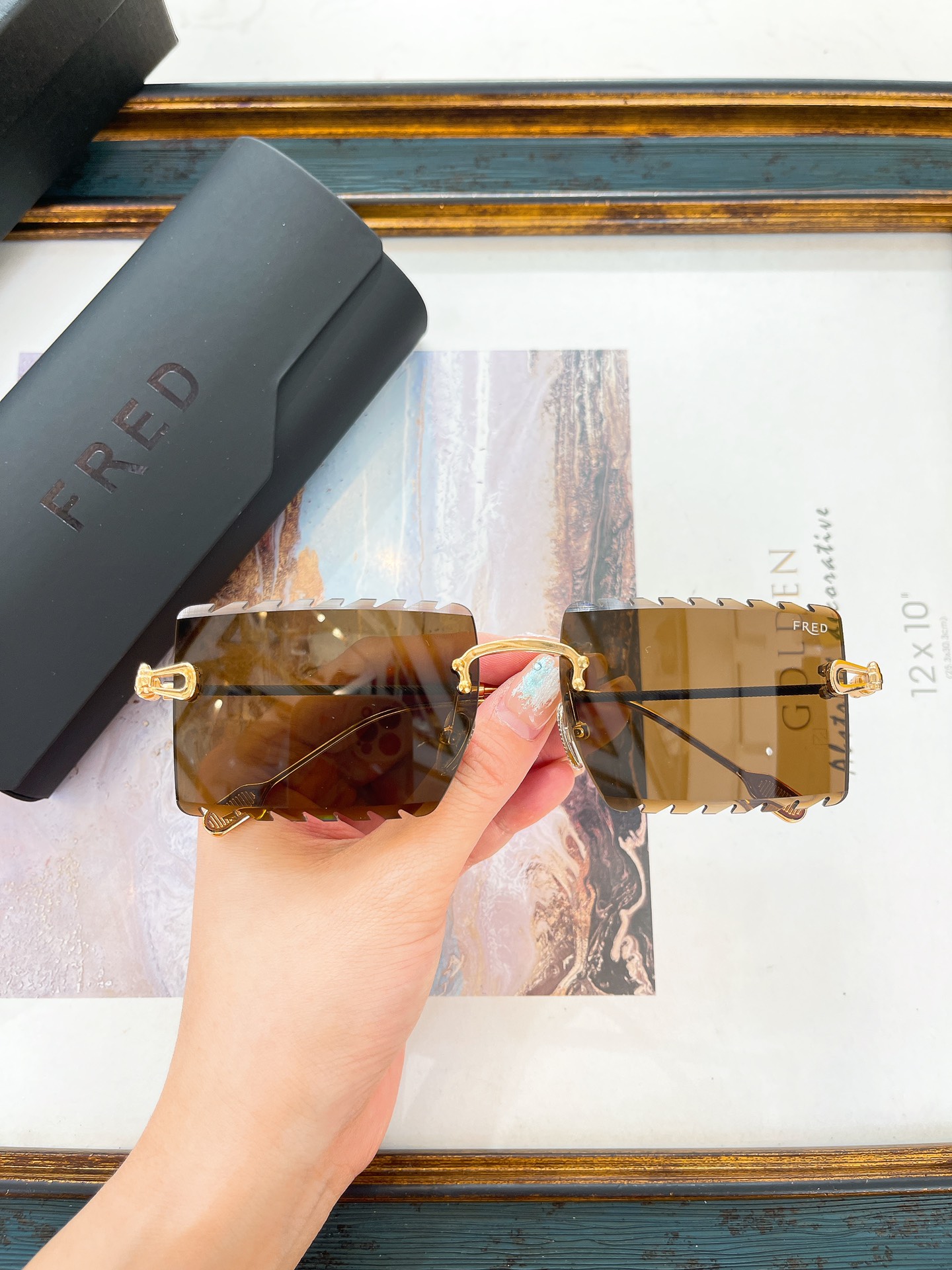 这款太阳眼镜是AAAAA 1:1 质量 (非常棒). 使用了和原版一模一样的材料. 商标部分也保持了和Fred一样. 图片拍摄是实物太阳眼镜拍摄, 您所收到的实物保证和我们图片一模一样.
