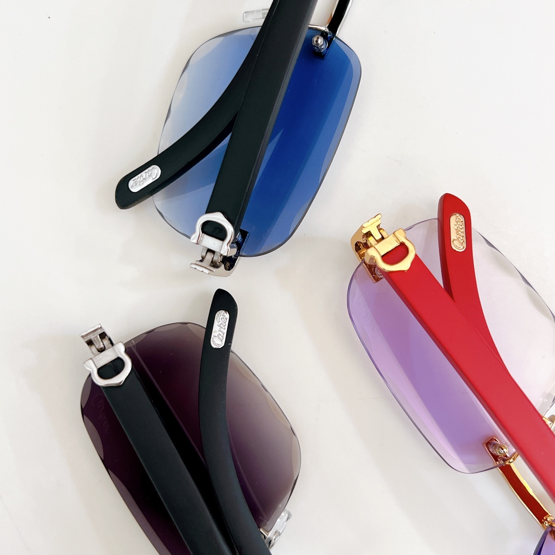 这款太阳眼镜是AAAAA 1:1 质量 (非常棒). 使用了和原版一模一样的材料. 商标部分也保持了和卡地亚/Cartier一样. 图片拍摄是实物太阳眼镜拍摄, 您所收到的实物保证和我们图片一模一样.