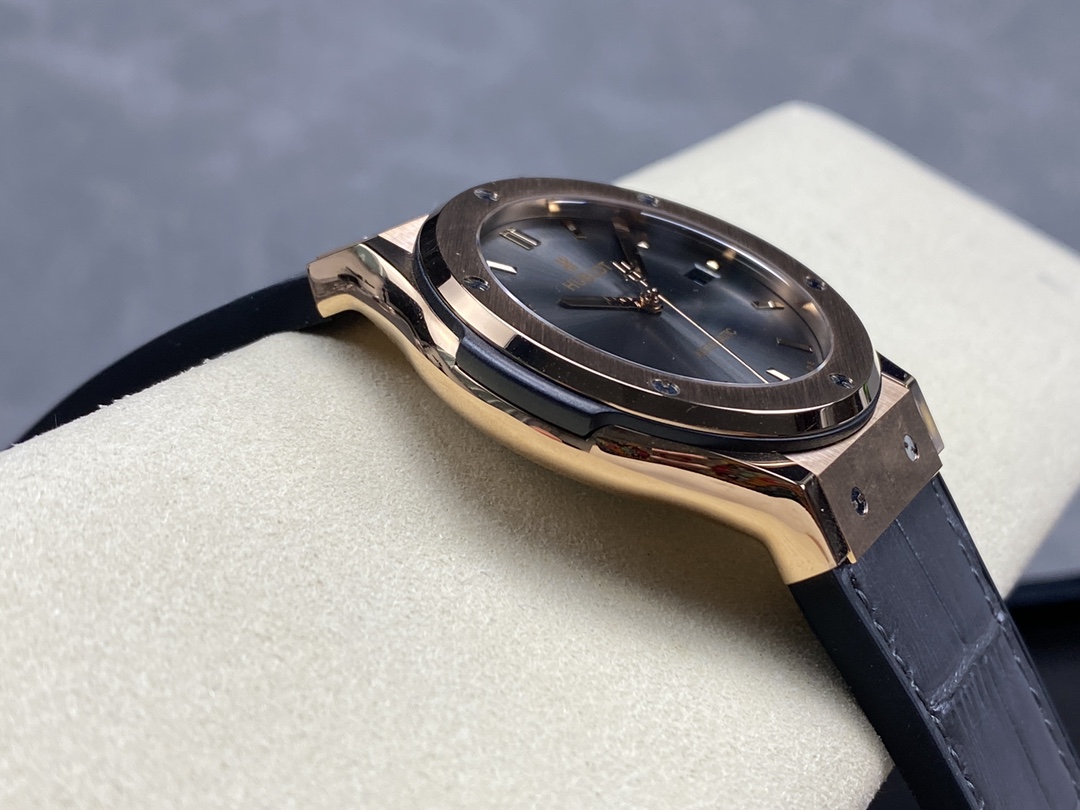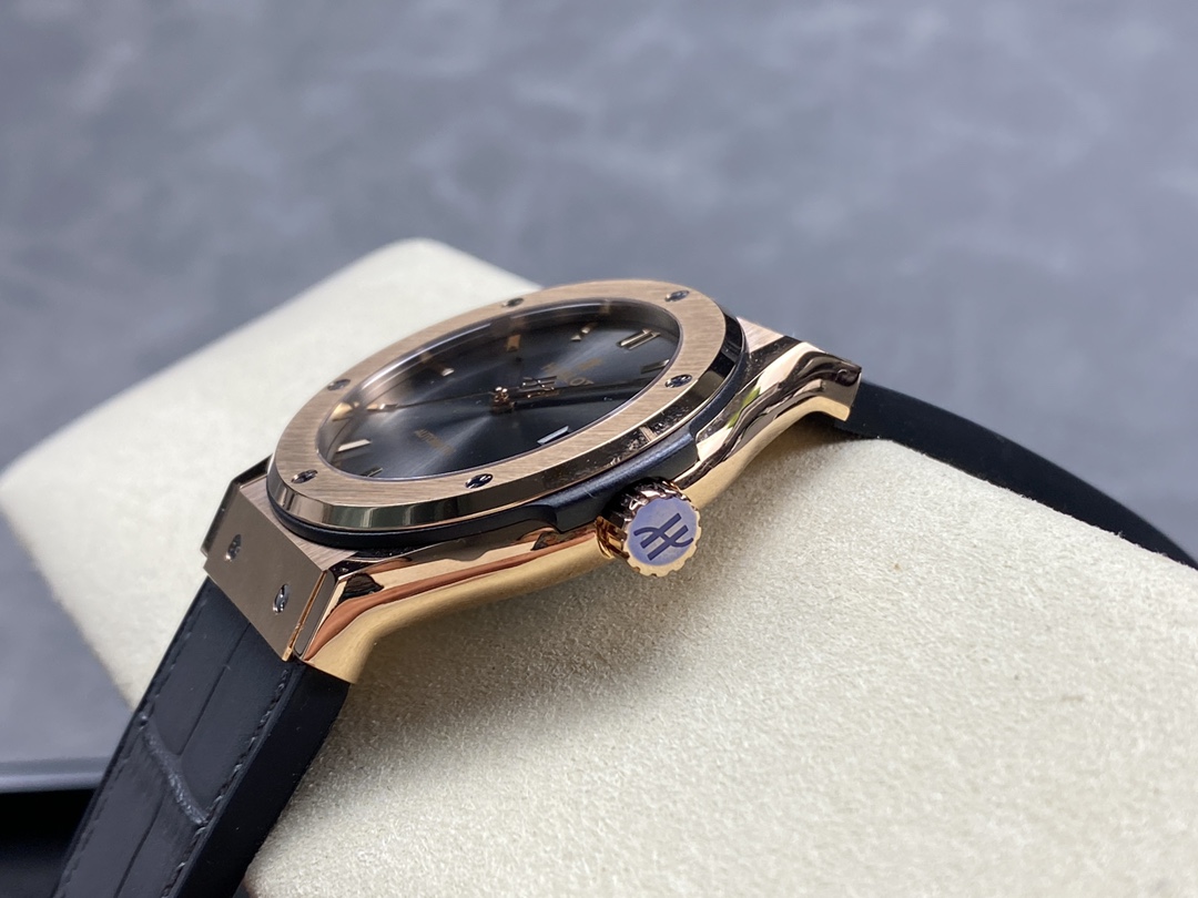 这款手表是AAAAA 1:1 质量 (非常棒). 使用了和原版一模一样的材料. 商标部分也保持了和Hublot一样. 图片拍摄是实物手表拍摄, 您所收到的实物保证和我们图片一模一样.