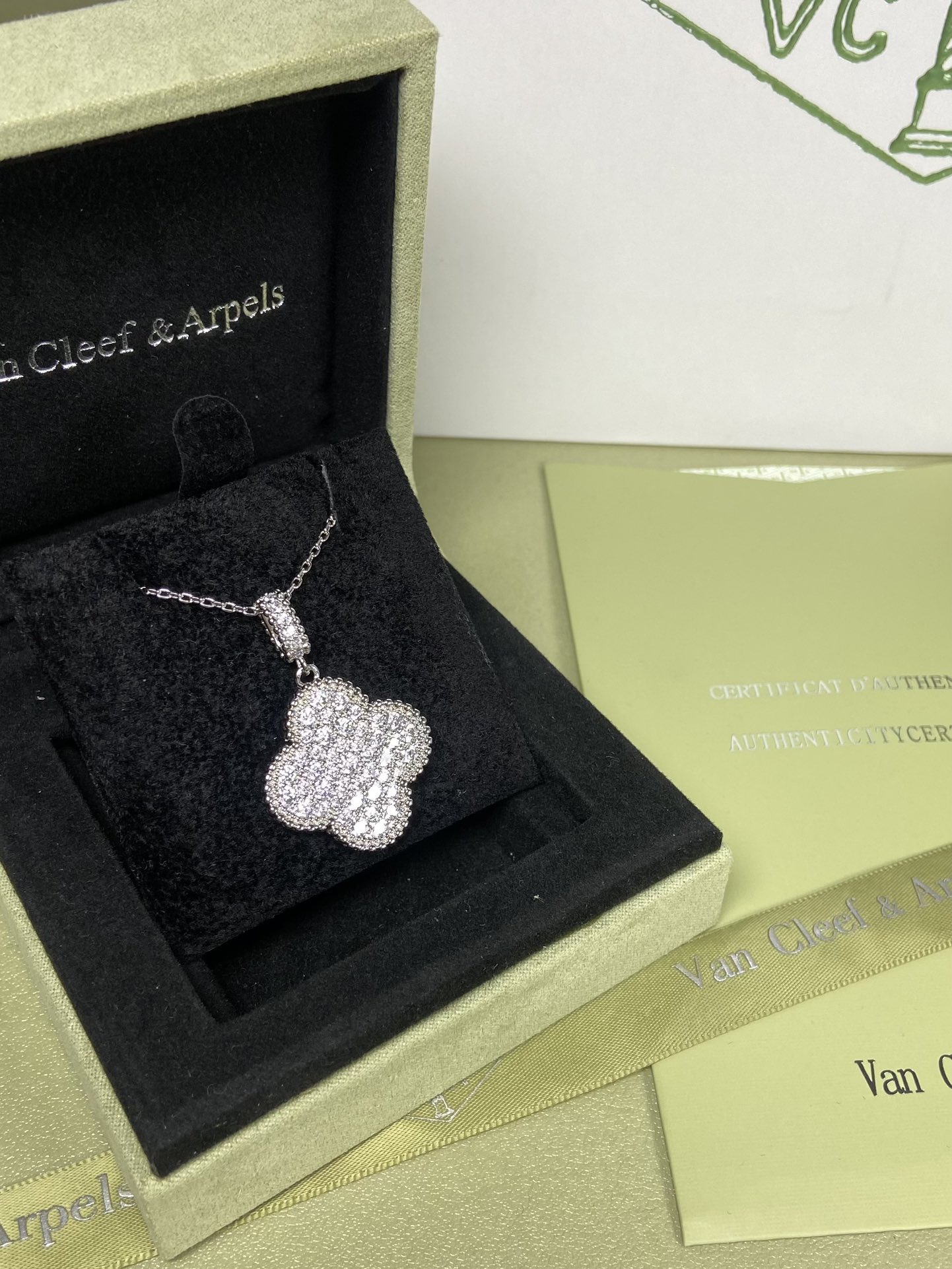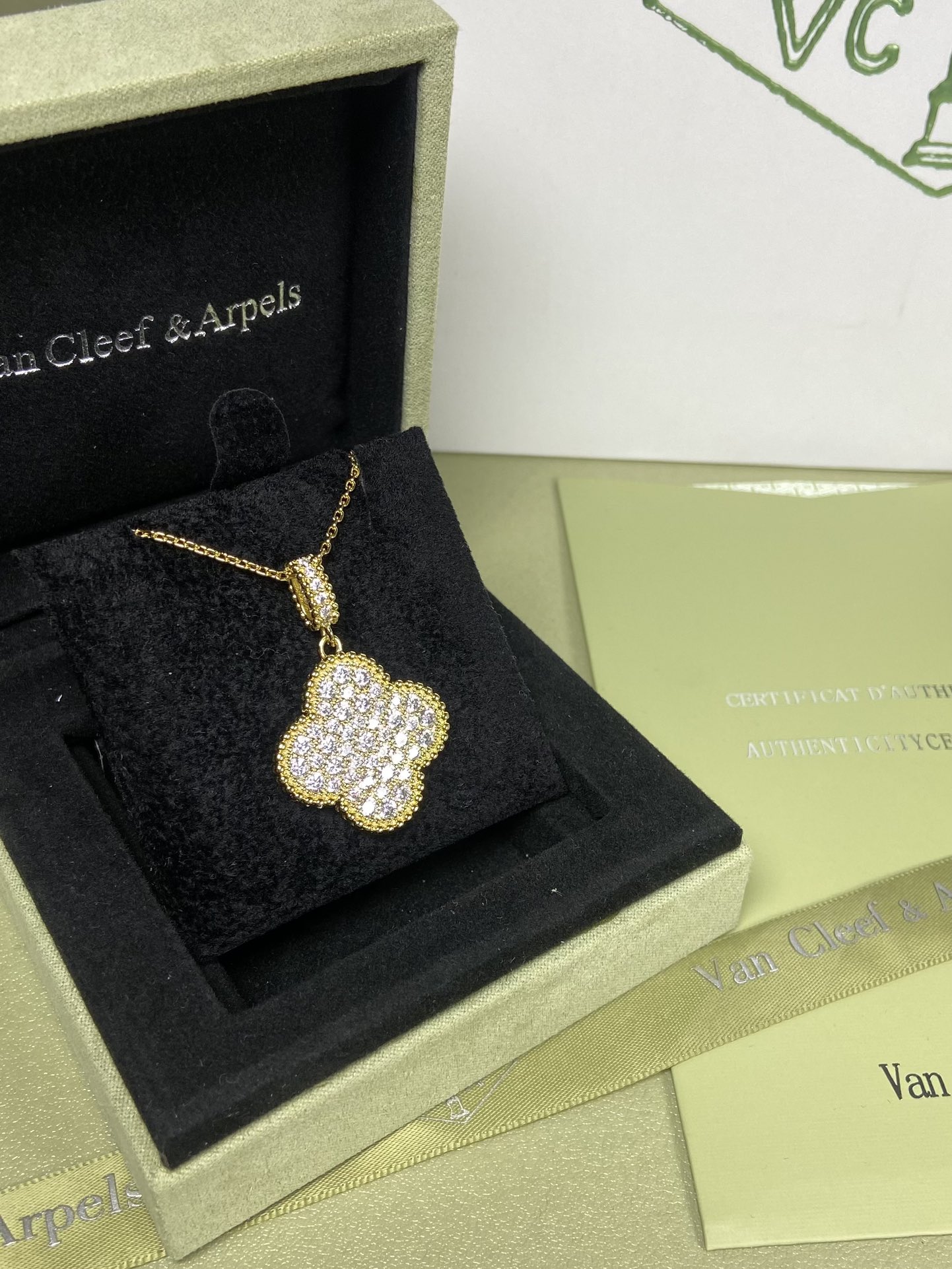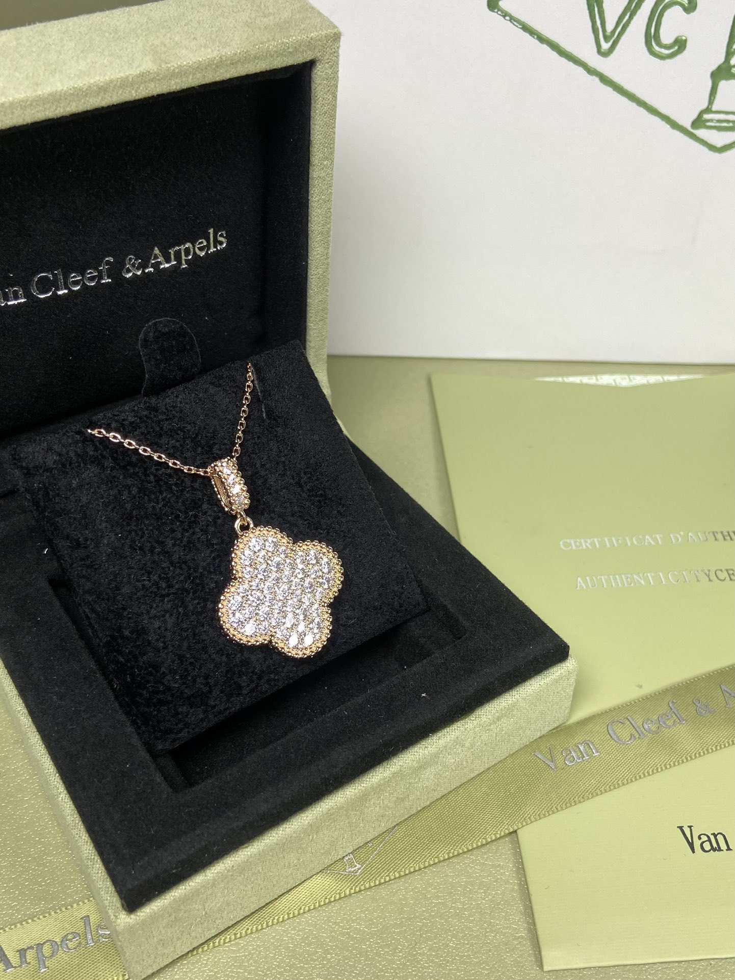 这款首饰是AAAAA 1:1 质量 (非常棒). 使用了和原版一模一样的材料. 商标部分也保持了和梵克雅宝/Van Cleef & Arpels一样. 图片拍摄是实物首饰拍摄, 您所收到的实物保证和我们图片一模一样.