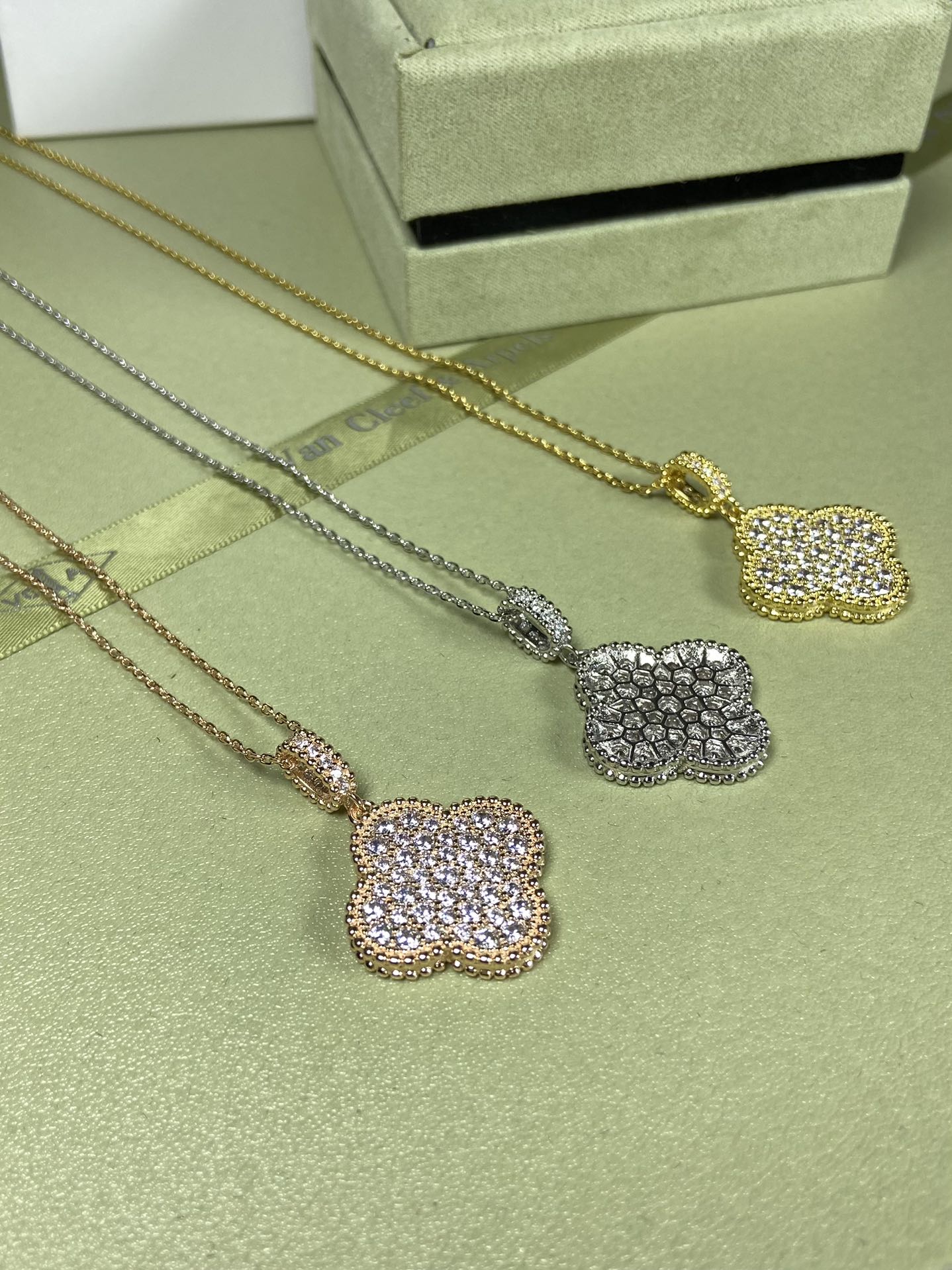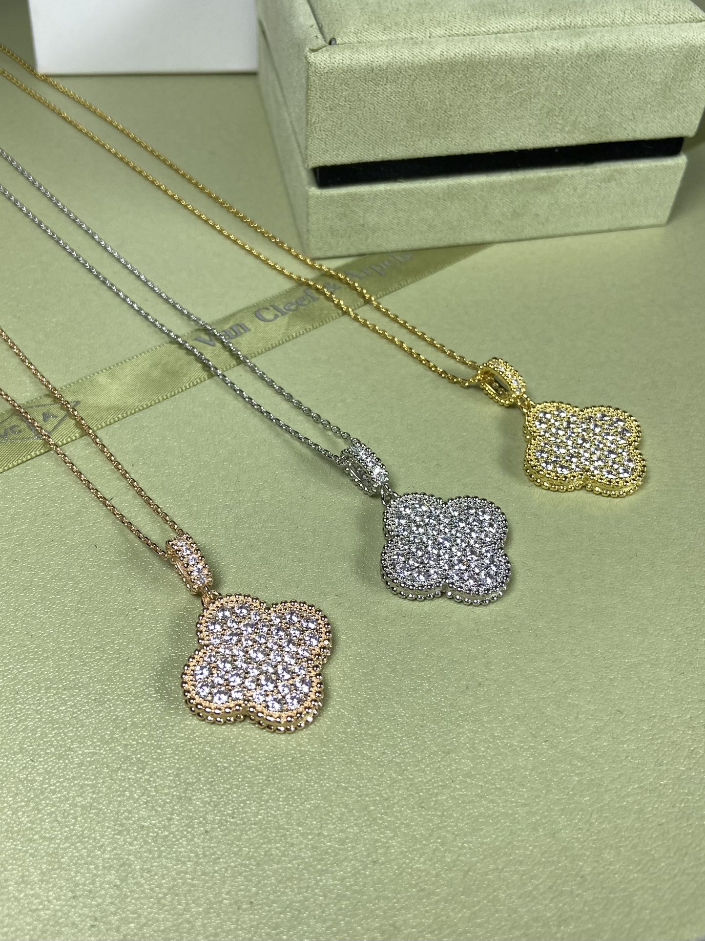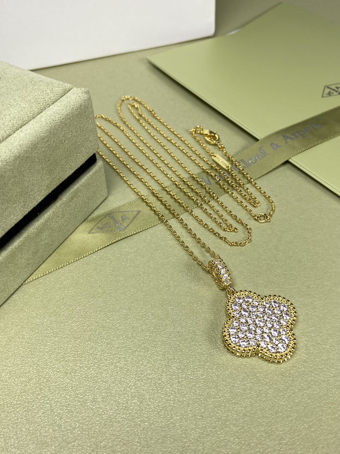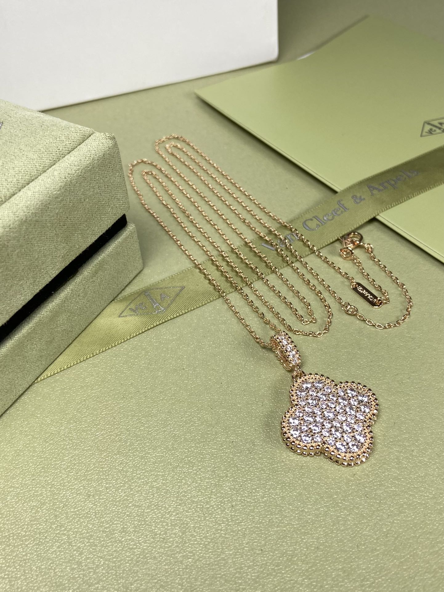 这款首饰是AAAAA 1:1 质量 (非常棒). 使用了和原版一模一样的材料. 商标部分也保持了和梵克雅宝/Van Cleef & Arpels一样. 图片拍摄是实物首饰拍摄, 您所收到的实物保证和我们图片一模一样.