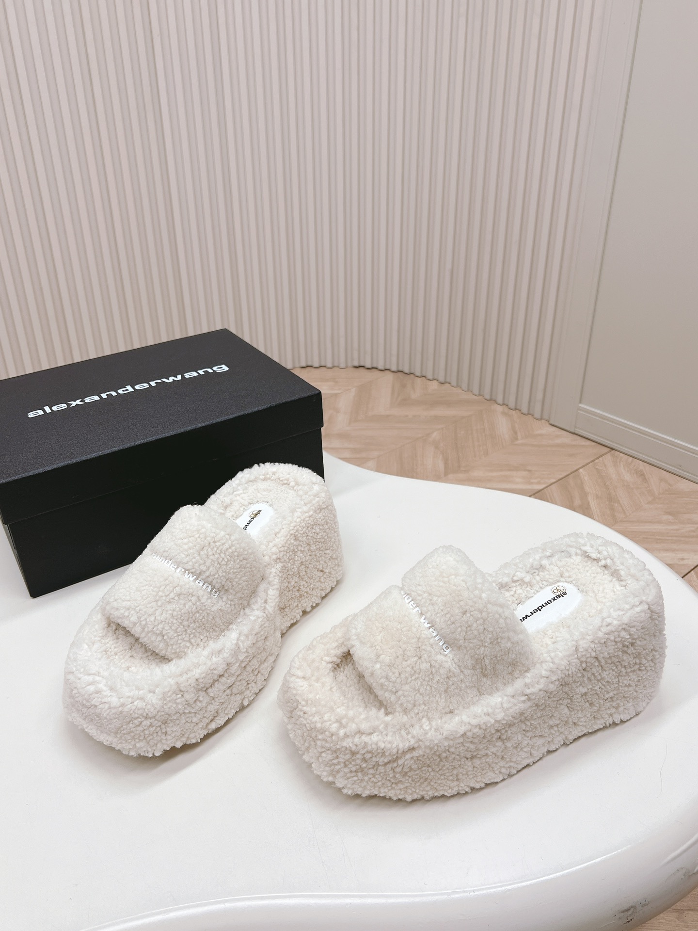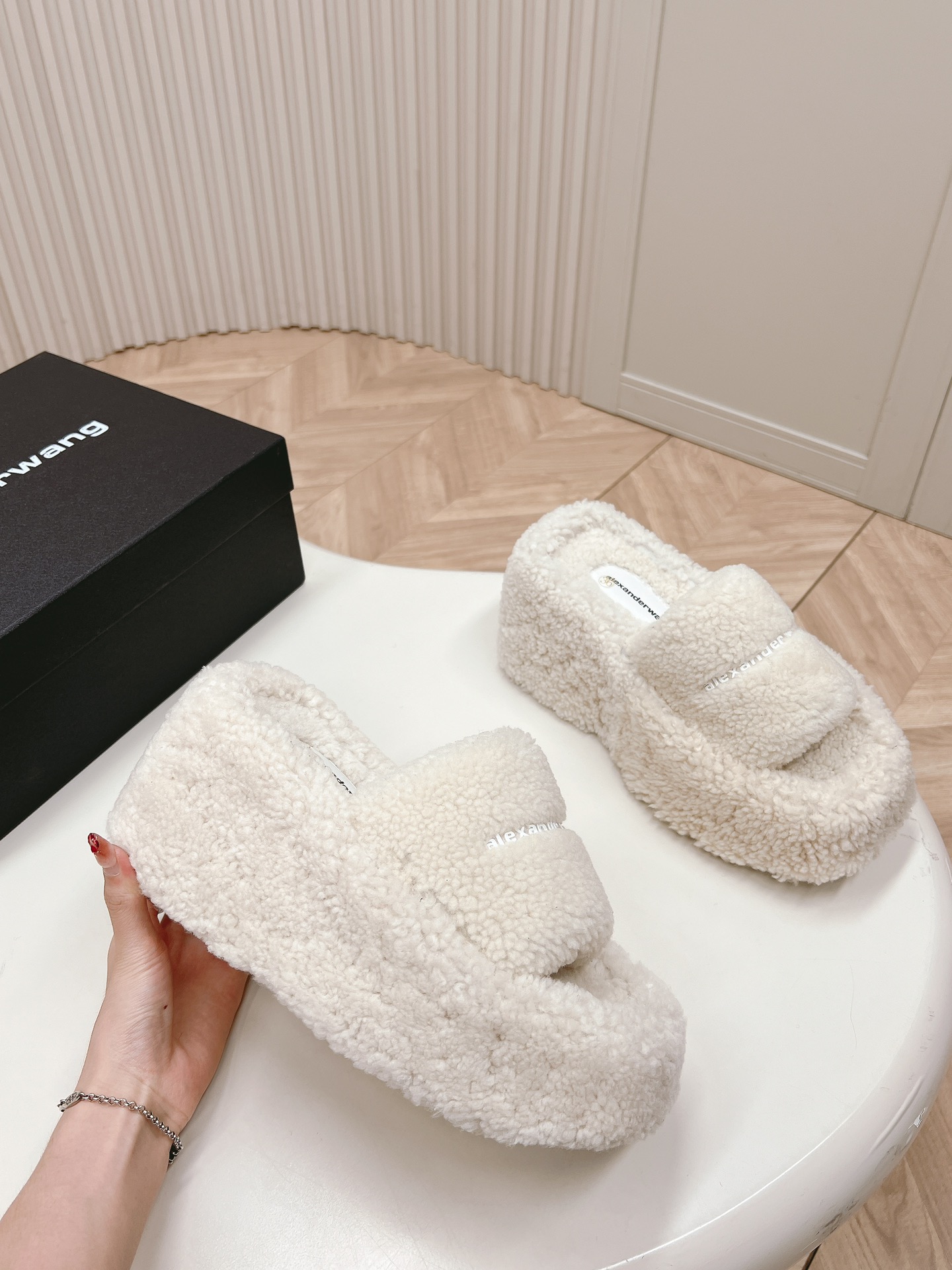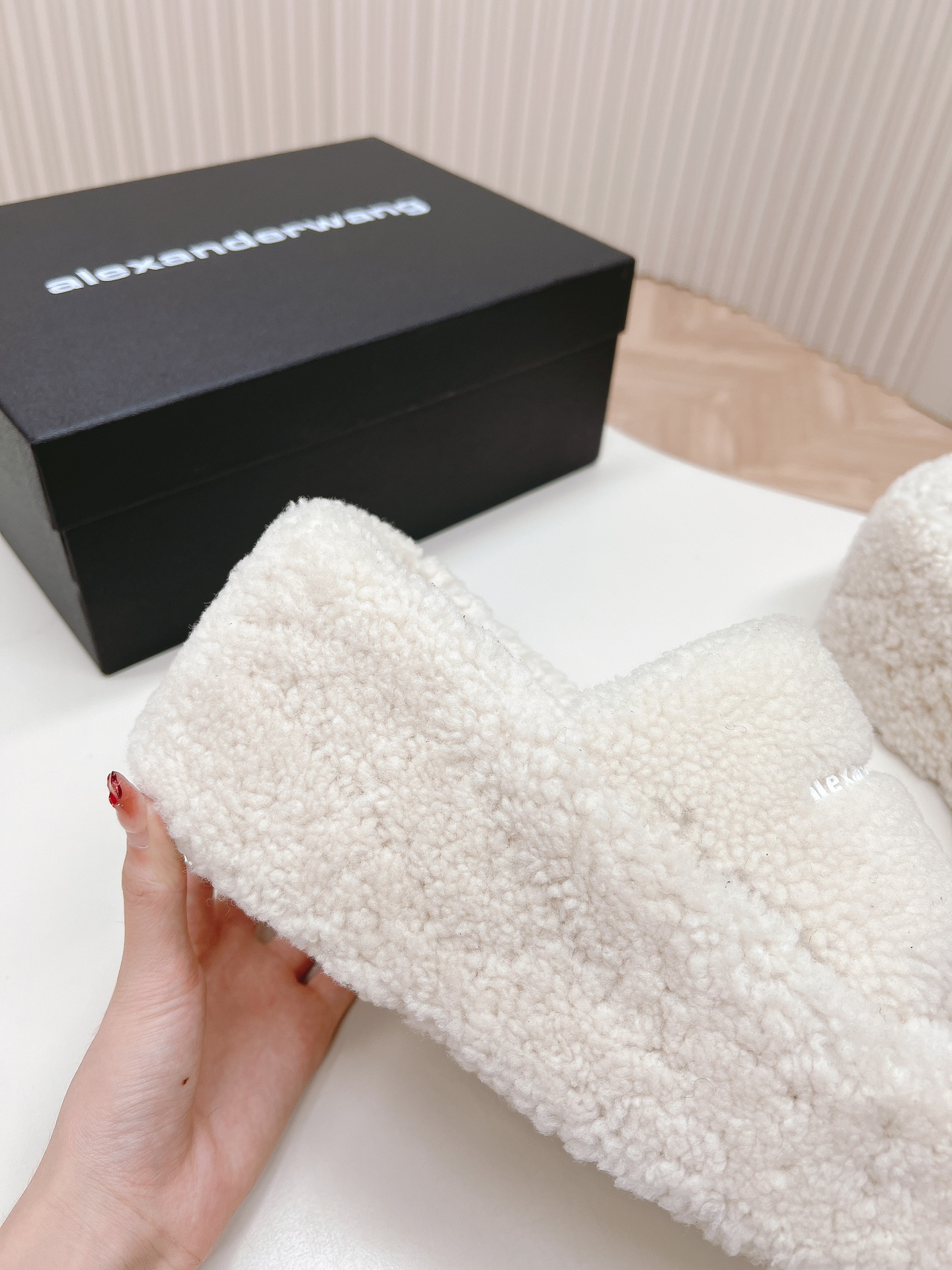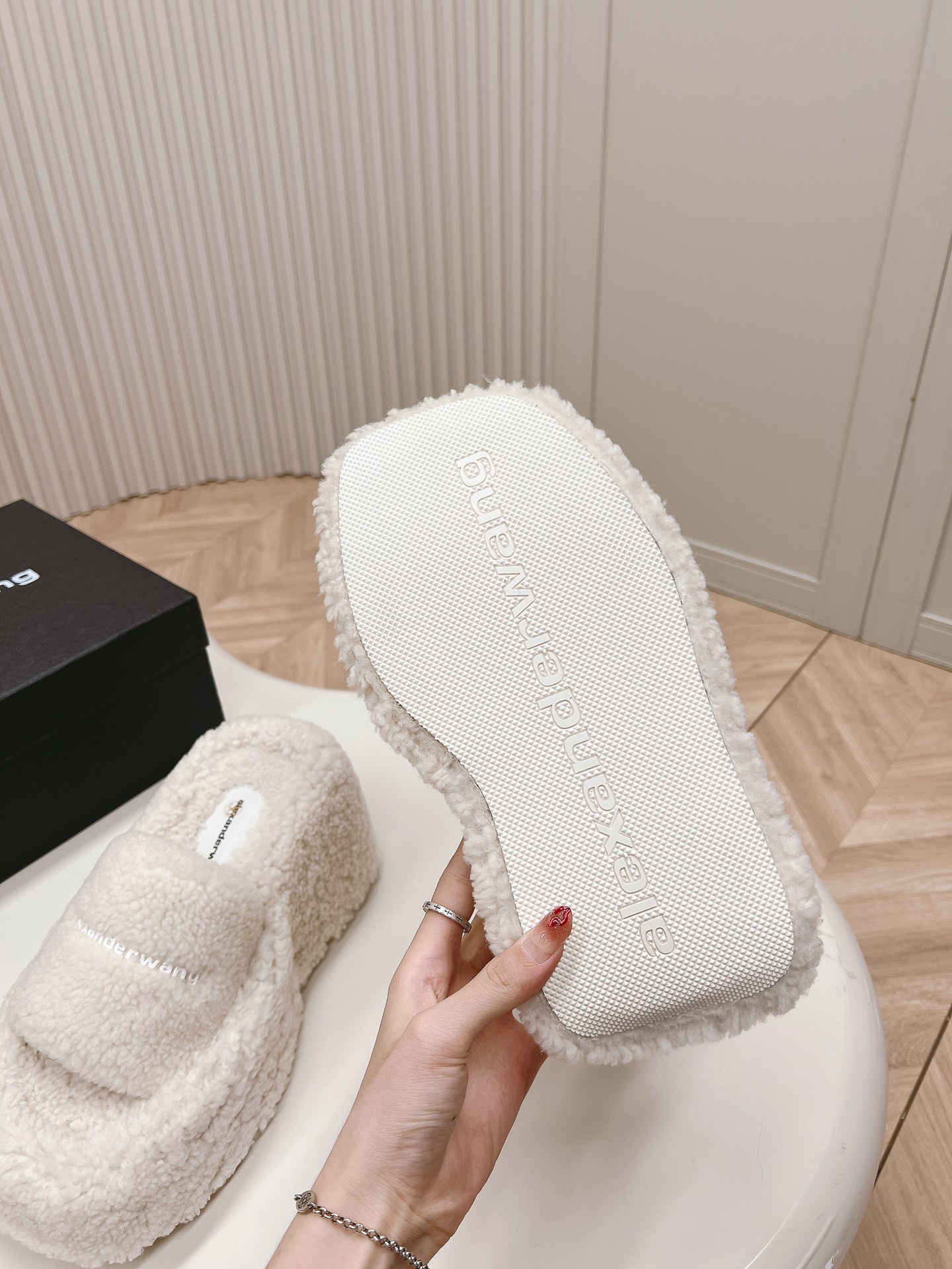 这款鞋子是AAAAA 1:1 质量 (非常棒). 使用了和原版一模一样的材料. 商标部分也保持了和亚历山大王/Alexander Wang一样. 图片拍摄是实物鞋子拍摄, 您所收到的实物保证和我们图片一模一样.