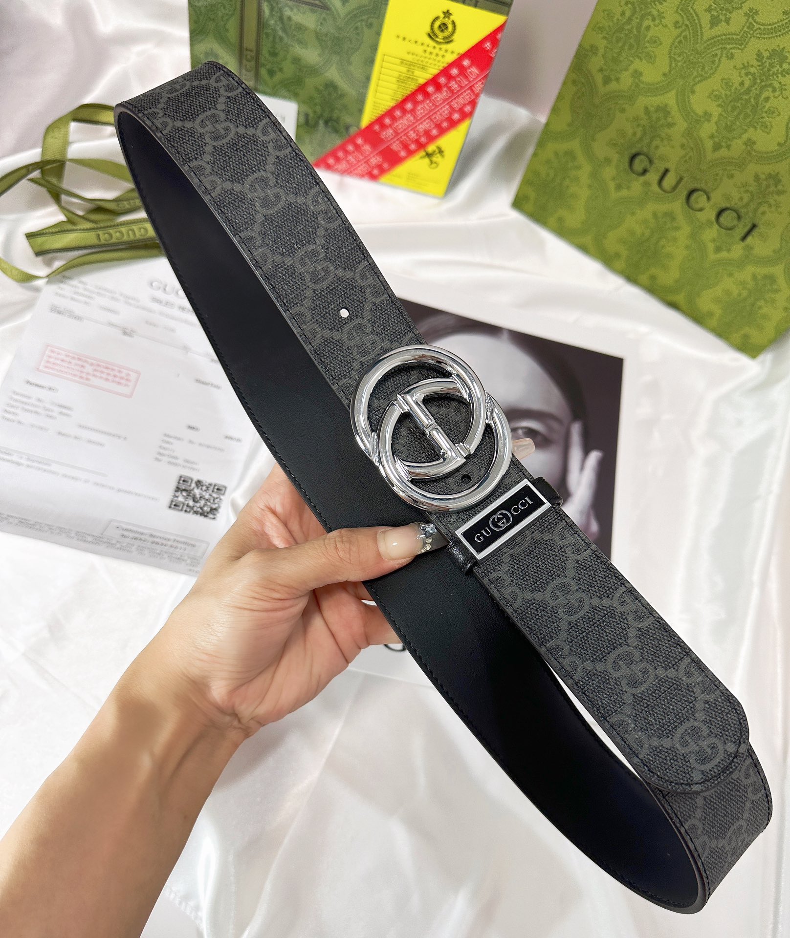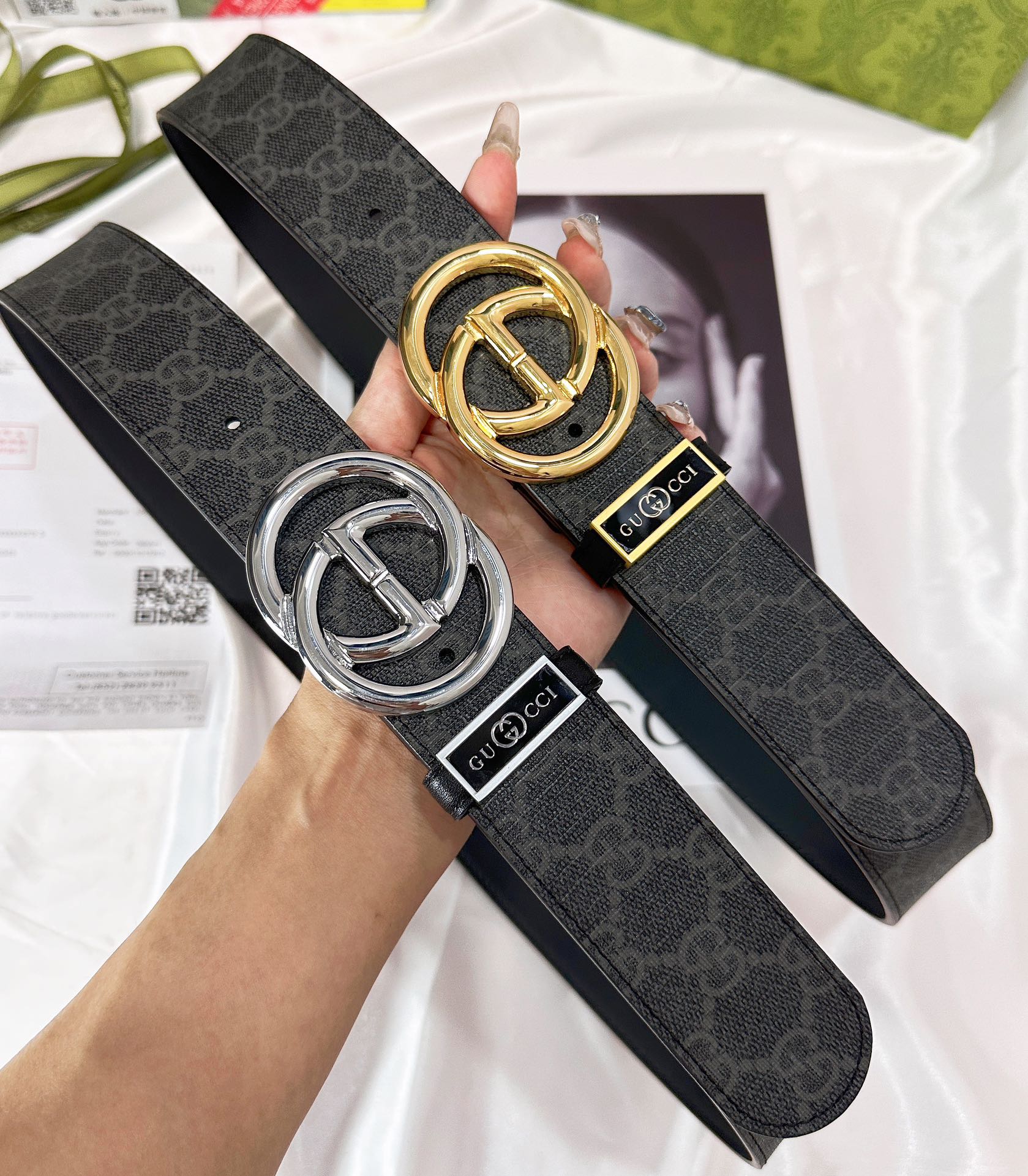 这款皮带是AAAAA 1:1 质量 (非常棒). 使用了和原版一模一样的材料. 商标部分也保持了和古奇/Gucci一样. 图片拍摄是实物皮带拍摄, 您所收到的实物保证和我们图片一模一样.