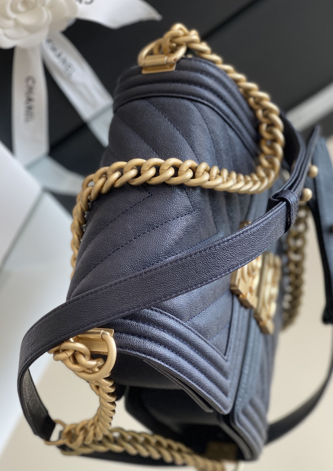 这款包包是AAAAA 1:1 质量 (非常棒). 使用了和原版一模一样的材料. 商标部分也保持了和香奈儿/Chanel一样. 图片拍摄是实物包包拍摄, 您所收到的实物保证和我们图片一模一样.