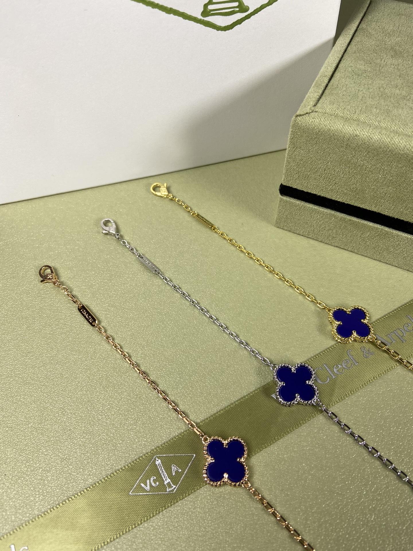 这款首饰是AAAAA 1:1 质量 (非常棒). 使用了和原版一模一样的材料. 商标部分也保持了和梵克雅宝/Van Cleef & Arpels一样. 图片拍摄是实物首饰拍摄, 您所收到的实物保证和我们图片一模一样.