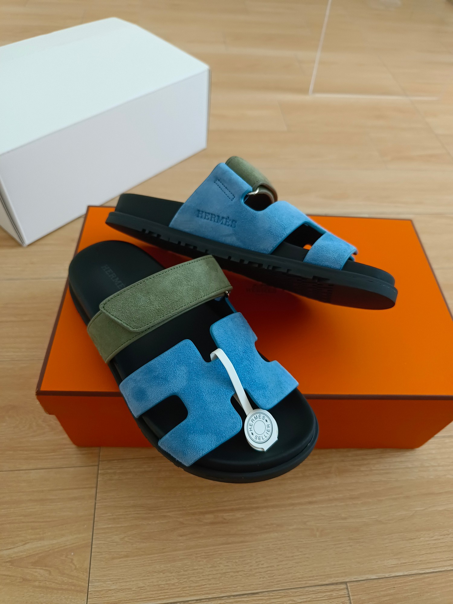 这款鞋子是AAAAA 1:1 质量 (非常棒). 使用了和原版一模一样的材料. 商标部分也保持了和爱马仕/Hermes一样. 图片拍摄是实物鞋子拍摄, 您所收到的实物保证和我们图片一模一样.