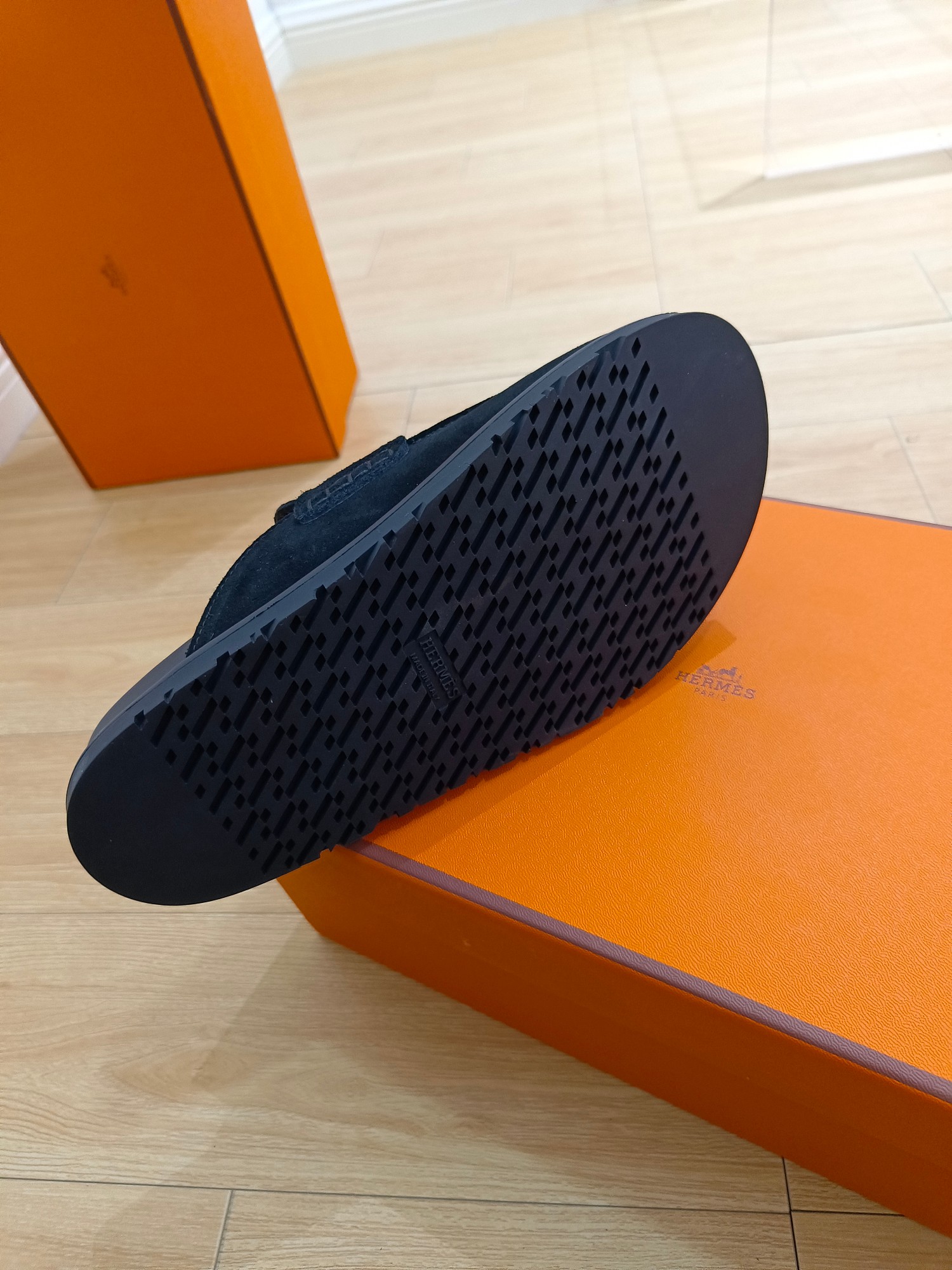 这款鞋子是AAAAA 1:1 质量 (非常棒). 使用了和原版一模一样的材料. 商标部分也保持了和爱马仕/Hermes一样. 图片拍摄是实物鞋子拍摄, 您所收到的实物保证和我们图片一模一样.