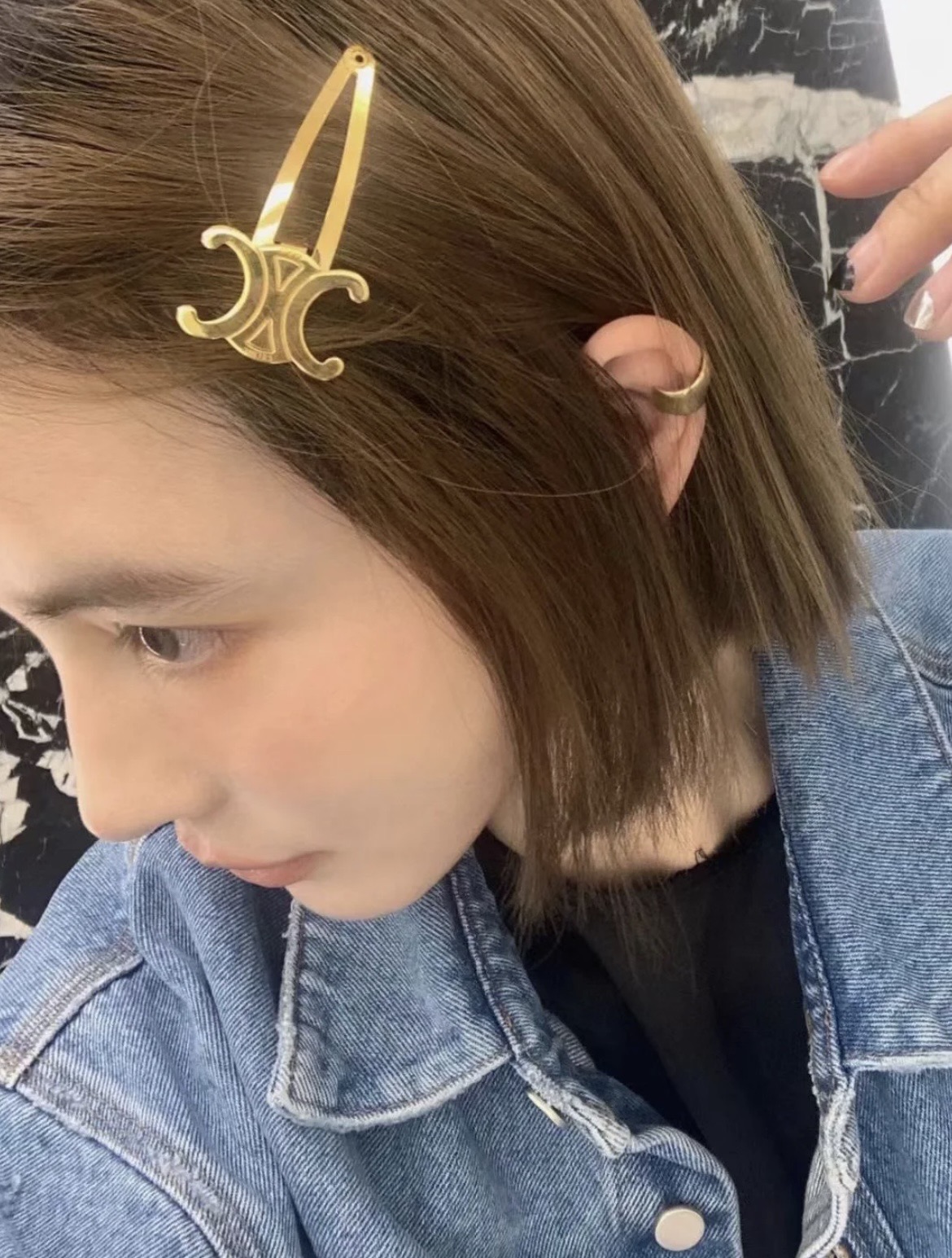 这款首饰是AAAAA 1:1 质量 (非常棒). 使用了和原版一模一样的材料. 商标部分也保持了和思琳/Celine一样. 图片拍摄是实物首饰拍摄, 您所收到的实物保证和我们图片一模一样.