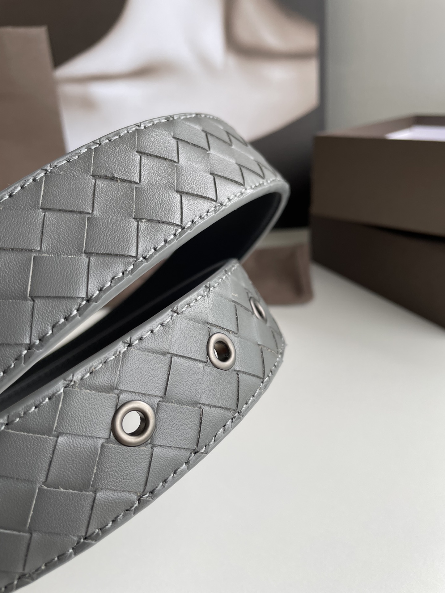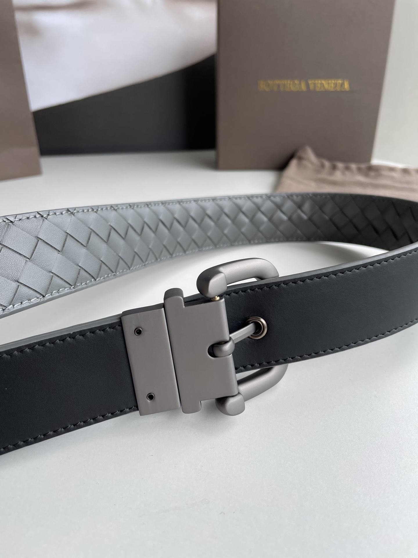 这款皮带是AAAAA 1:1 质量 (非常棒). 使用了和原版一模一样的材料. 商标部分也保持了和葆蝶家/Bottega Veneta一样. 图片拍摄是实物皮带拍摄, 您所收到的实物保证和我们图片一模一样.