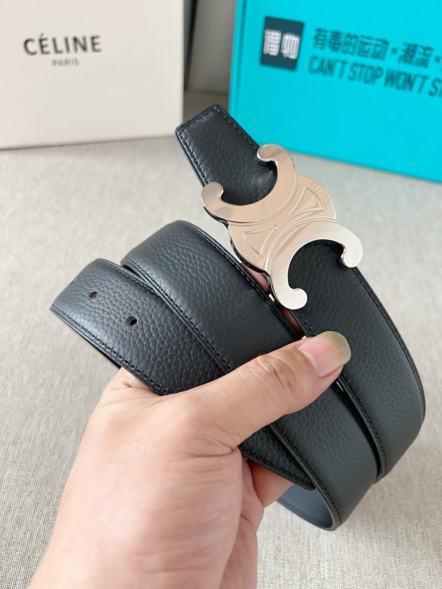 这款皮带是AAAAA 1:1 质量 (非常棒). 使用了和原版一模一样的材料. 商标部分也保持了和思琳/Celine一样. 图片拍摄是实物皮带拍摄, 您所收到的实物保证和我们图片一模一样.