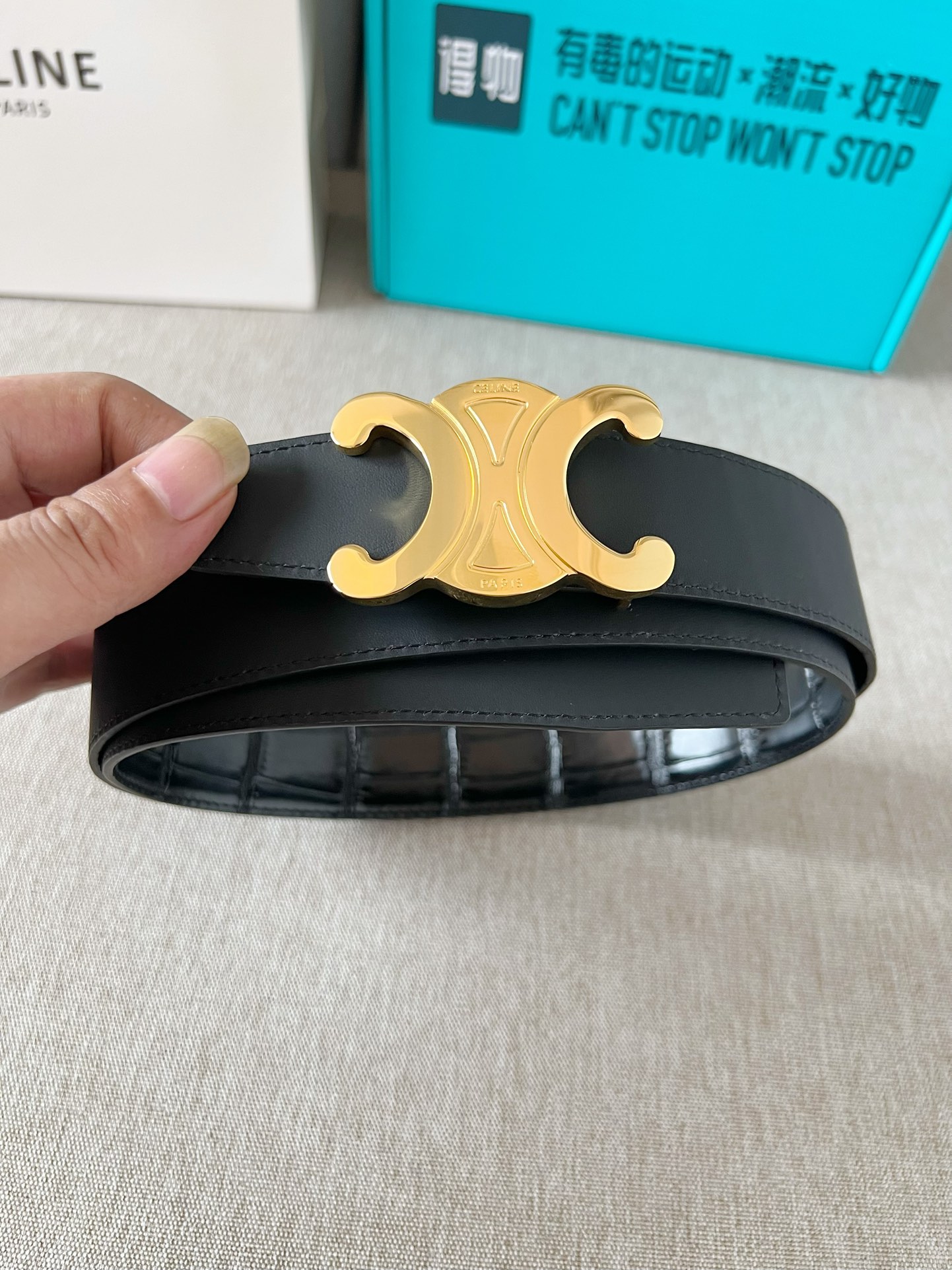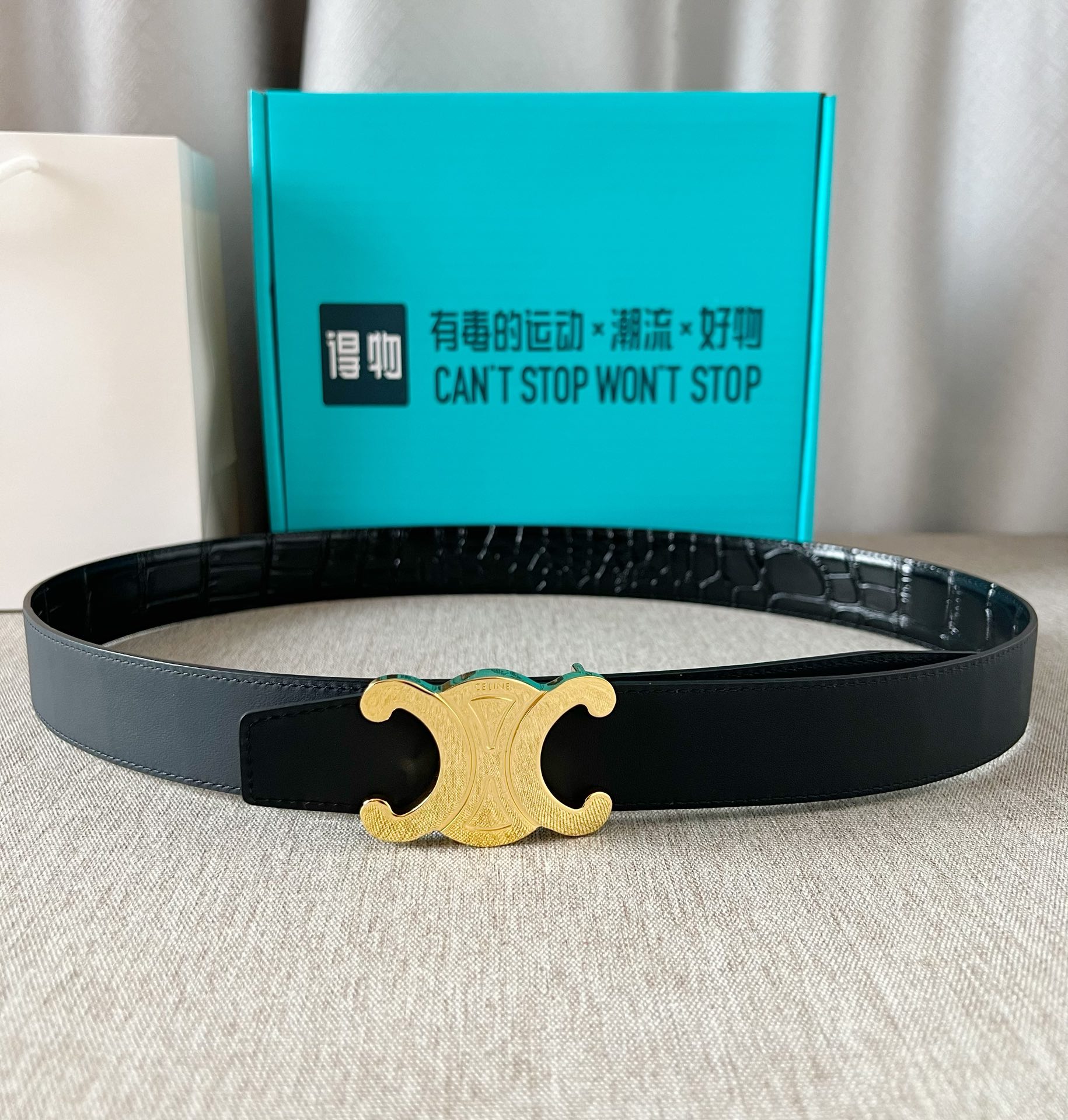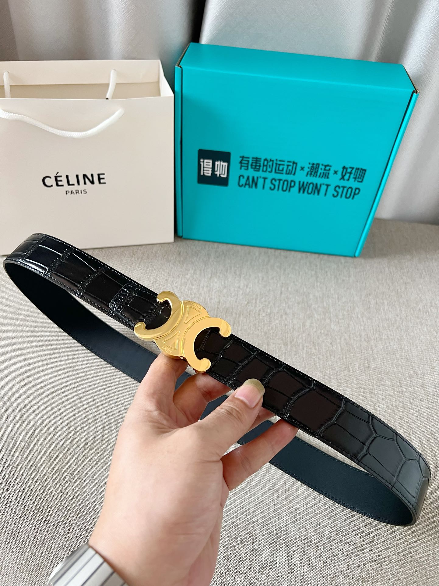 这款皮带是AAAAA 1:1 质量 (非常棒). 使用了和原版一模一样的材料. 商标部分也保持了和思琳/Celine一样. 图片拍摄是实物皮带拍摄, 您所收到的实物保证和我们图片一模一样.